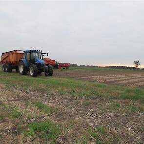 En transport met New Holland T7.185 met Vaia Kipper,transport met New Holland TS115 met Peecon Kipper,transport met Case David Brown met Schuitemaker kipper en transport van de Uien met Vrachtwagens
