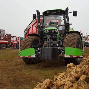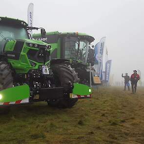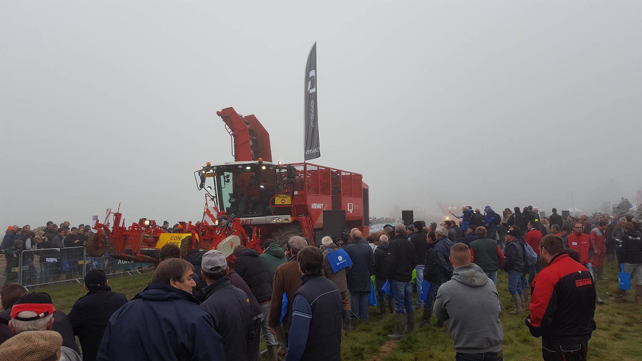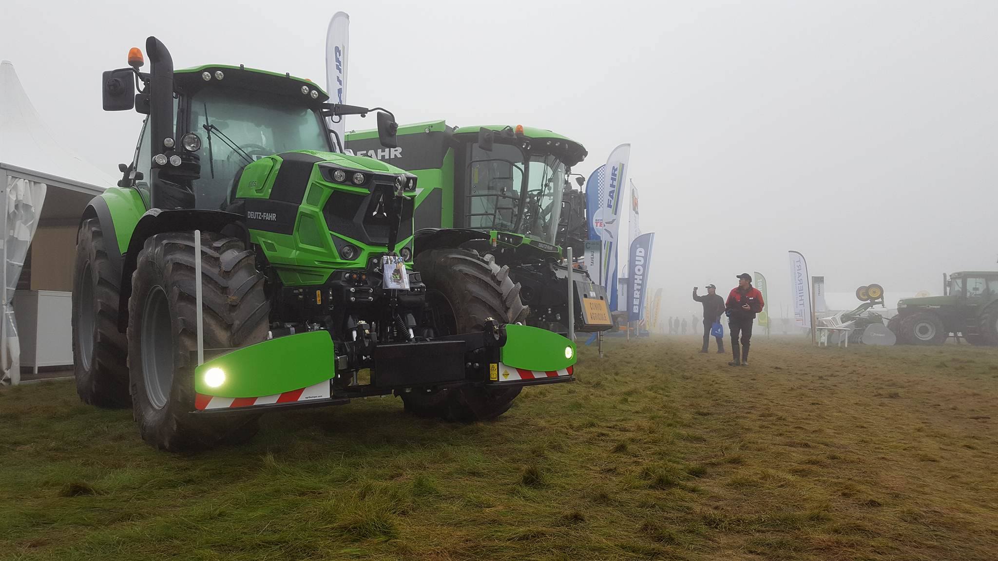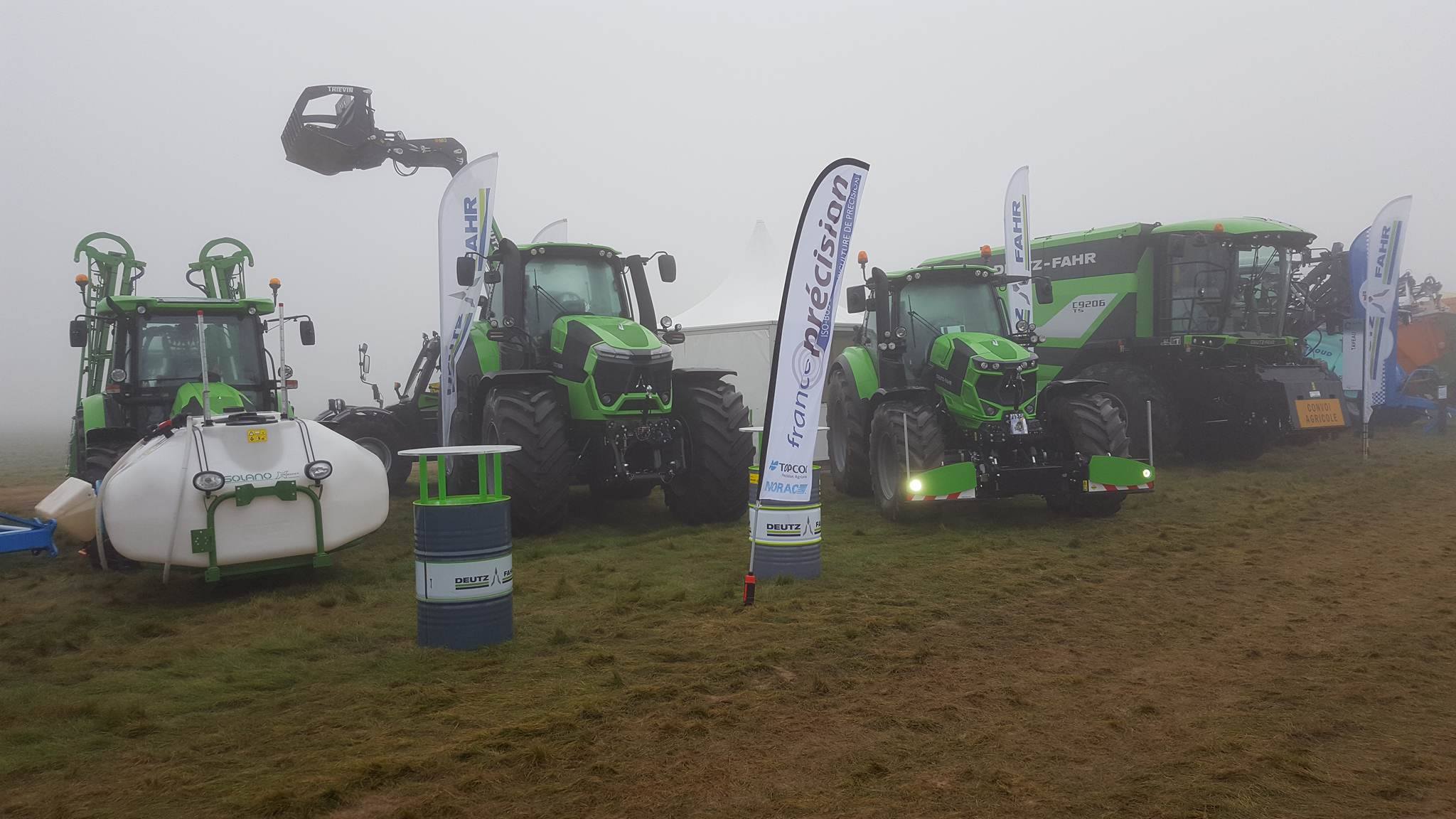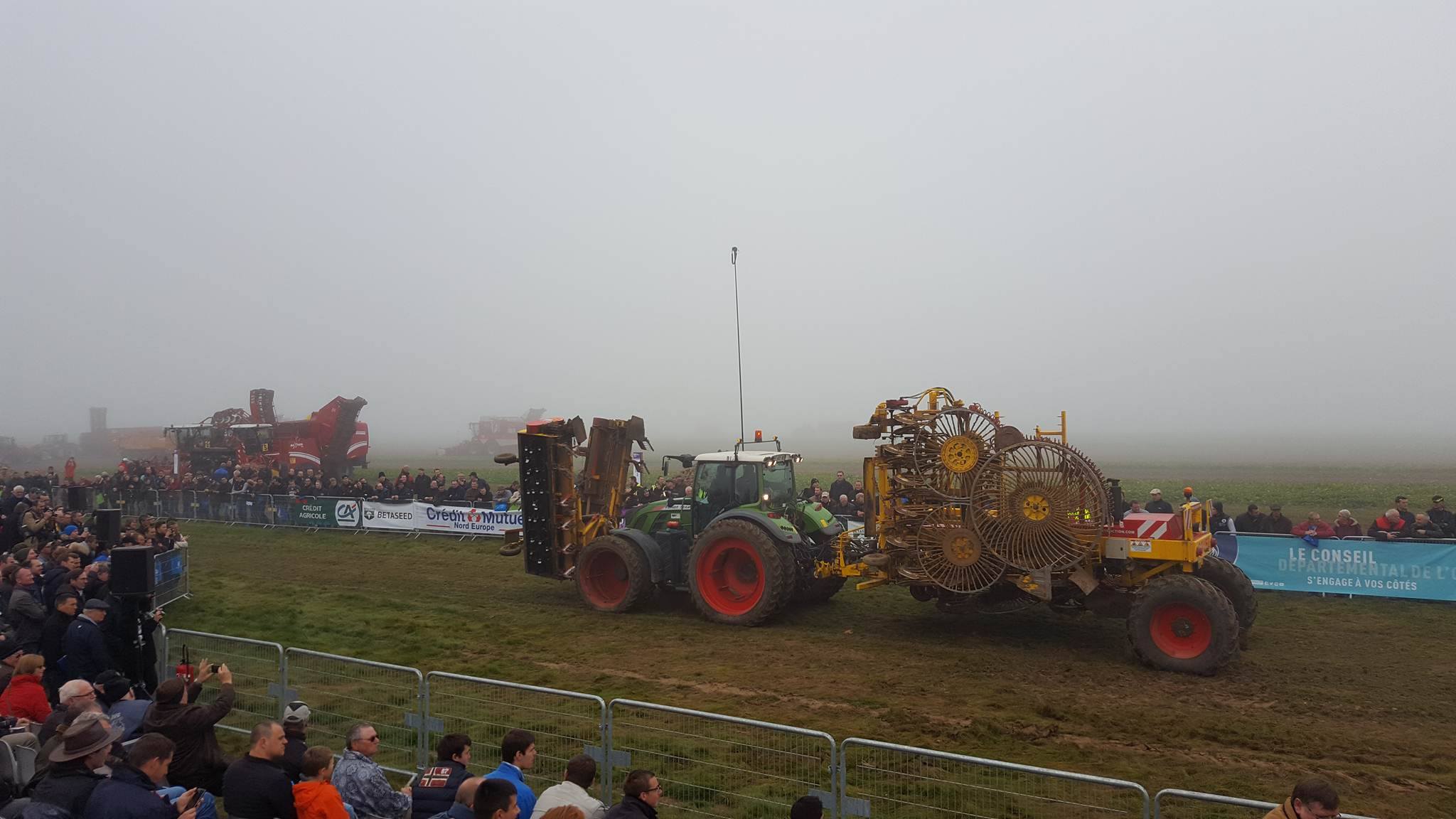 Vandaag van start gegaan met een mistig begin. Zelfs de grootste rooiers van Grimme, Verveat, Ropa en Holmer verdwenen op de volgestroomde akkers in nevelen....met ca 12000 bezoekers de belangrijkste franse beurs houden de loonwerkers en akkerbouwers een korte pauze om de machines te kunnen vergelijken....Het is een echte demonstratiebeurs waarbij honderden hectares suikerbieten worden geoogst...Nieuw voor de fransen is de Agribumper. Ets Taveau is de eerste franse Deutz Fahr dealer die al een aantal veilige frontgewichten, waar men de fronthef en aftakas nog kan gebruiken, heeft verkocht. Op de stand van Taveau staat de net geintroduceerde Deutz Fahr 6serie, een 6155ttv met Agribumper Weight-line 900 extra.