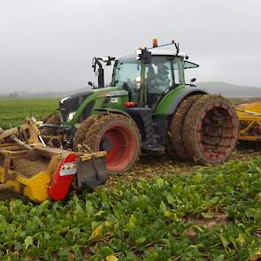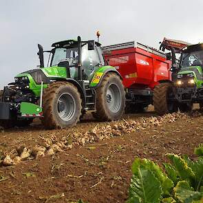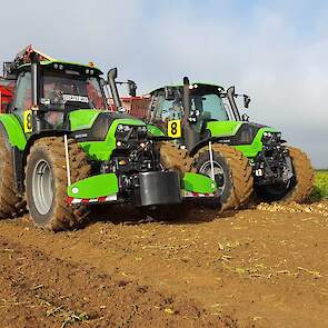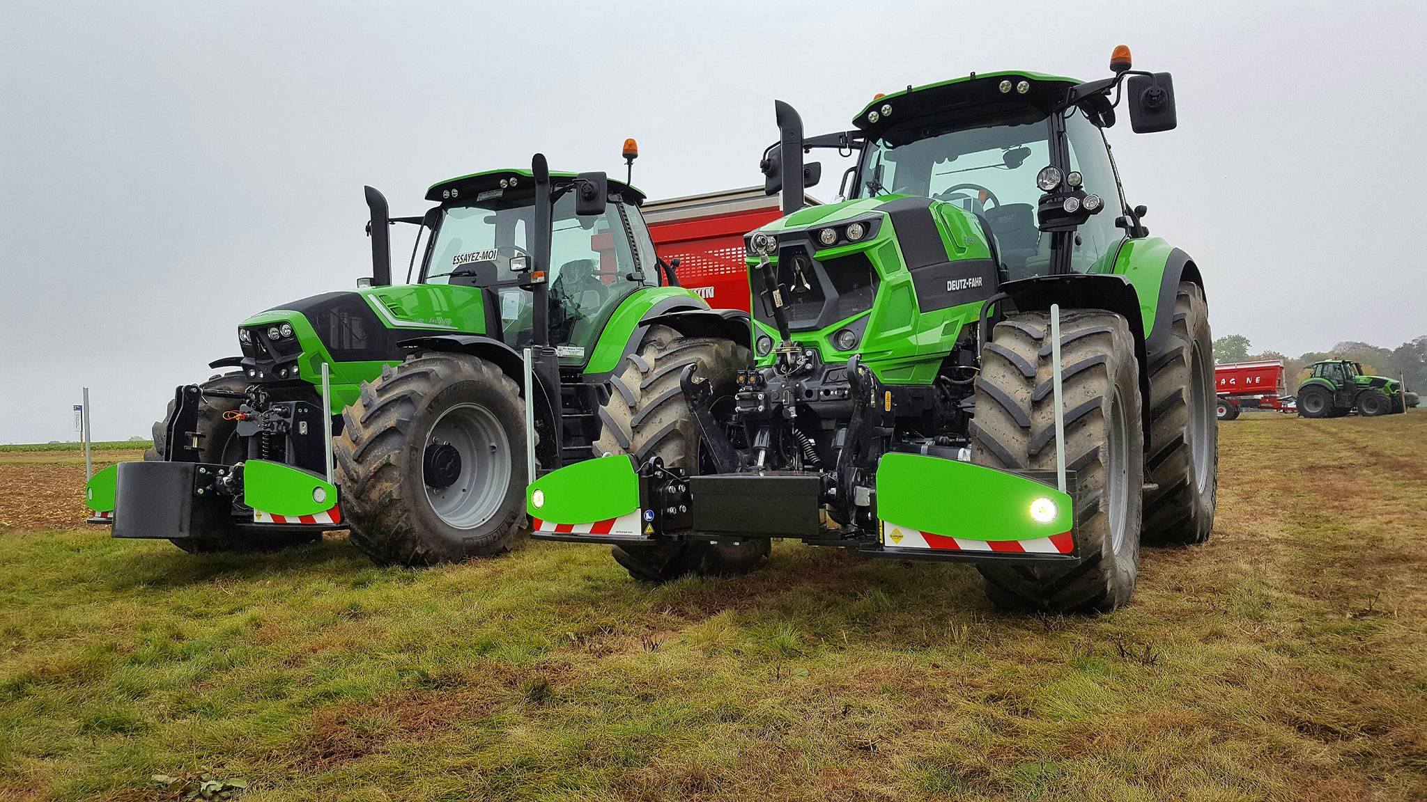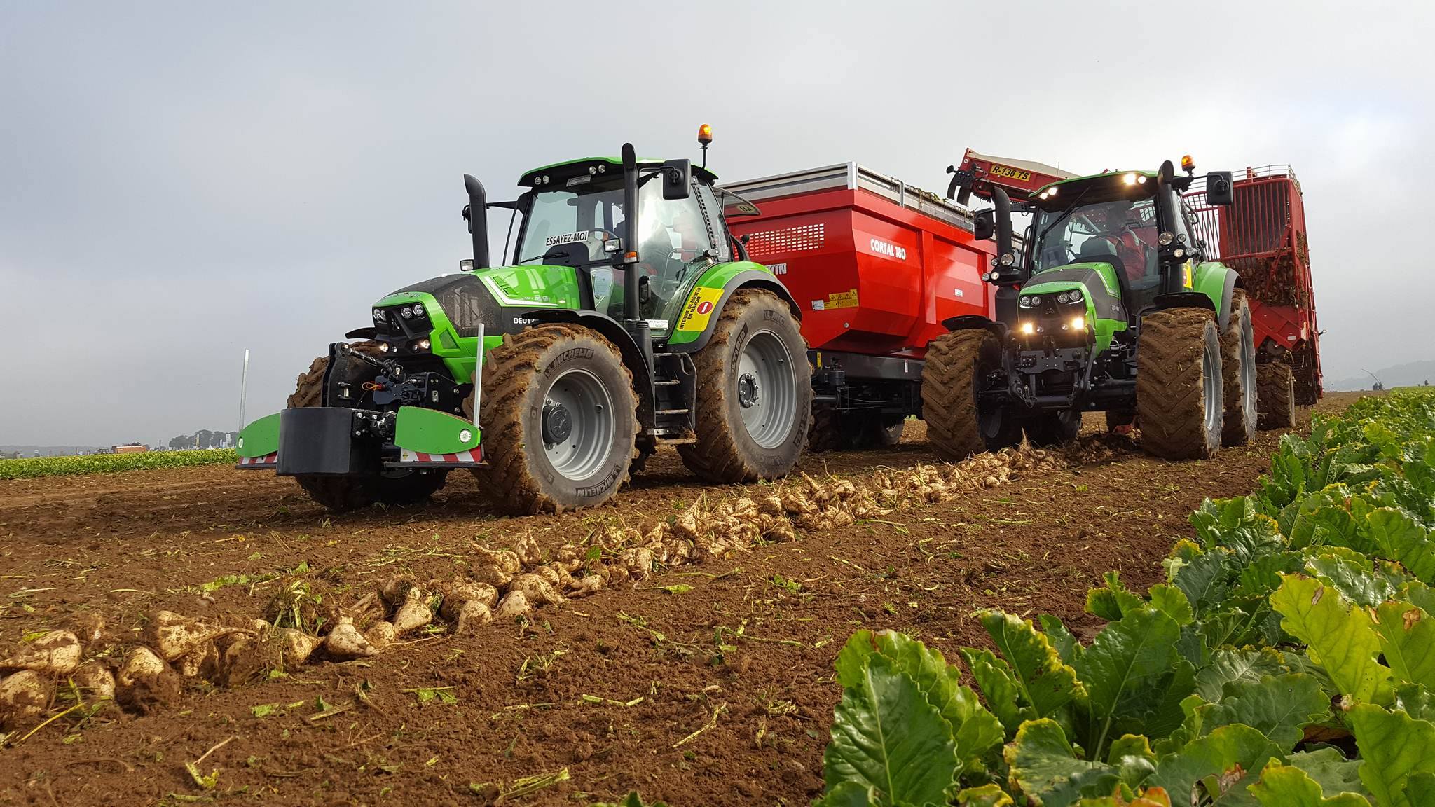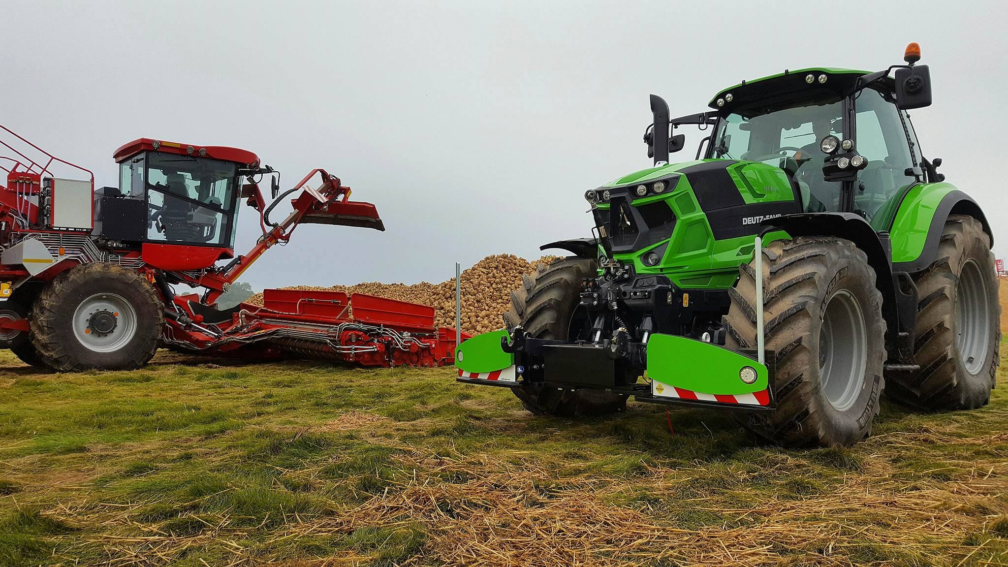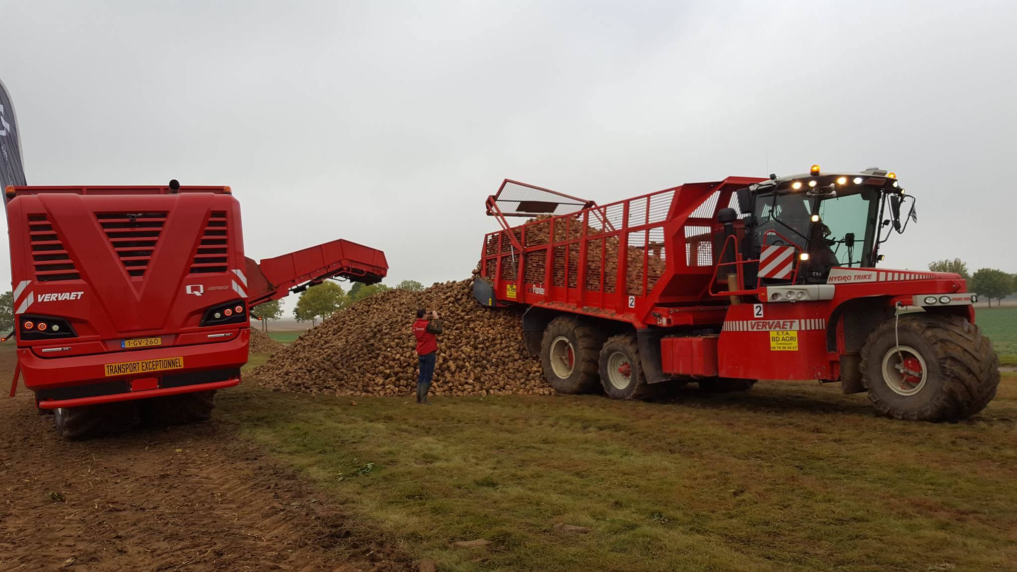 Vandaag van start gegaan met een mistig begin. Zelfs de grootste rooiers van Grimme, Verveat, Ropa en Holmer verdwenen op de volgestroomde akkers in nevelen....met ca 12000 bezoekers de belangrijkste franse beurs houden de loonwerkers en akkerbouwers een korte pauze om de machines te kunnen vergelijken....Het is een echte demonstratiebeurs waarbij honderden hectares suikerbieten worden geoogst...Nieuw voor de fransen is de Agribumper. Ets Taveau is de eerste franse Deutz Fahr dealer die al een aantal veilige frontgewichten, waar men de fronthef en aftakas nog kan gebruiken, heeft verkocht. Op de stand van Taveau staat de net geintroduceerde Deutz Fahr 6serie, een 6155ttv met Agribumper Weight-line 900 extra.