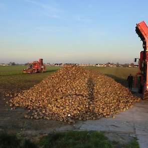 Suikerbieten rooien met Holmer Terra T3 en met een Holmer overlaadwagen een Same Antares 130 met een Miedema kieper zorgt ook voor het transport