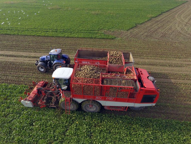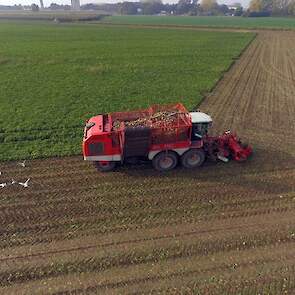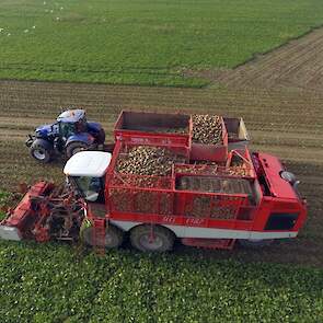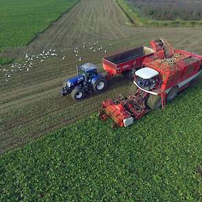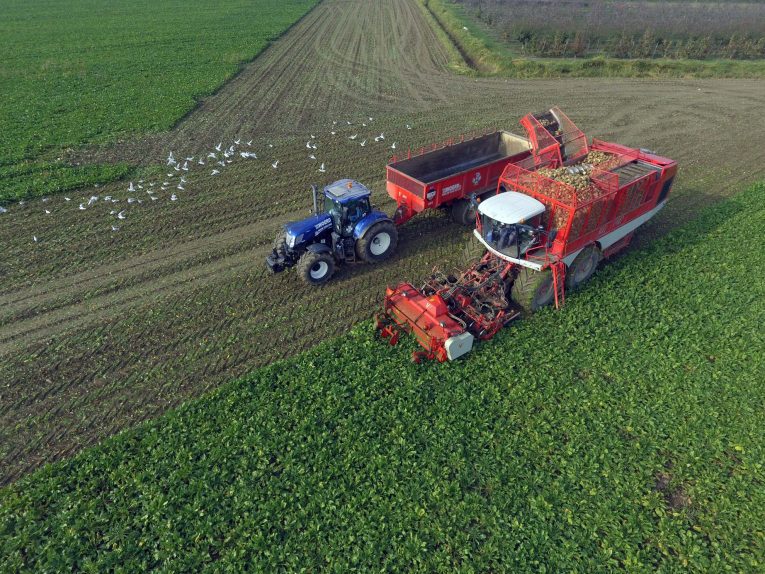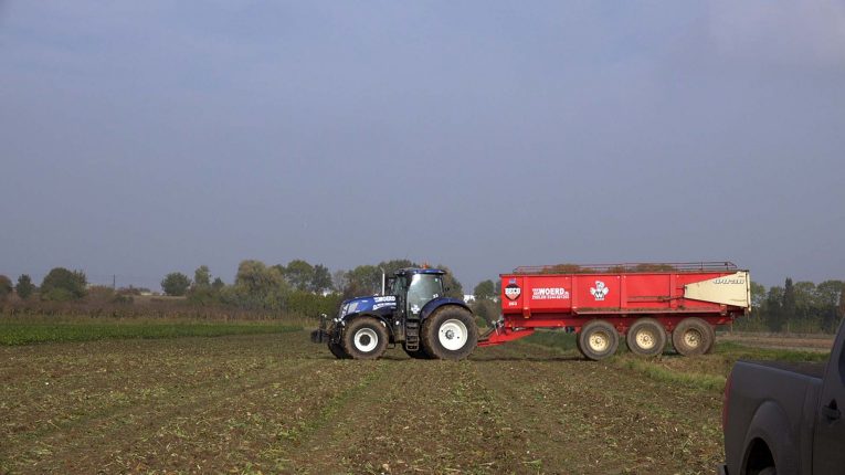 Loonbedrijf van der Woerd aan het bieten rooien met een Vervaet Beet Eater 625. Een New Holland T7.220 met Beco-tridemkipper zorgt voor het transport van de suikerbieten.