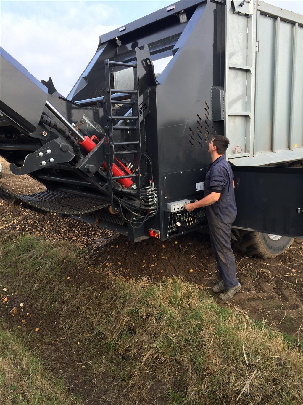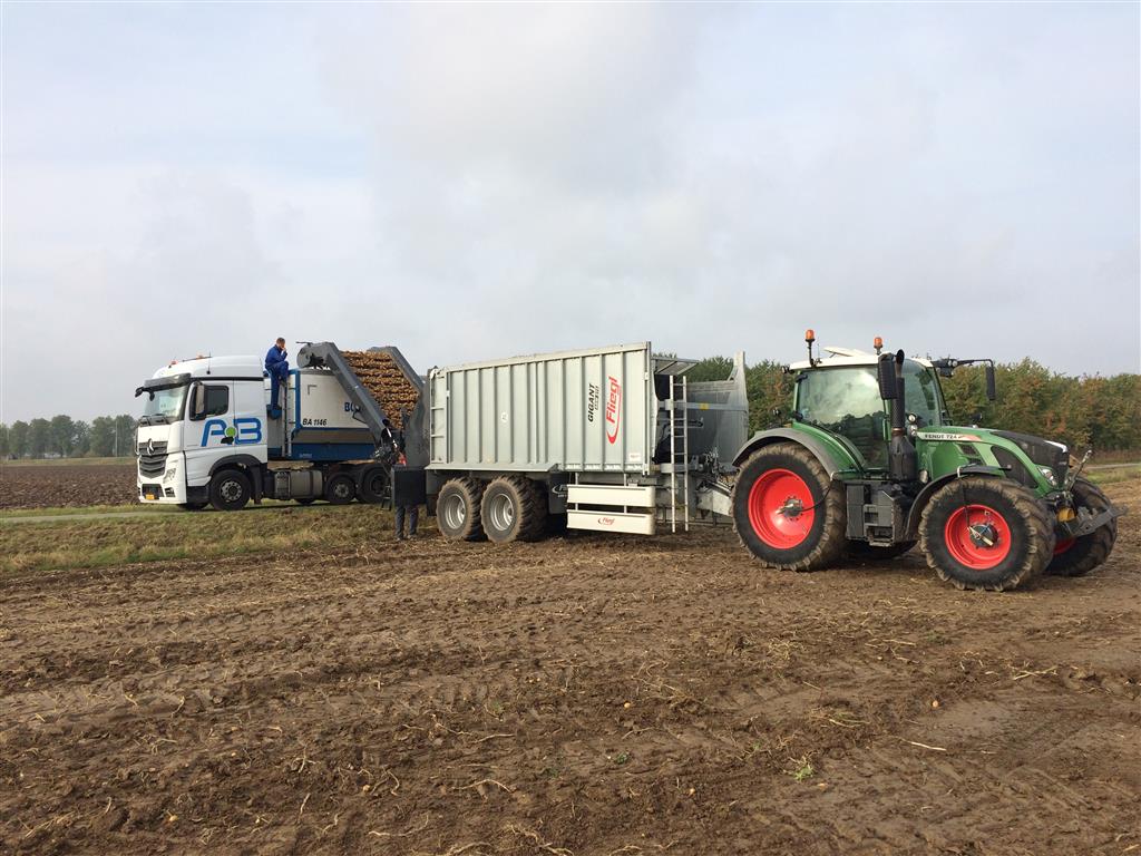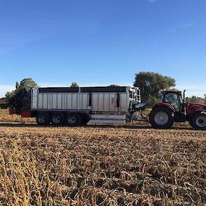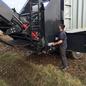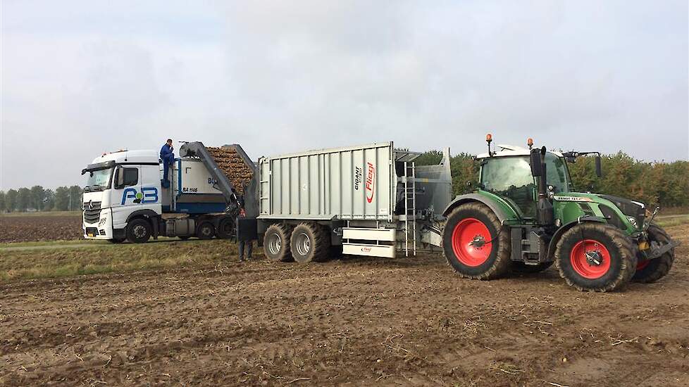 Meer rendement met de aardappelrooier doordat deze niet telkens naar de vrachtwagen hoeft te rijden.