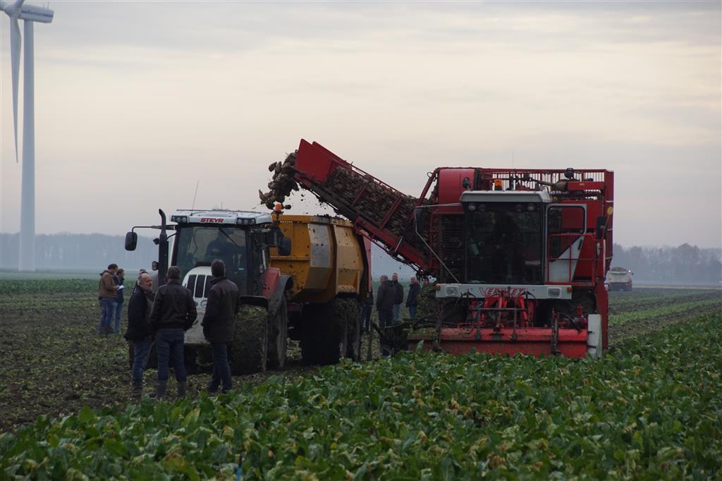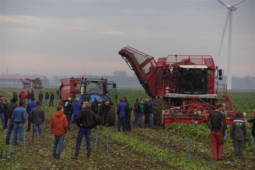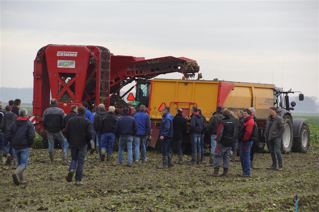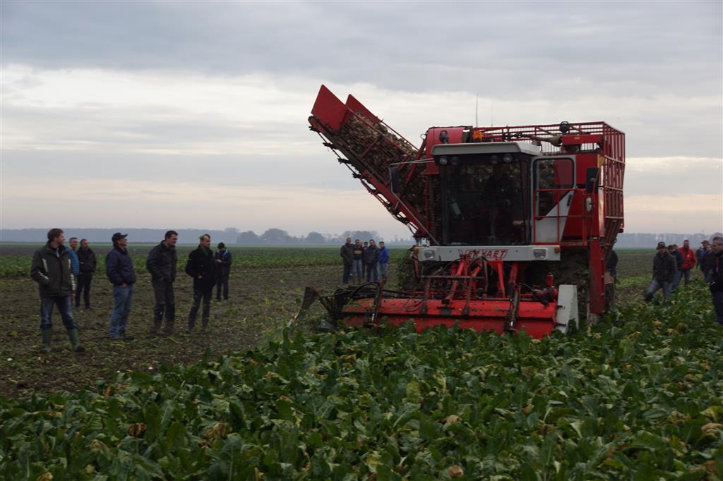 Deze bijeenkomst stond in het teken van het effect op de bodem van een nieuw type bietenrooier en twee gangbare machines. Samen met mechanisatiebedrijf Weevers en Aeres Hogeschool Dronten was er een rooidemonstratie met een nieuw type 6 rijïge getrokken bietenrooier (Grimme).en een zesrijer Vervaet en een Negen rijer Vervaet rooimachine