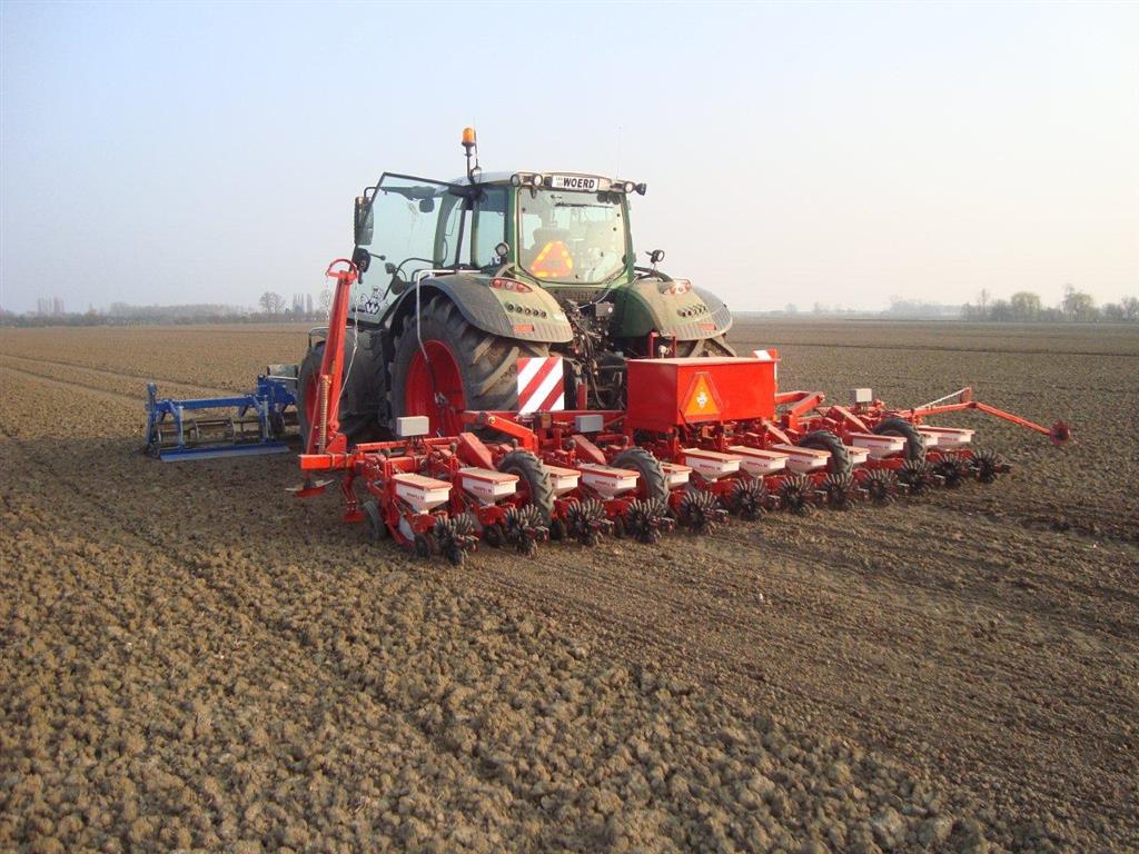 Kverneland Monopill SE en Fendt 724 loonbedrijf van der Woerd bietenzaaien