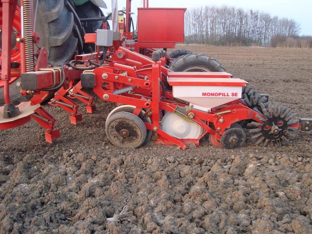 De zaaimachine is een mulch uitvoering. Het Farmflex frontwiel is vervangen door een dubbele snijschijf, met drukwielen aan elke zijde.De Monopill SE kan ook worden gebruikt voor het zaaien van koolzaad.De aandrijving is per zaairij met een elektromotor direct op de zaaischijf.Per zaairij is het mogelijk om uit te schakelen, over- en onderdoseren en randrijeffect.Traploze verstelling per zaairij van de zaaiafstand van 12.5 - 25cm.De machine is uitgevoerd met GEOcontrol GPS sectieafsluiting.Per element is het mogelijk om de druk in de grond te verhogen door middel van veerdruk en daarnaast is het ook mogelijk om met extra druk het frame naar beneden te drukken.