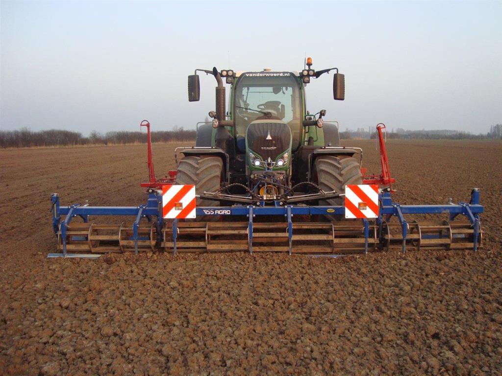 De Frontegalisator is geschikt om in het voorjaar als eerste egaliserende bewerking de ploegsneden af te vlakken of als voorbewerking voor de machine achterop de tractor.Hierdoor ontstaat een gegaliseerd oppervlak waarover de tractor rijd.