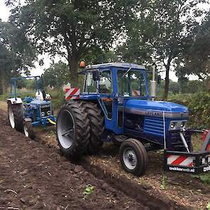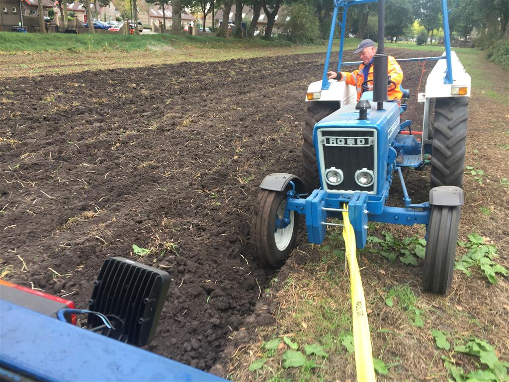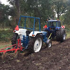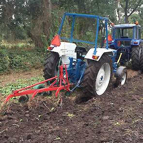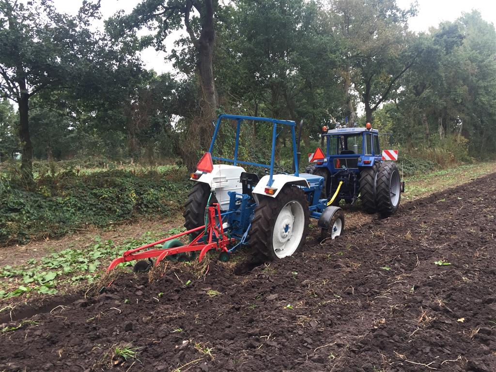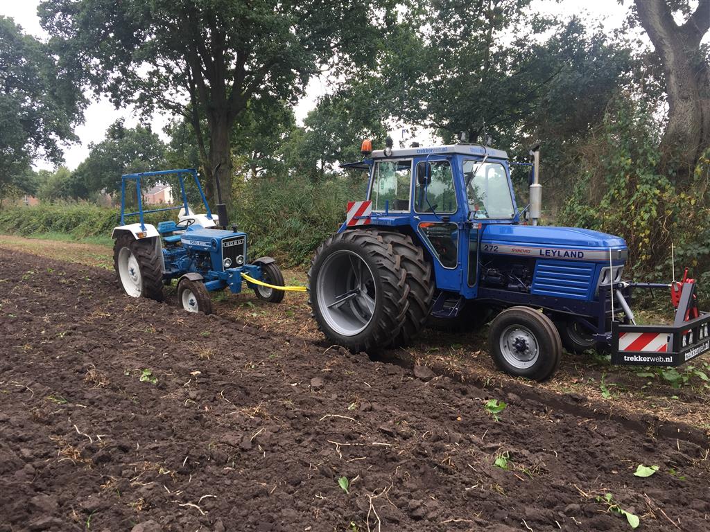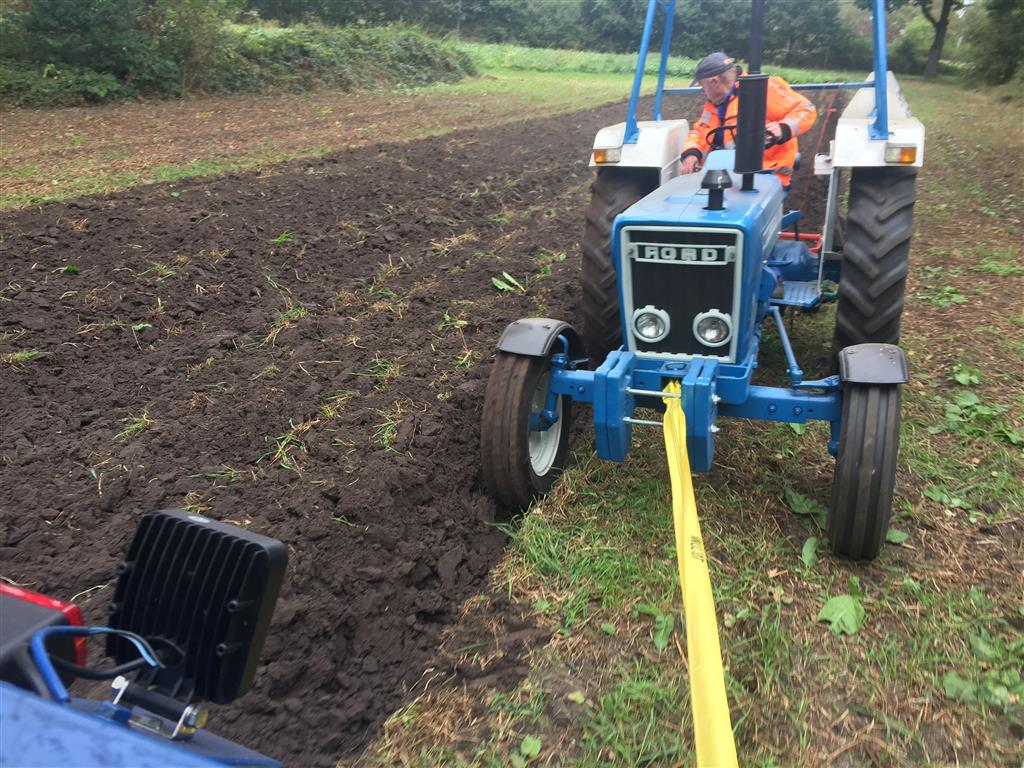 Door de grote hoeveelheid organische stof moest de Leyland van Doornbos Agrarisch loonwerk de Ford 4600 even een handje helpen om het perceel goed om te krijgen.