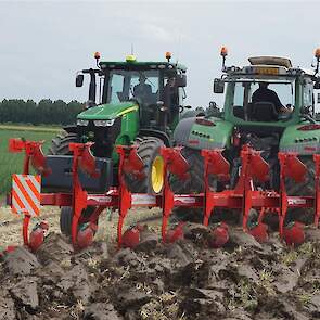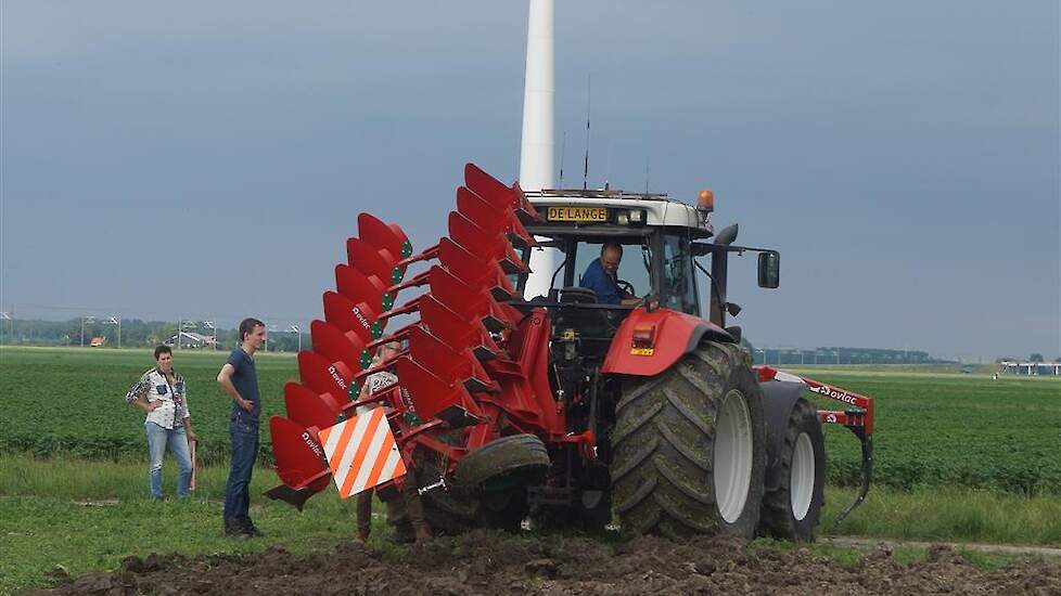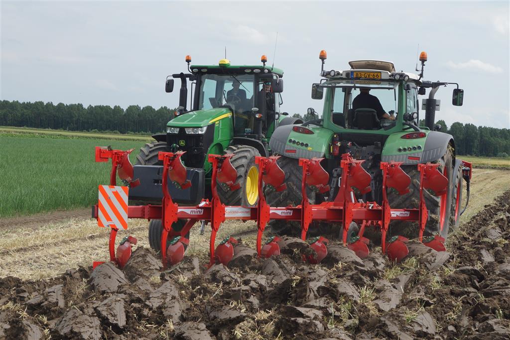 Bollen planten met de 8-schaar Ovlac Onland ploeg op 17 cm diepte in combinatie met de frontfrees. Dit is in samenwerking met de Lange, No Limit, Pater en Koeckhoven.