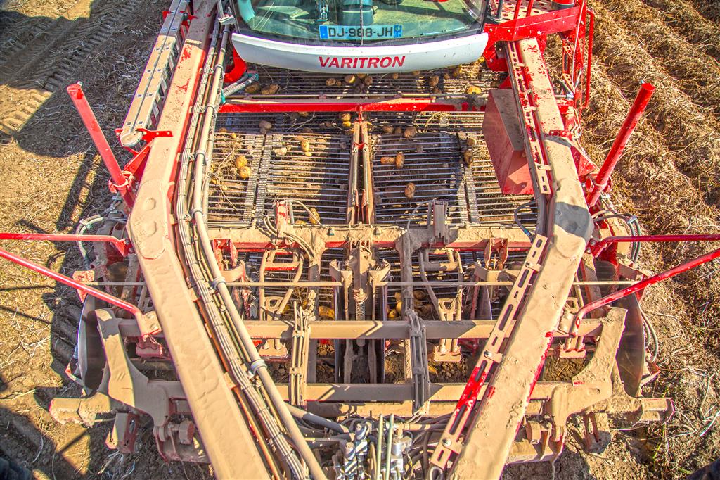 De 4-rijige zelfrijder VARITRON 470 met 7-tons NonstopBunker en terugdraaiende bunkerbodem is naast 75 cm nu ook met 90 cm rijafstand verkrijgbaar. Voor een veilig en comfortabel wegtransport bedraagt de spoorbreedte van de vooras 3 m. Op het perceel wordt de vooras aan beide zijden vanaf de bestuurdersstoel elk 30 cm uitgeschoven, zodat voor het rooien een spoorbreedte van 3,6 m bereikt wordt. Voor een optimale, gelijkmatige en zeer vriendelijke samenvoeging van het product van 3,6 m op de 2,8 m brede zeefbanden zijn de graafbanden iets scheef gemonteerd. Er vindt geen verstoppingsgevaar en productbeschadigende versmallingen plaats.