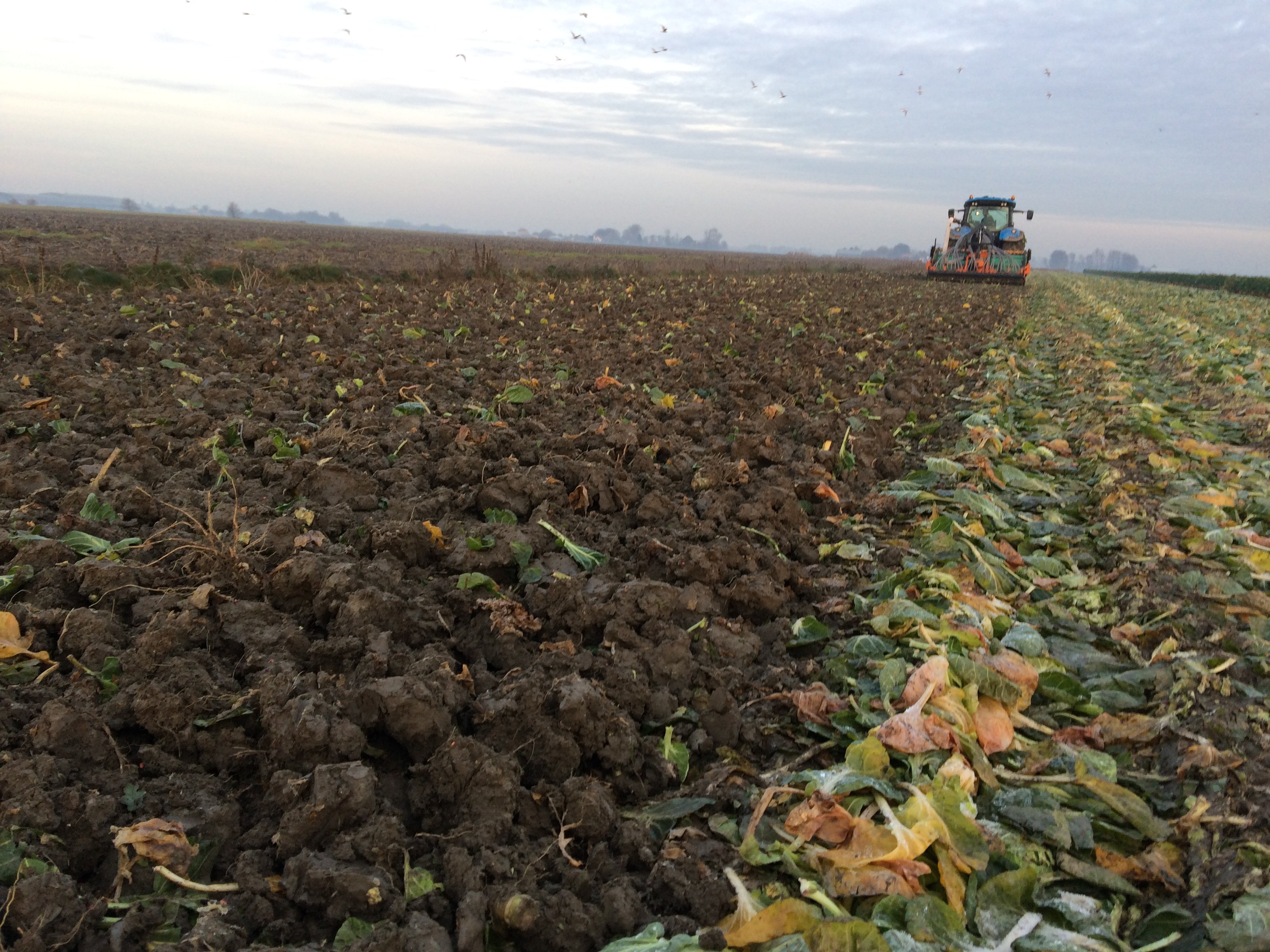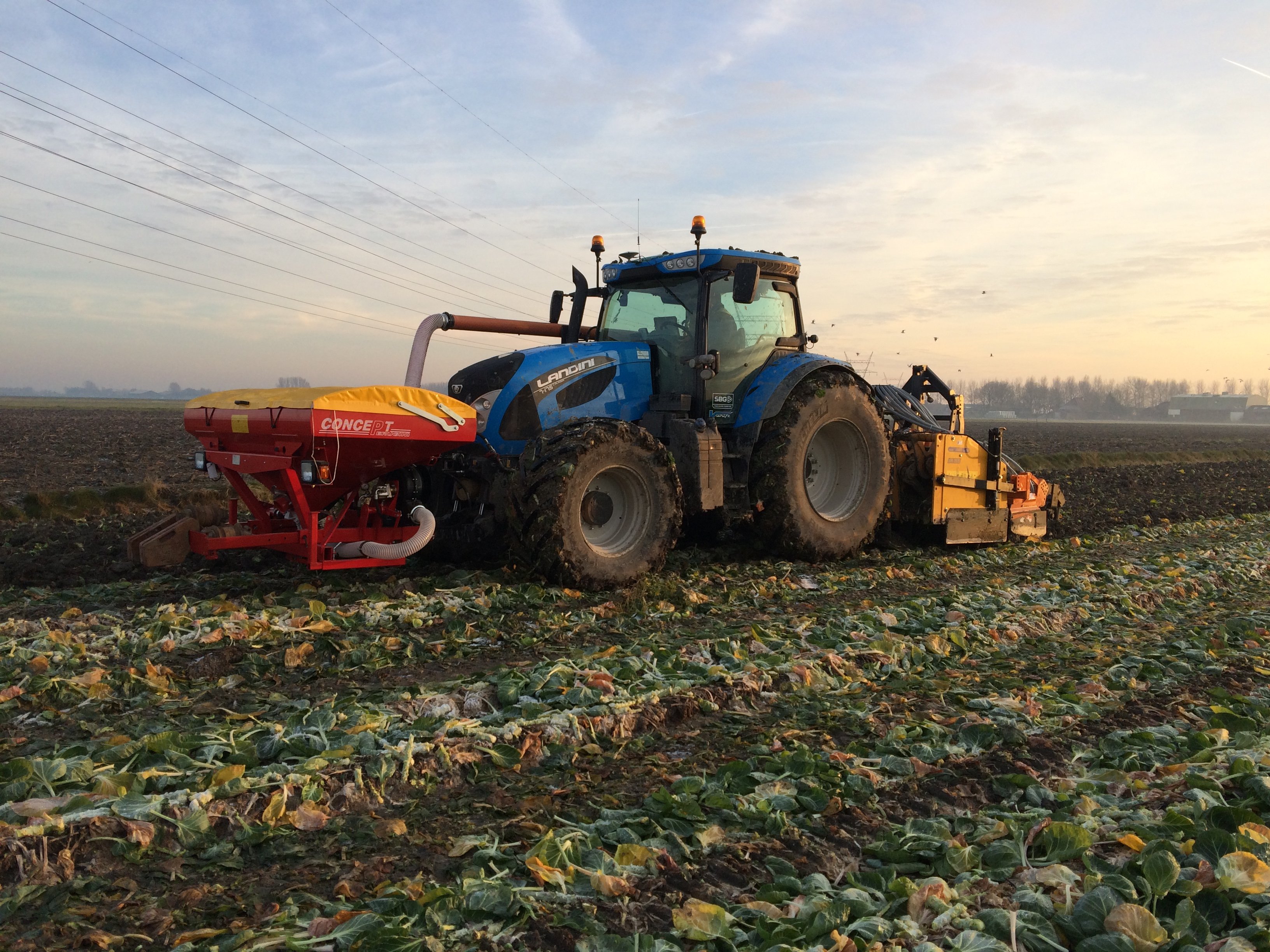 Het tarwezaad wordt in één werkgang ondergewerkt met een spit/kopeg combinatie.