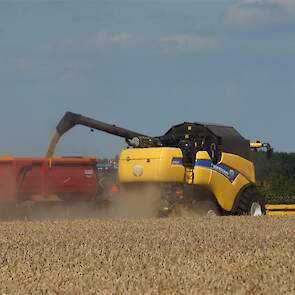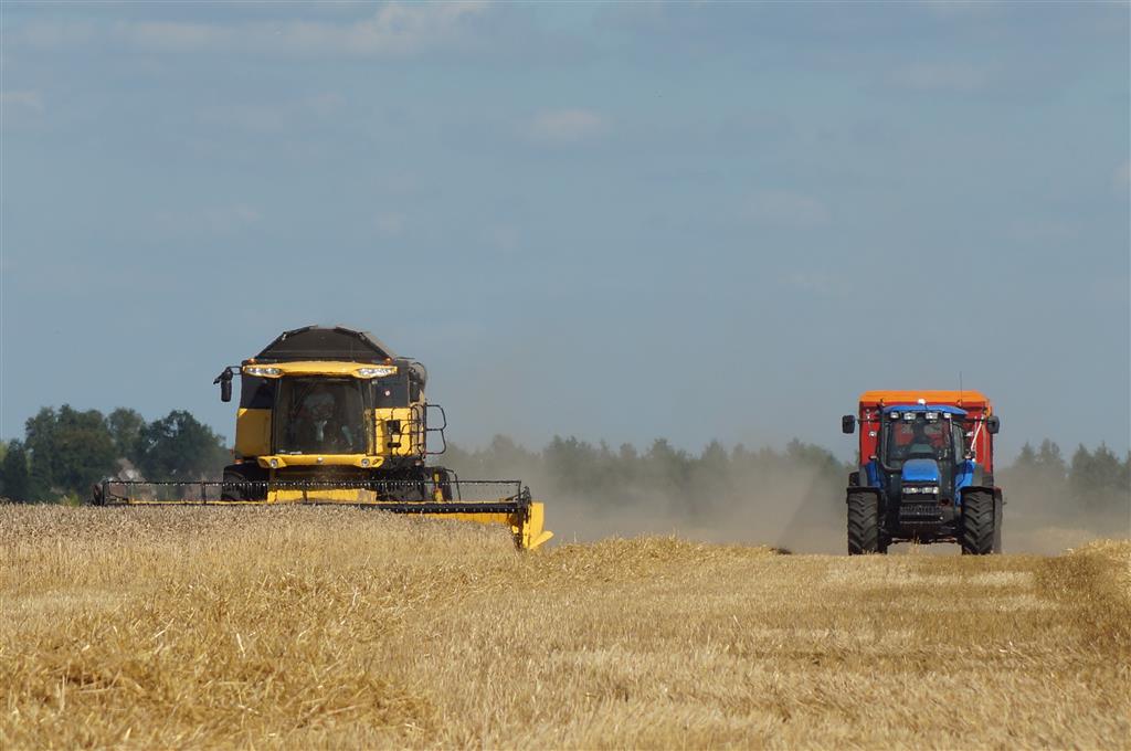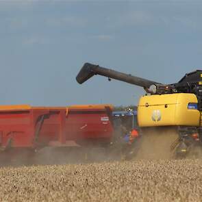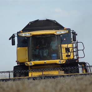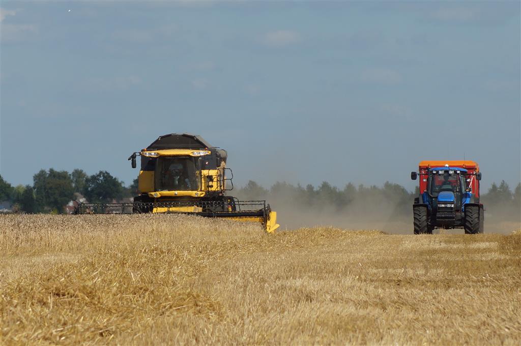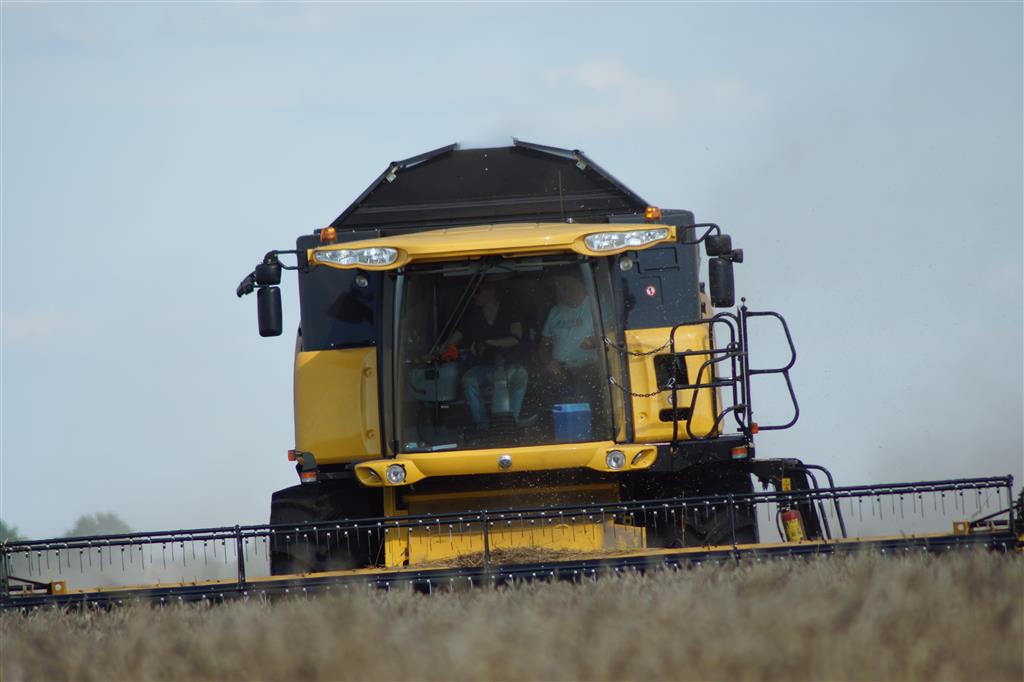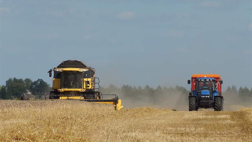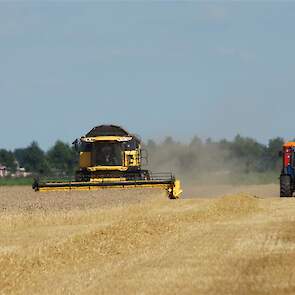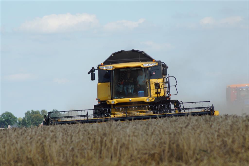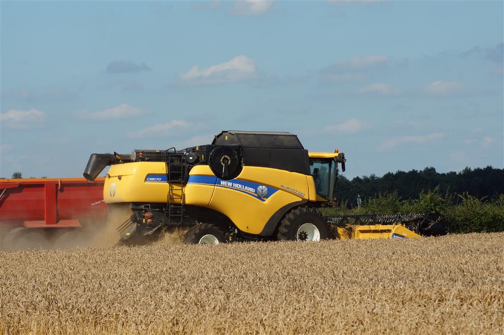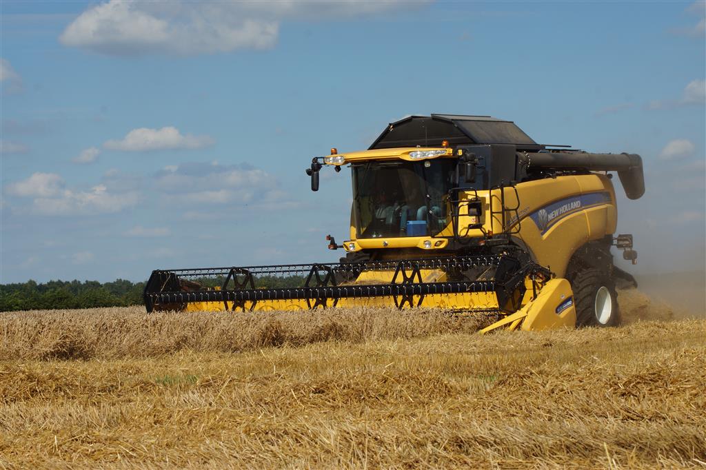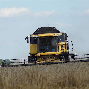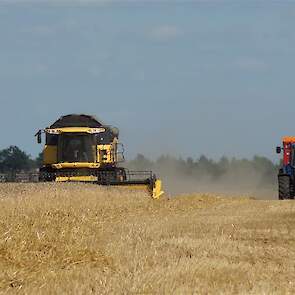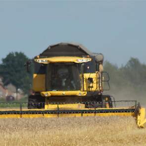 Looon en akkerbouwbedrijf Moorlag uit Nieuw Weerdinge aan het zomertarwe combinen New Holland T7.235 met Krampe BIg Body 700 en New Holland TM 155 zorgen voor het transport naar het eigen bedrijf waar het in silo`s word opgeslagen