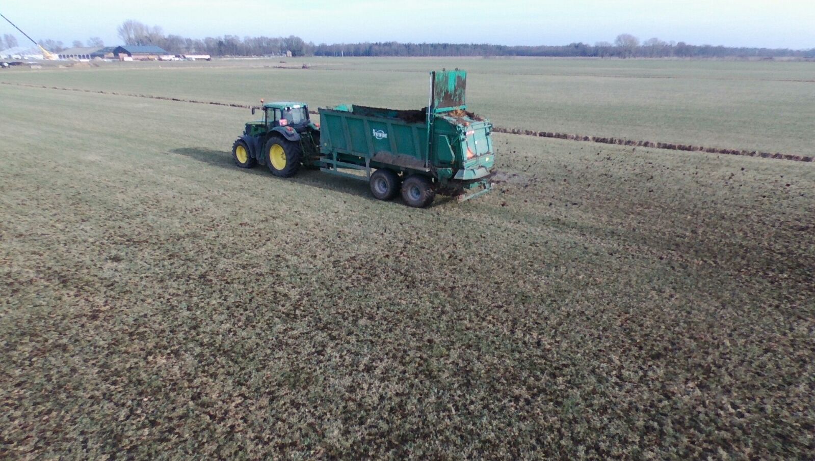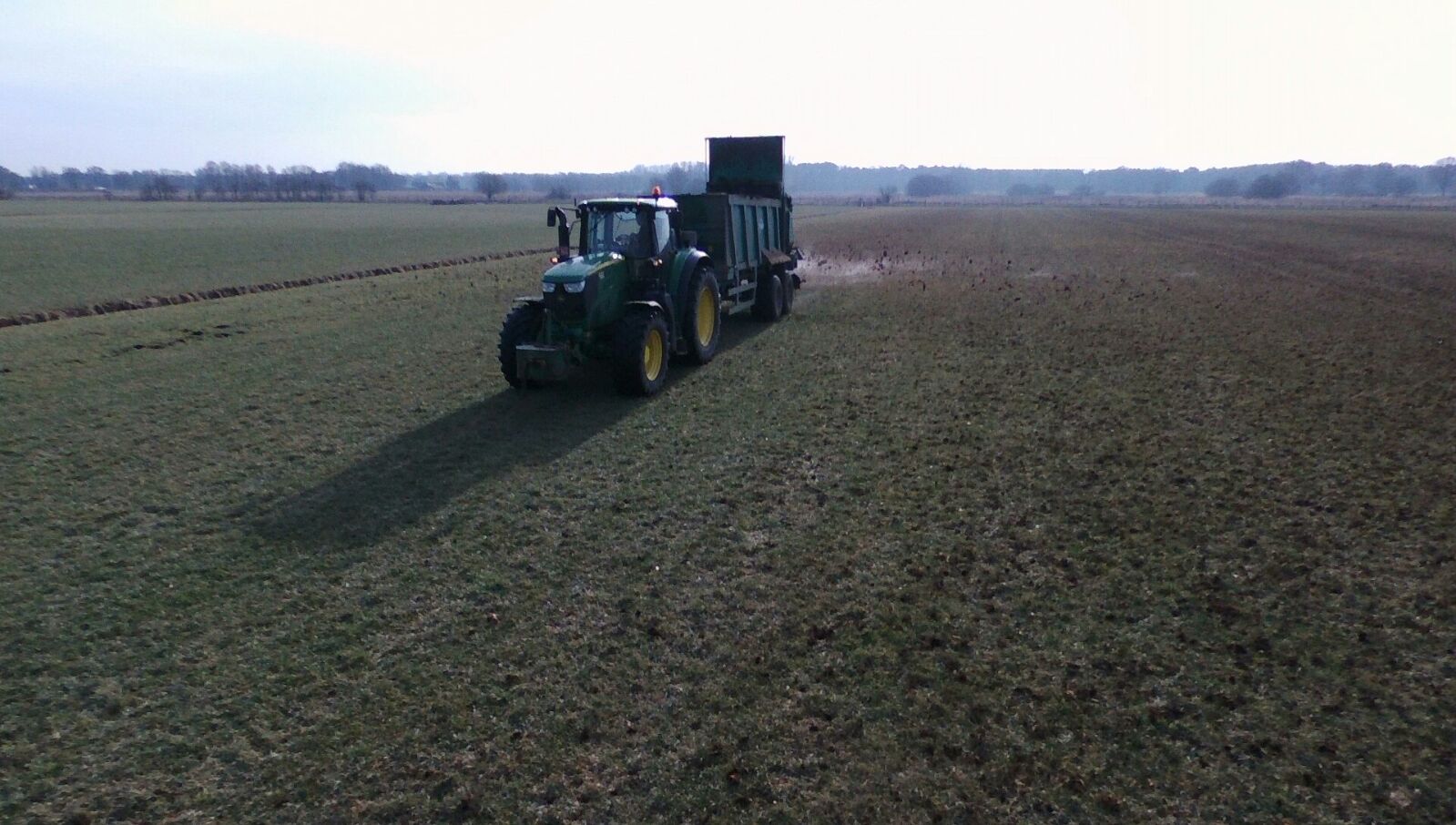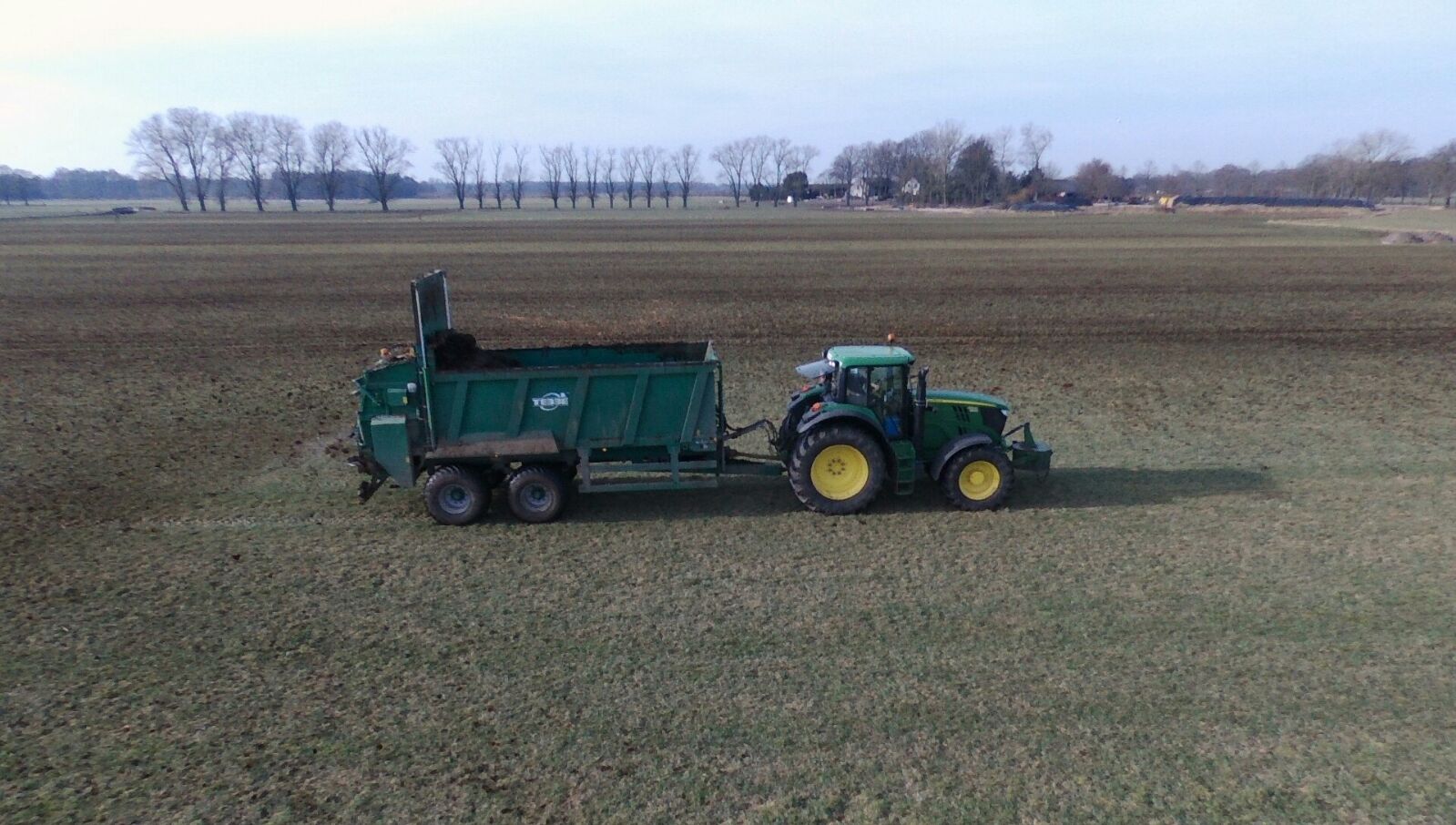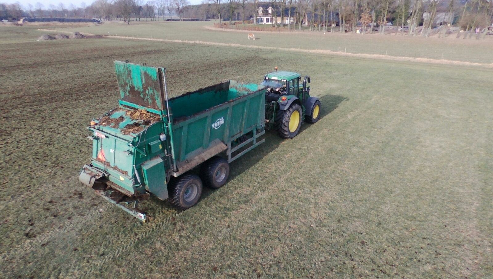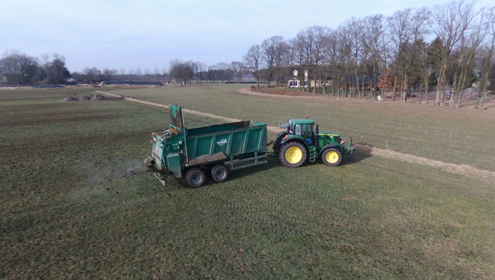 Loonbedrijf Paumen Maaseik geitenmest aan het verspreiden