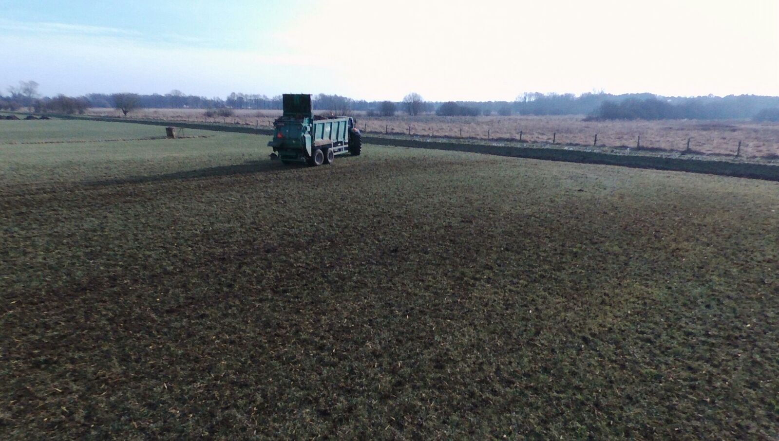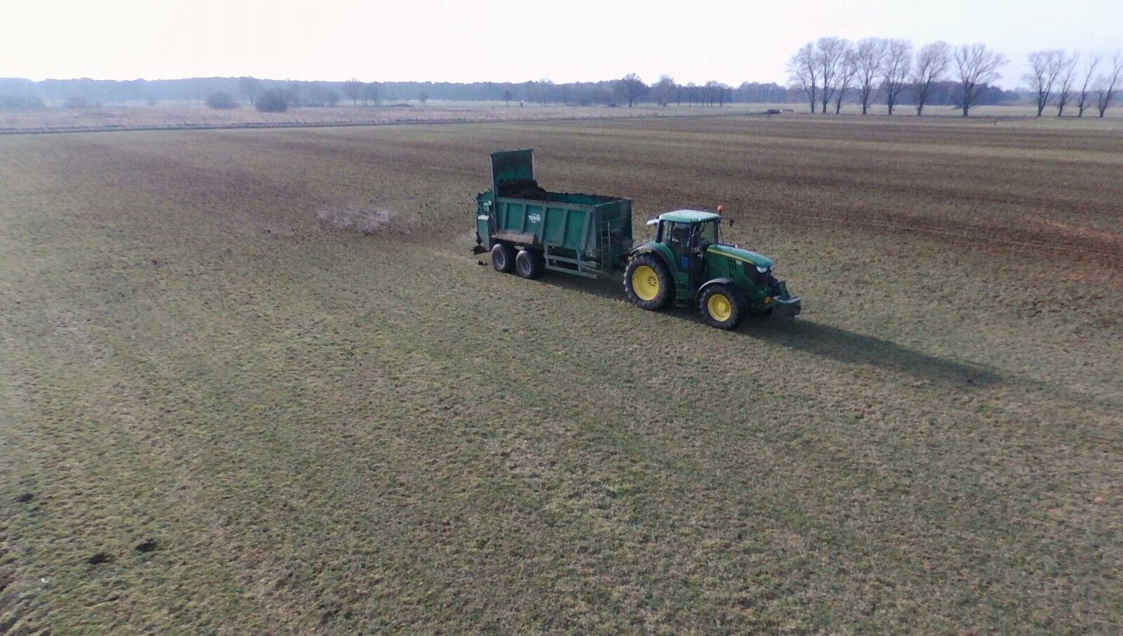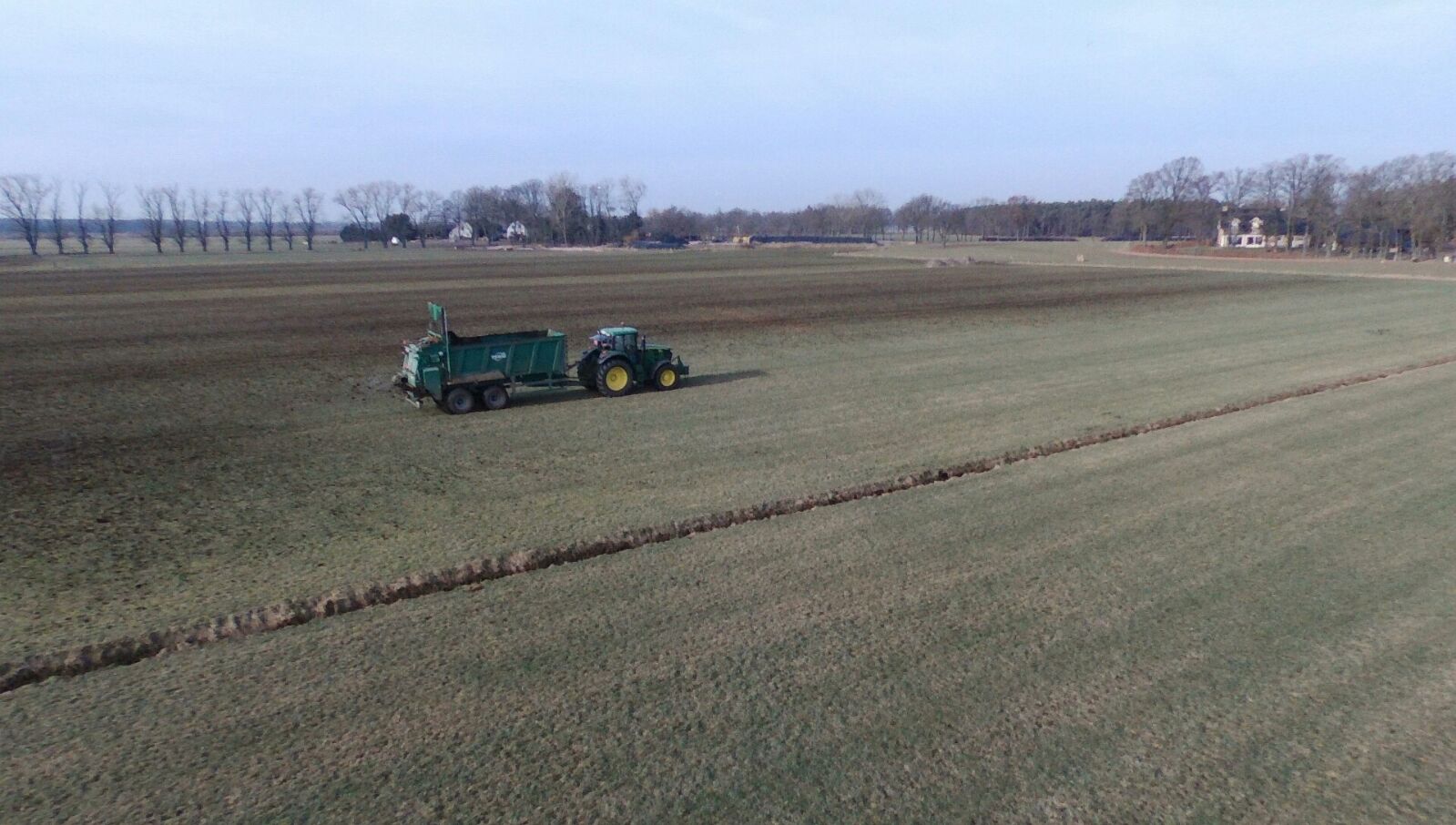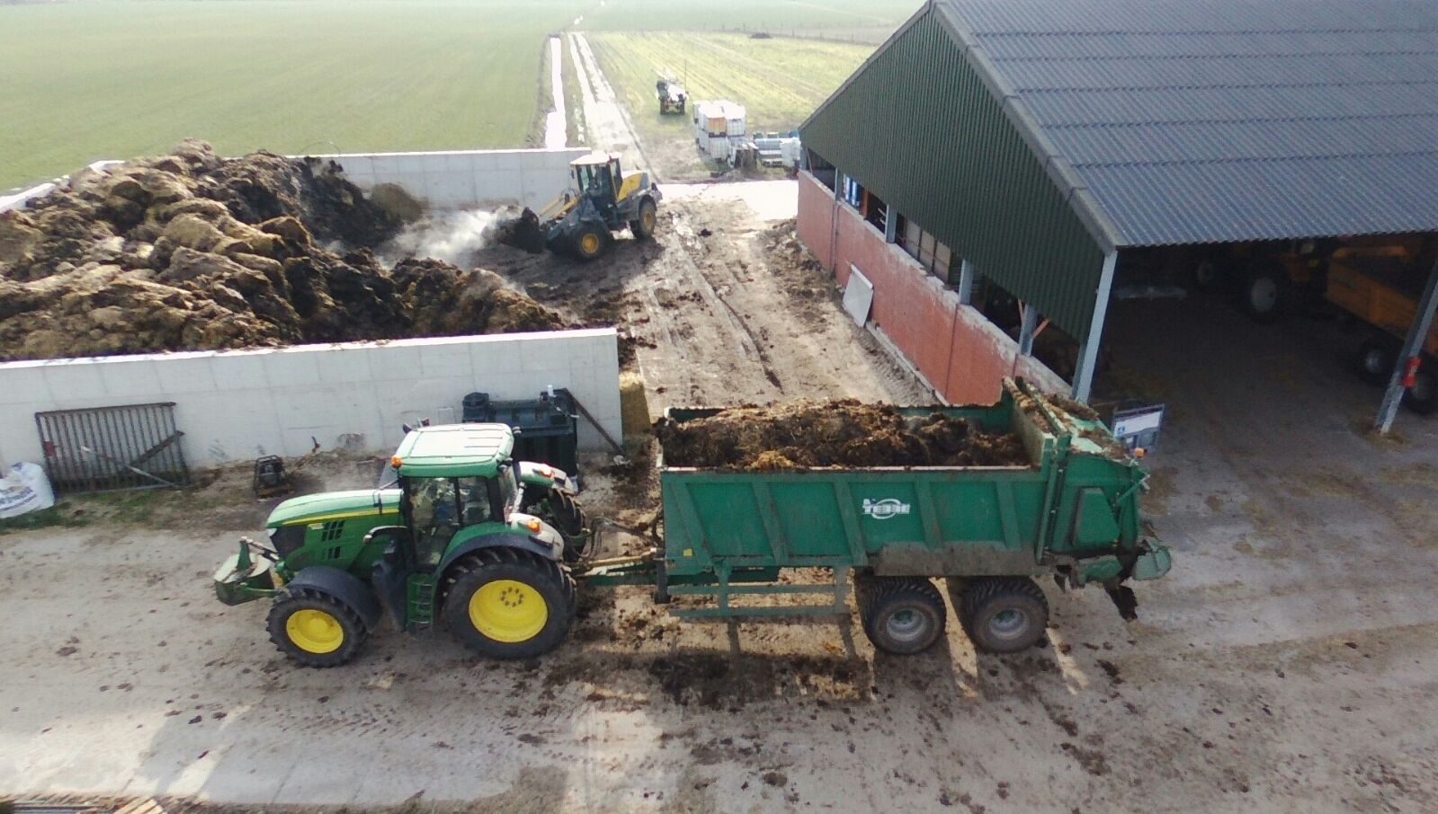 Loonbedrijf Paumen Maaseik geitenmest aan het verspreiden