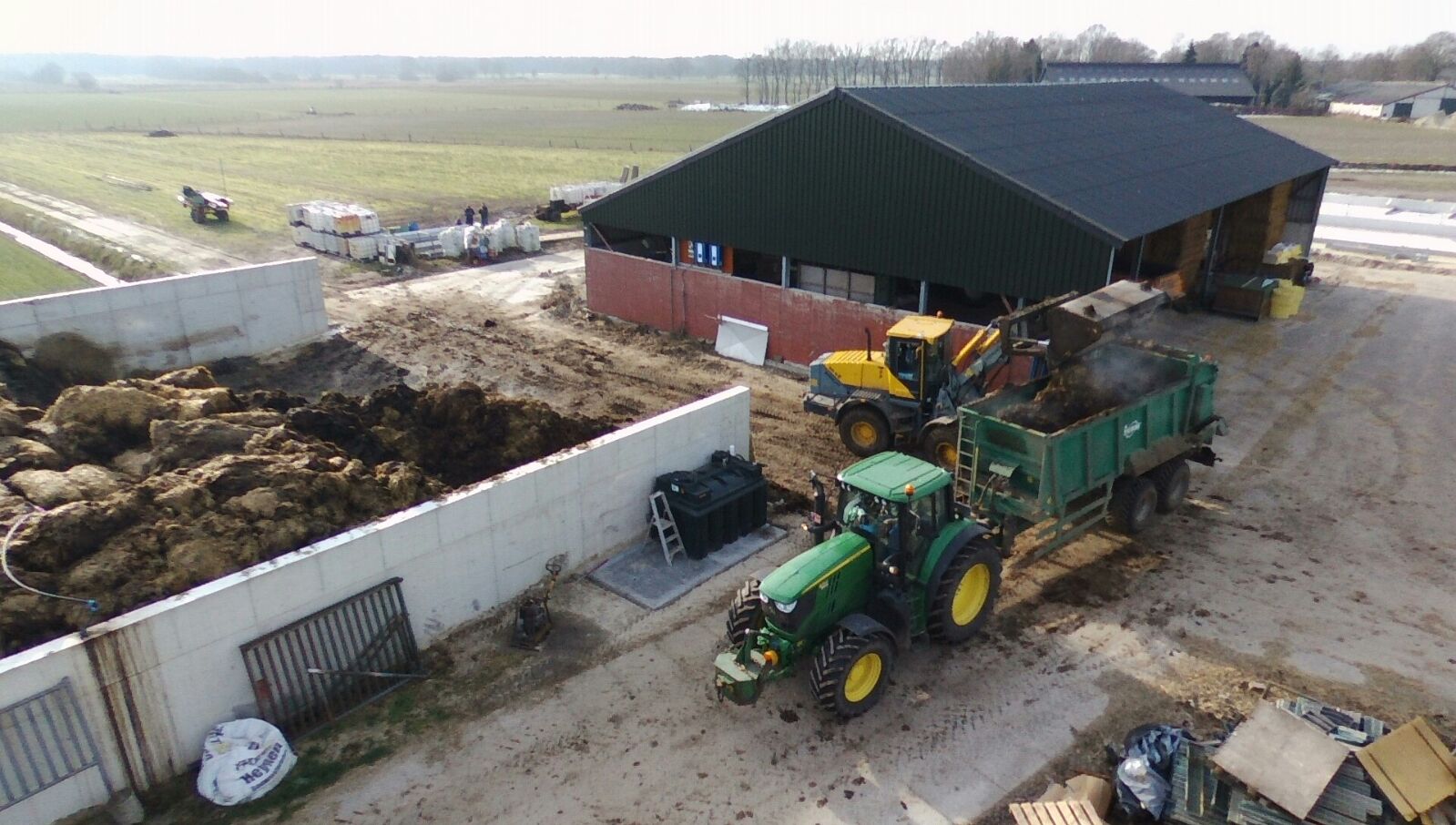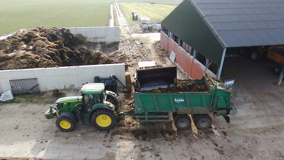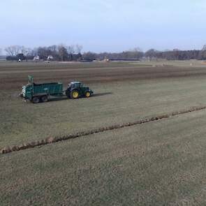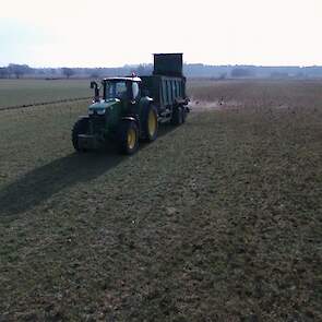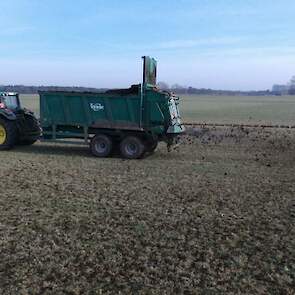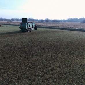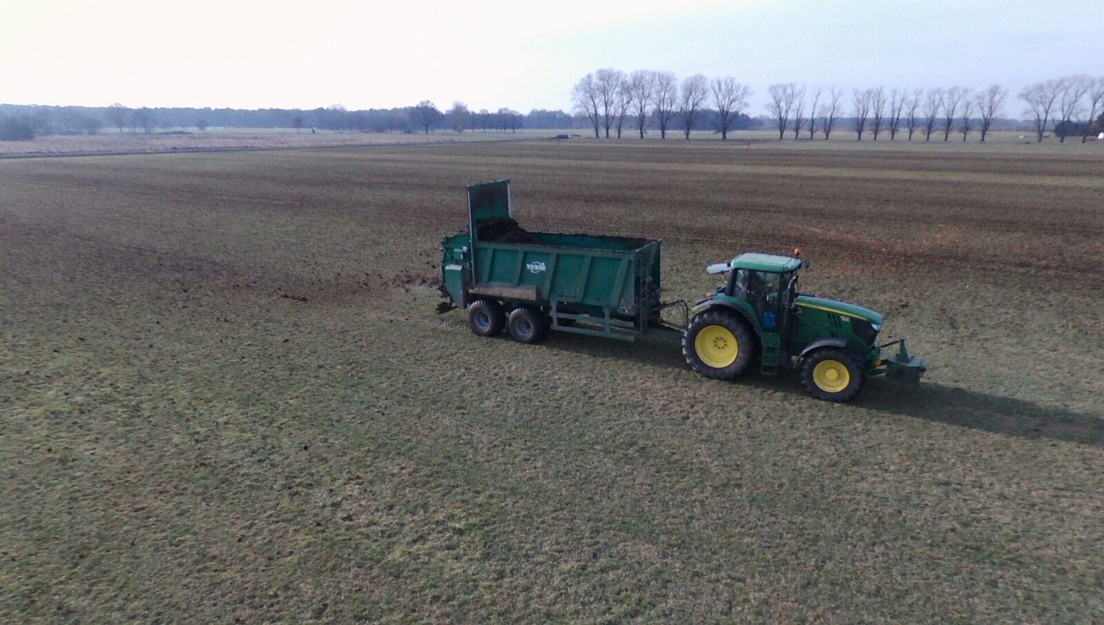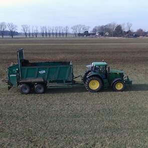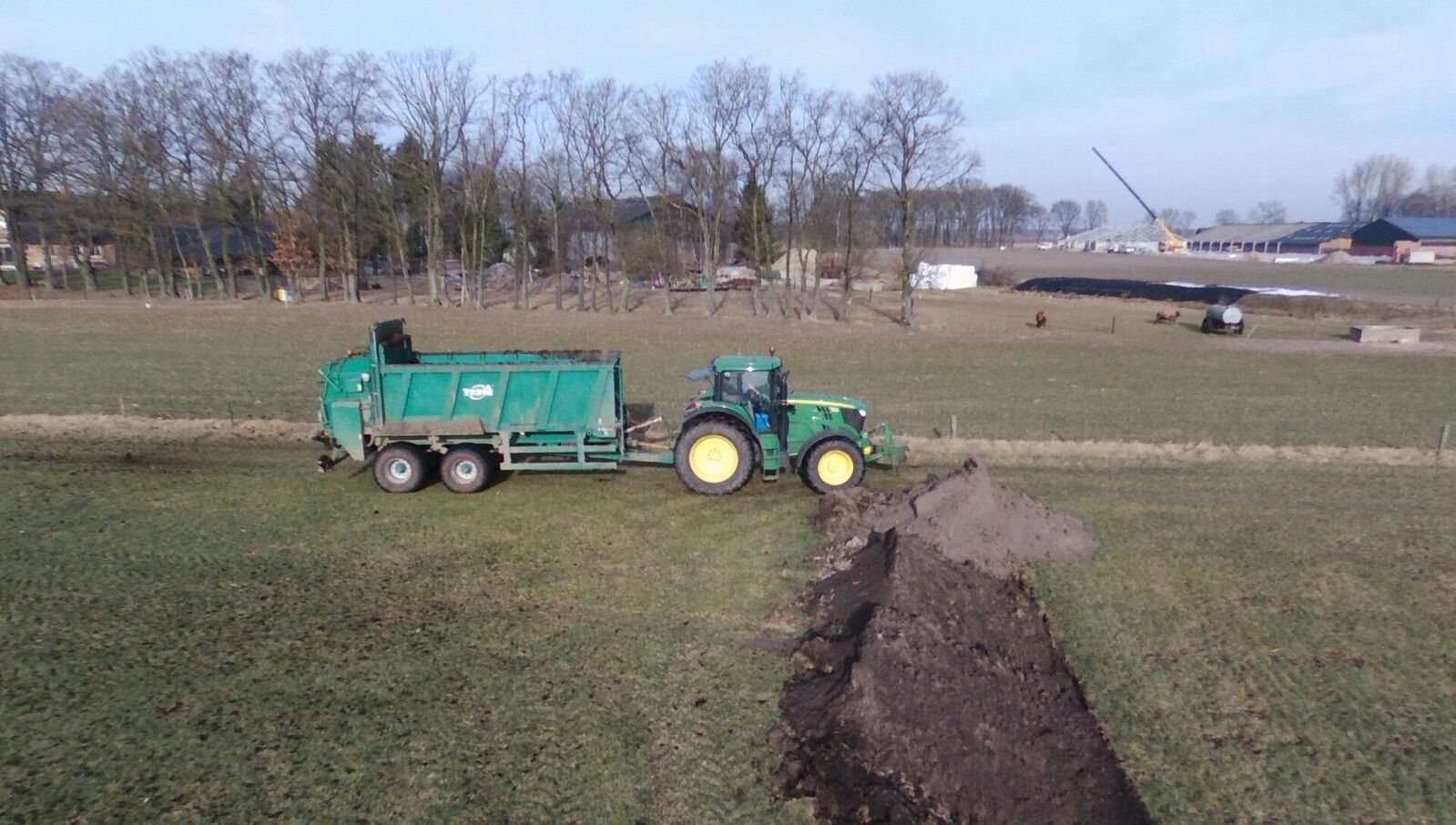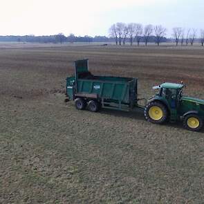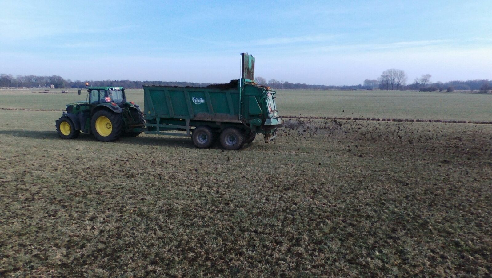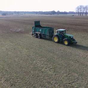 Loonbedrijf Paumen Maaseik geitenmest aan het verspreiden