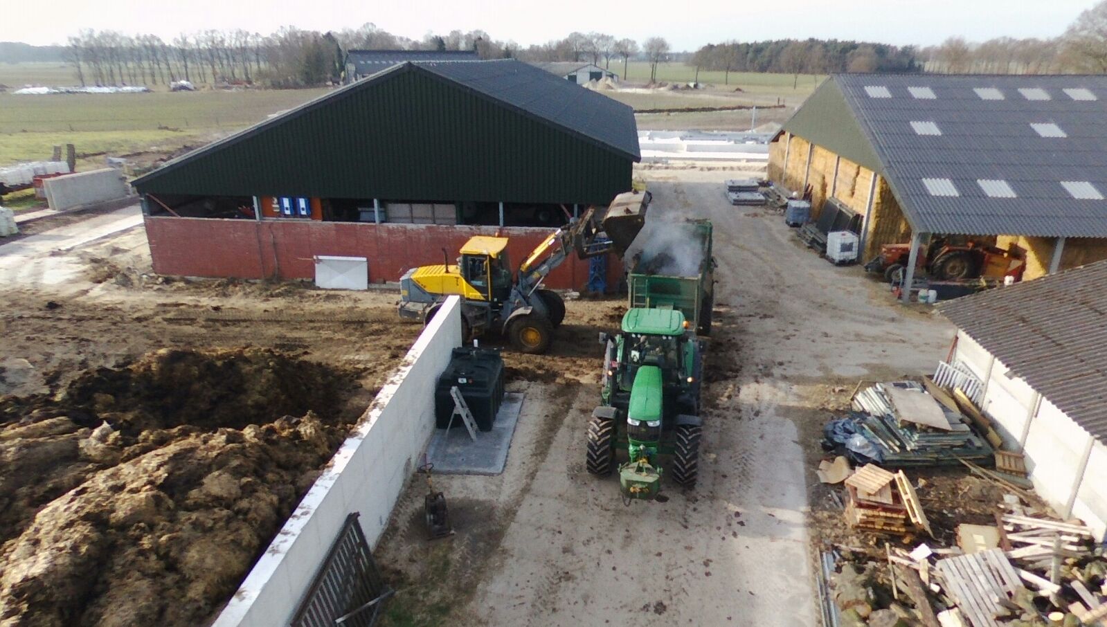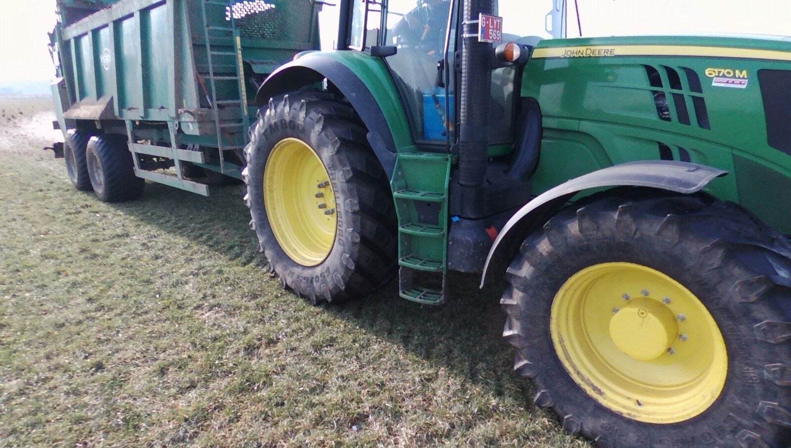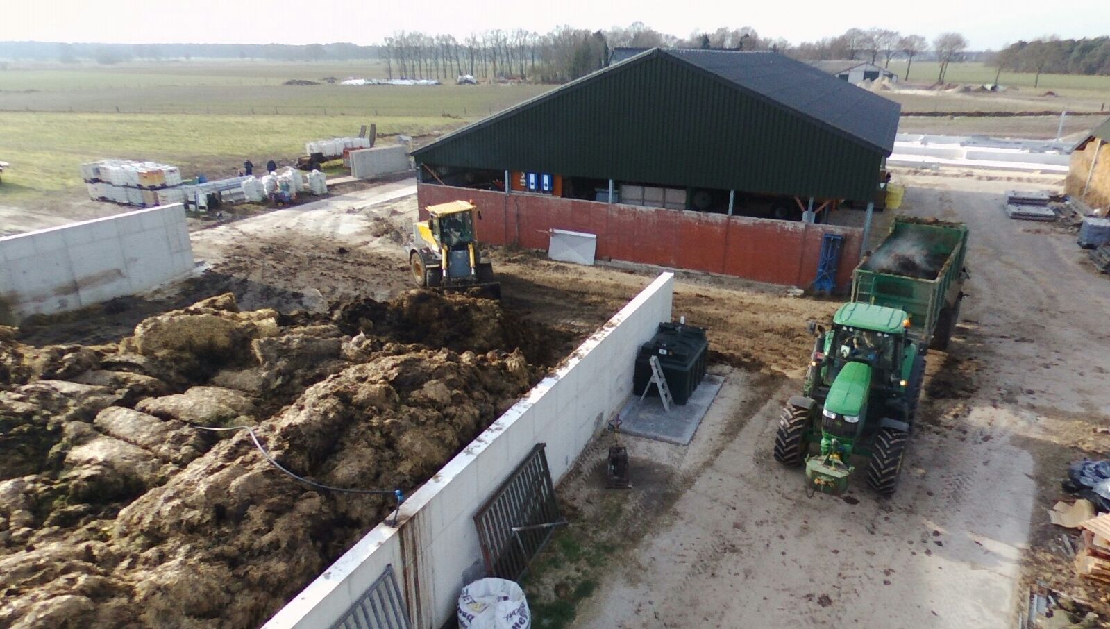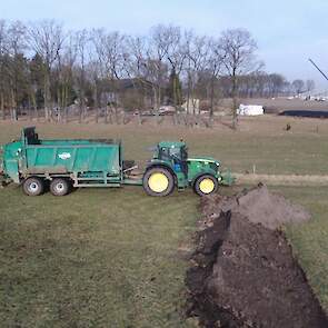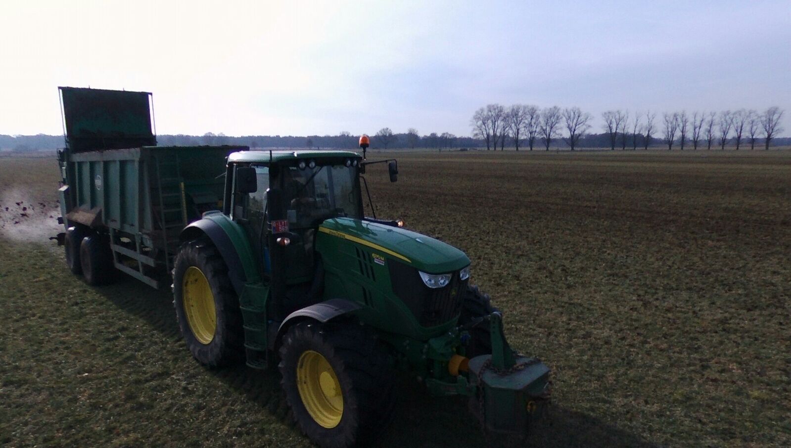 Loonbedrijf Paumen Maaseik geitenmest aan het verspreiden