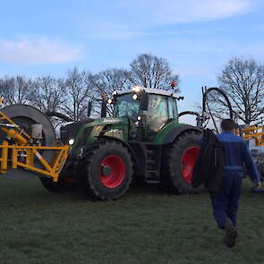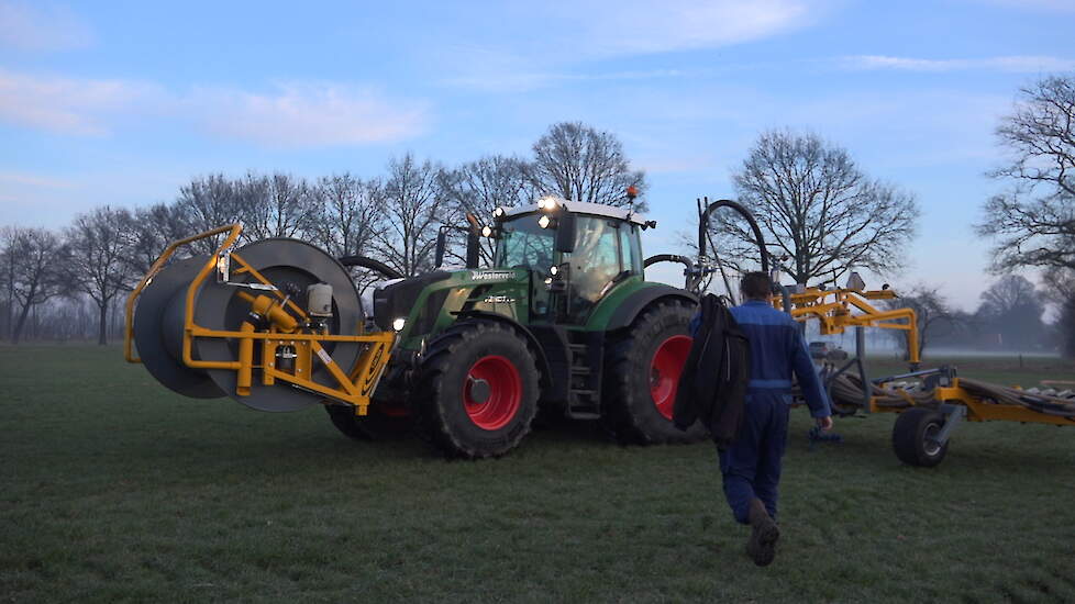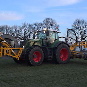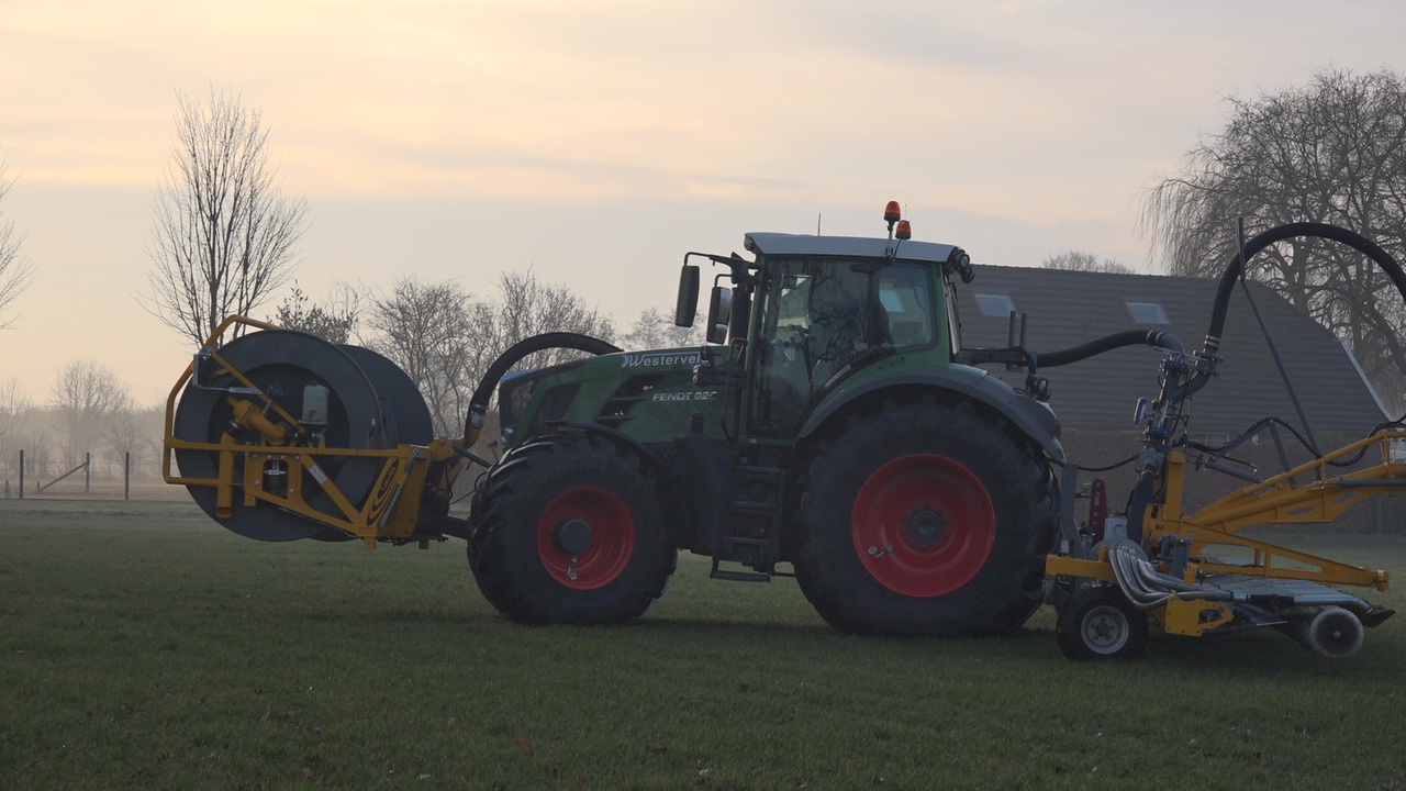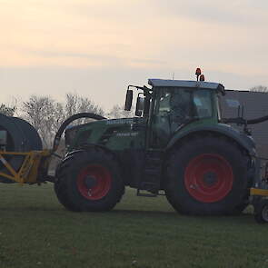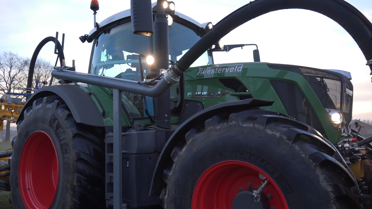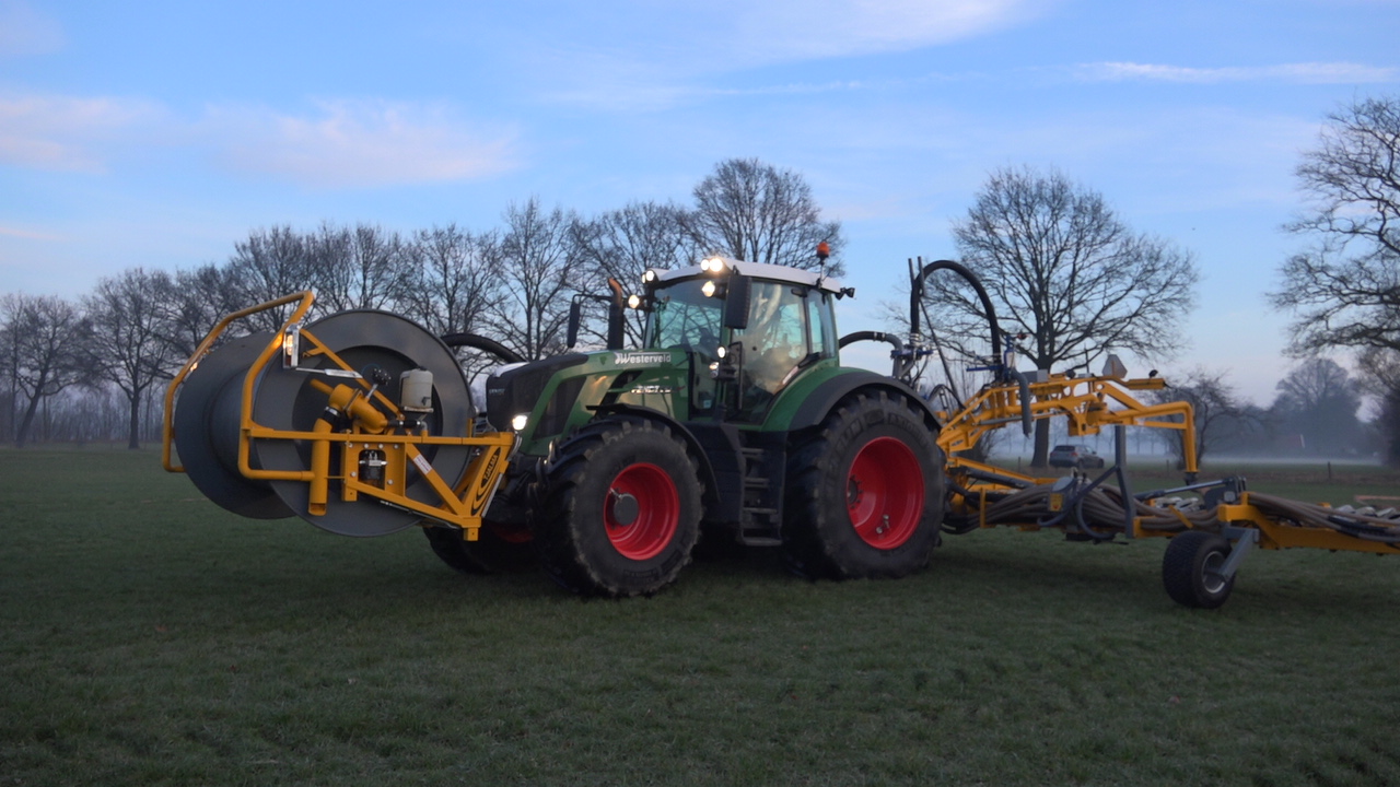 Grasland sleepslang bemesten Fendt 828 Vario met loonbedrijf Westerveld uit Breedenbroek