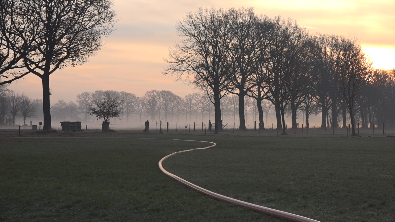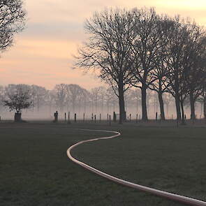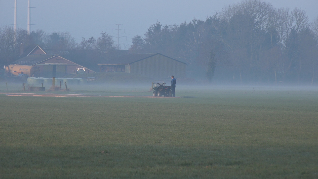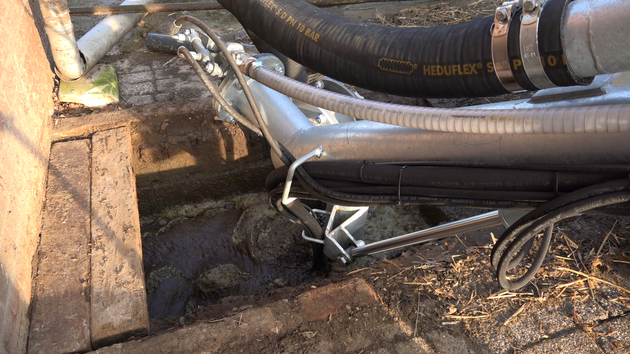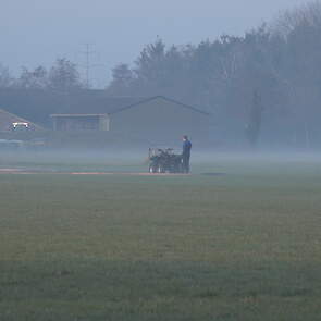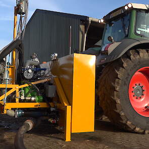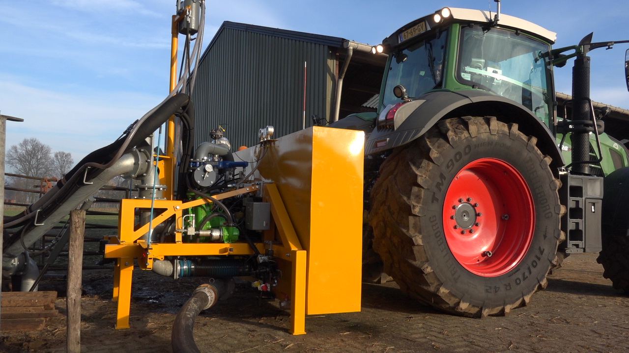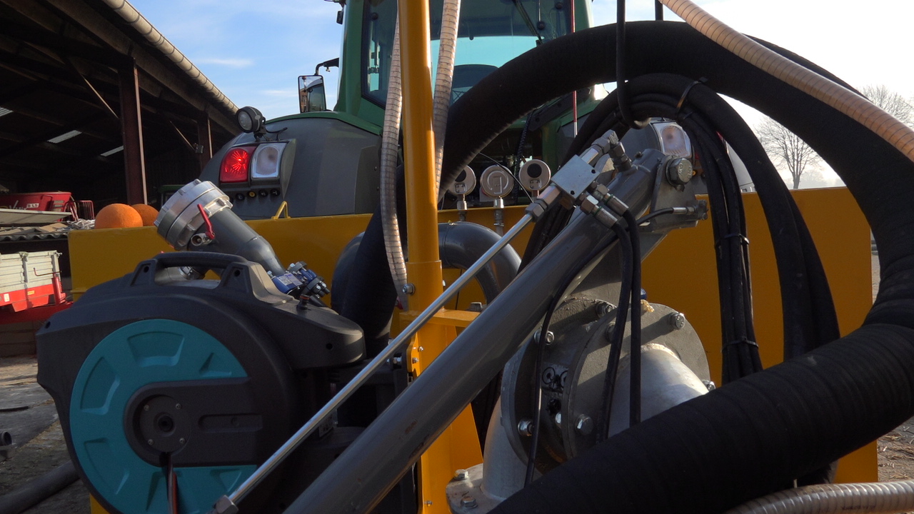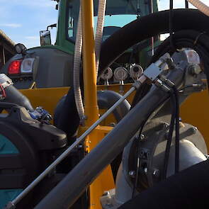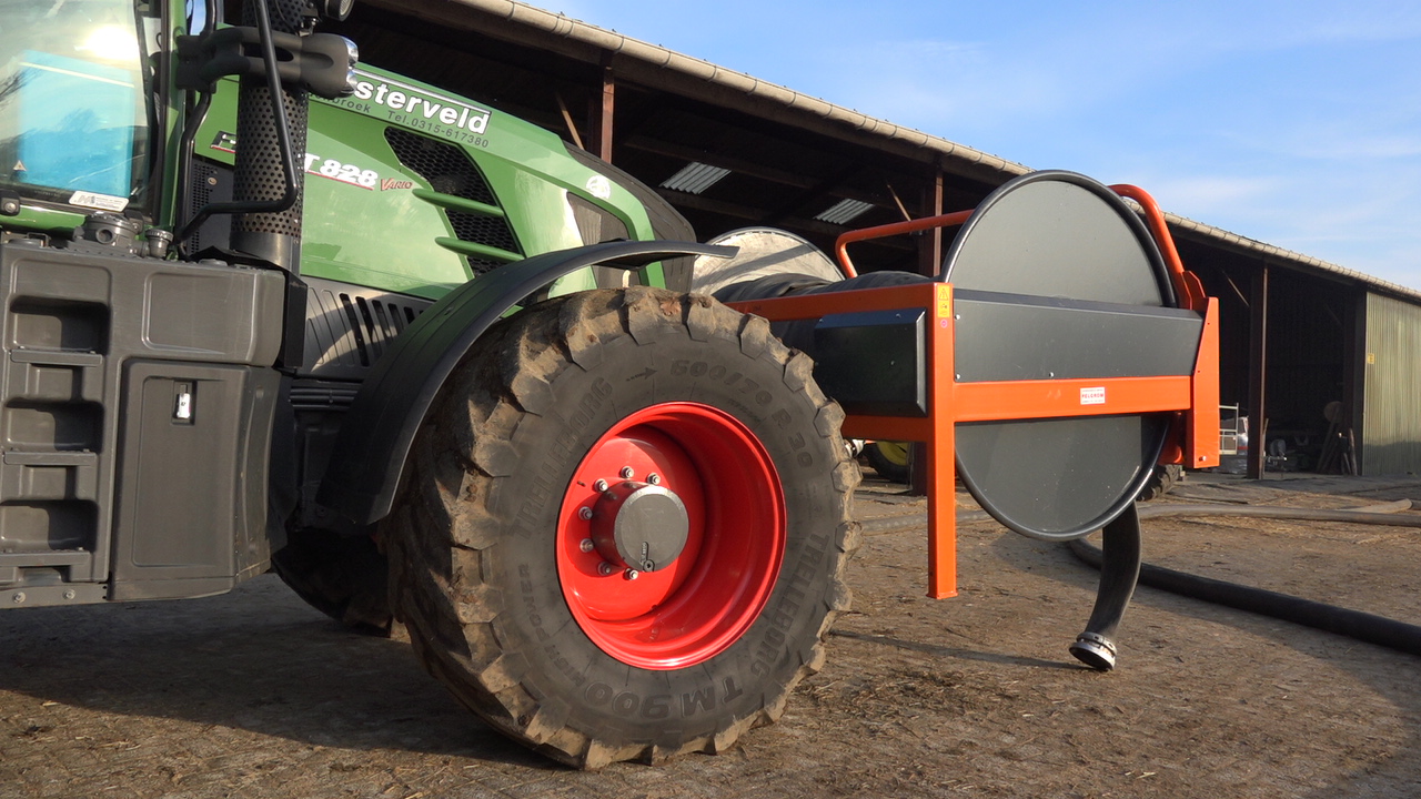 Vandaag mag het weer en is ook loonbedrijf Westerveld uit Breedenbroek met de mesttrein op pad en de 12,37 meter brede bemester van het merk Agrometer