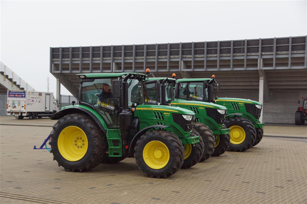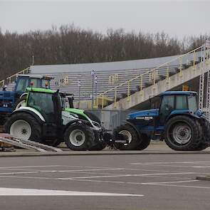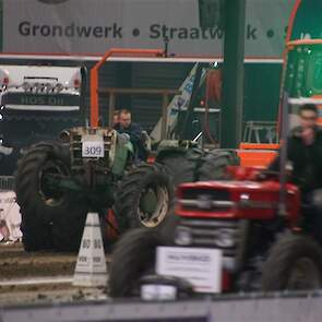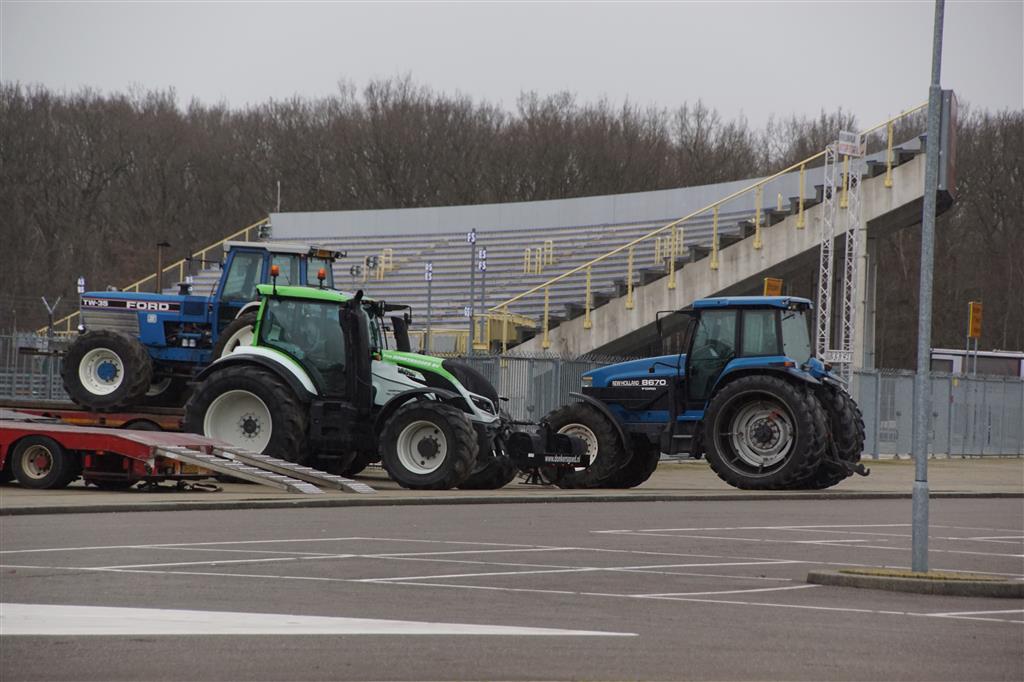 Boerentrekkers in de TT Hall voor de sleepwagen