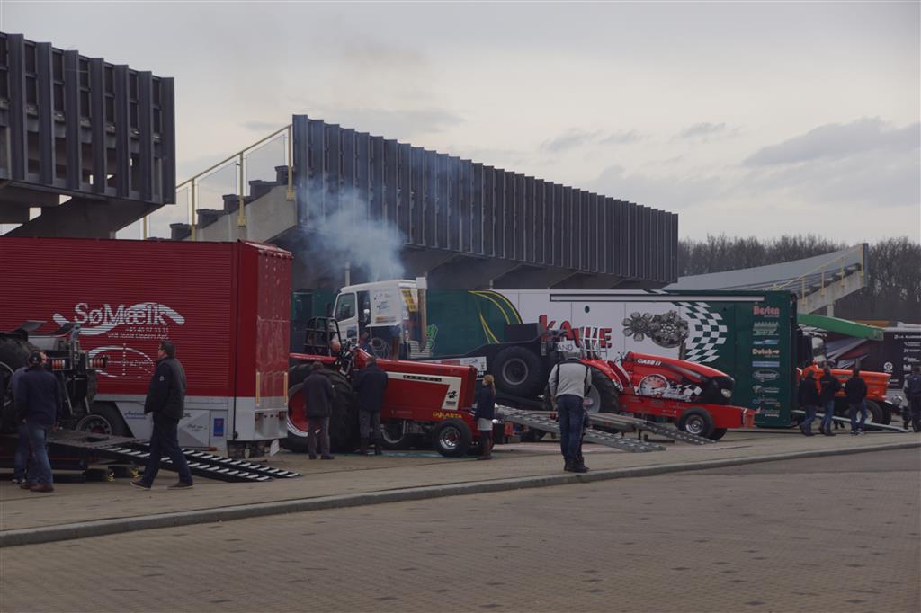 NieuwsTrekkersDrukte in de paddock en optoeren bij de start Indoor Assen TT Hall 2017