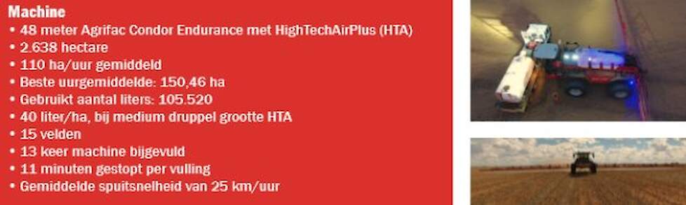 Agrifac had weinig voorbereiding in de aanloop naar het evenement. De demonstratiemachine, een 48 meter Condor Endurance met HighTechAirPlus was een week vóór de recordpoging in de buurt en na een paar telefoontjes was het hele gebeuren geregeld. De timing was goed en de Masons waren enthousiast om mee te helpen bij de poging een nieuw wereldrecord voor 24-uur spuiten te vestigen. Het doel was om het vorige record van 1.032 ha te kloppen.