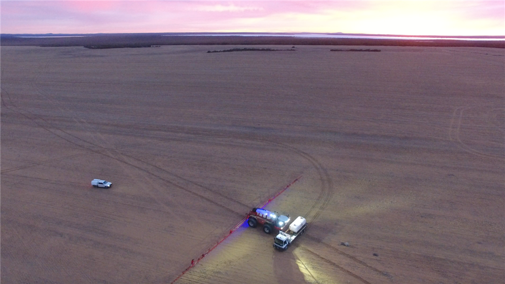 Woensdagochtend jl. om 03.00 uur vertrokken Mark en zijn broer Ben vanuit Perth en bereikten om 07:30 uur het bedrijf van de Masons. Mark prepareerde de machine, terwijl Ben begon met het in kaart brengen van de veldgrenzen en voor een snelle teambriefing zorgde. Om het officieel te maken was Jim Gilmour aanwezig, een lokale JP. De rol van een vrederechter (JP) in Australië is om op te treden als onafhankelijke en objectieve getuige bij officiële en juridische kwesties. Jim was blij met zijn rol in dezen en liet op 1 maart om precies 12:00 uur zijn arm zakken voor de start. Om middernacht (dus 12 uur later) was al 1.376 ha bespoten.