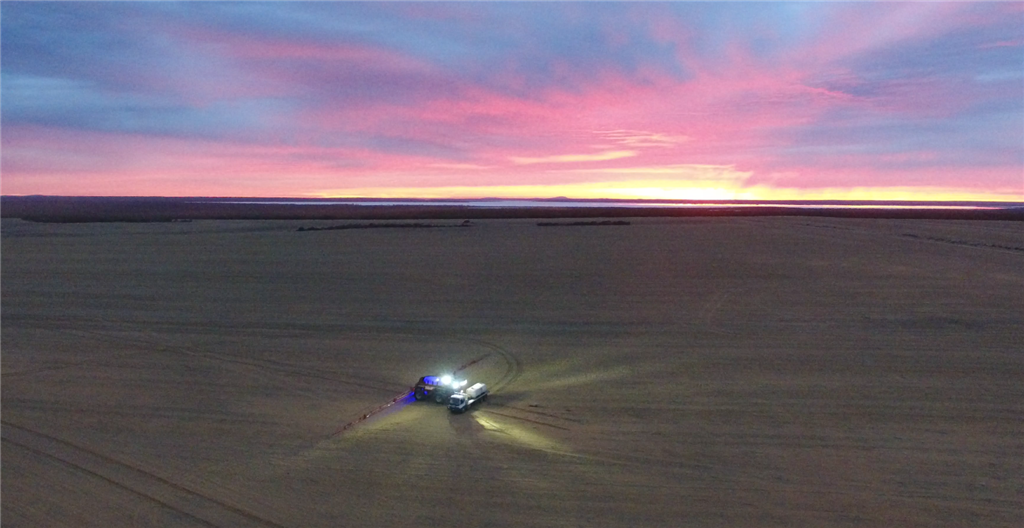 Brendan Mason en Drew Fraser waren verantwoordelijk voor het bedienen van de waterwagen om de spuit draaiende te houden. Ze hebben fantastisch werk geleverd. Inclusief voorbereidingen was het hele team minstens 30 uur zonder slaap in touw geweest, toen de klok om precies 12 uur s middags op 2 maart stopte en Jim kon beginnen met het opnemen van de totale oppervlakte. De resultaten: