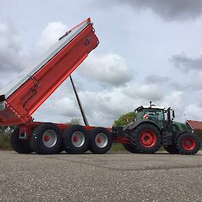 Rene Salman uit Noordwijk met z,n 3-assige VGM kipwagen van het type ZK 30-2 De kipwagen is uitgerust met alle denkbare opties zodat de chauffeurs zo efficiënt en prettig mogelijk hun werkzaamheden kunnen uitvoeren. Als voorbeeld kunnen we de onafhankelijk hydraulische as ophanging noemen, de hydraulische disselvering, Groeneveld automatische smering.