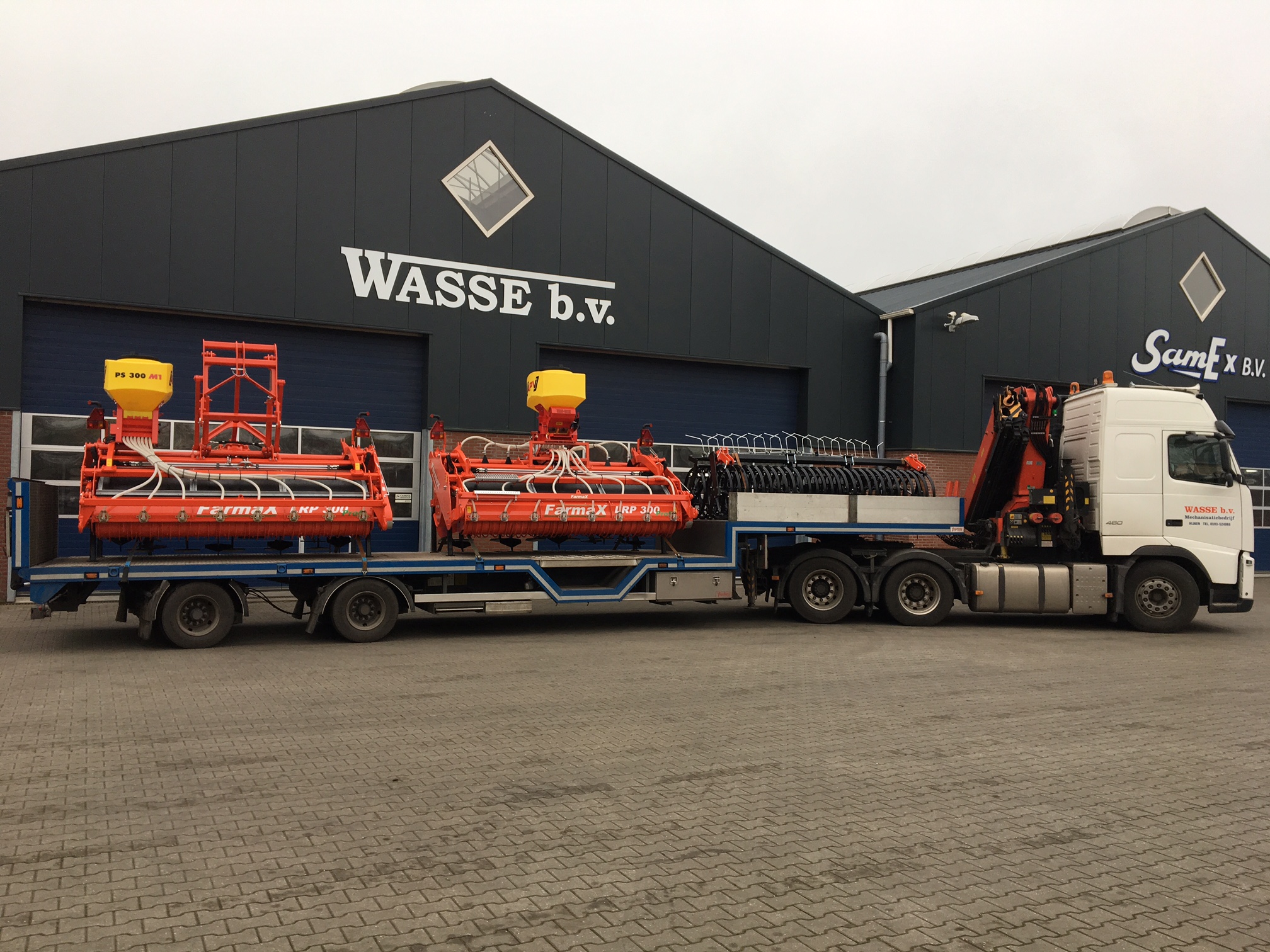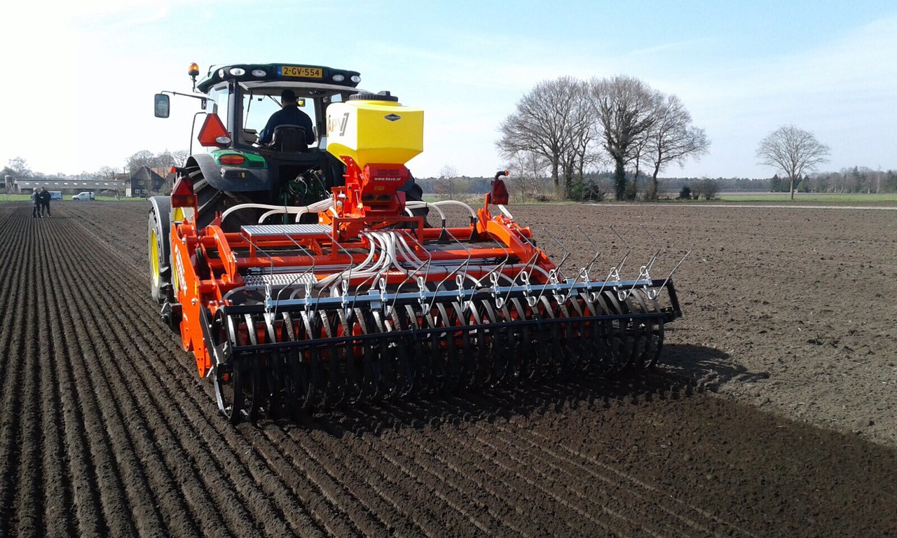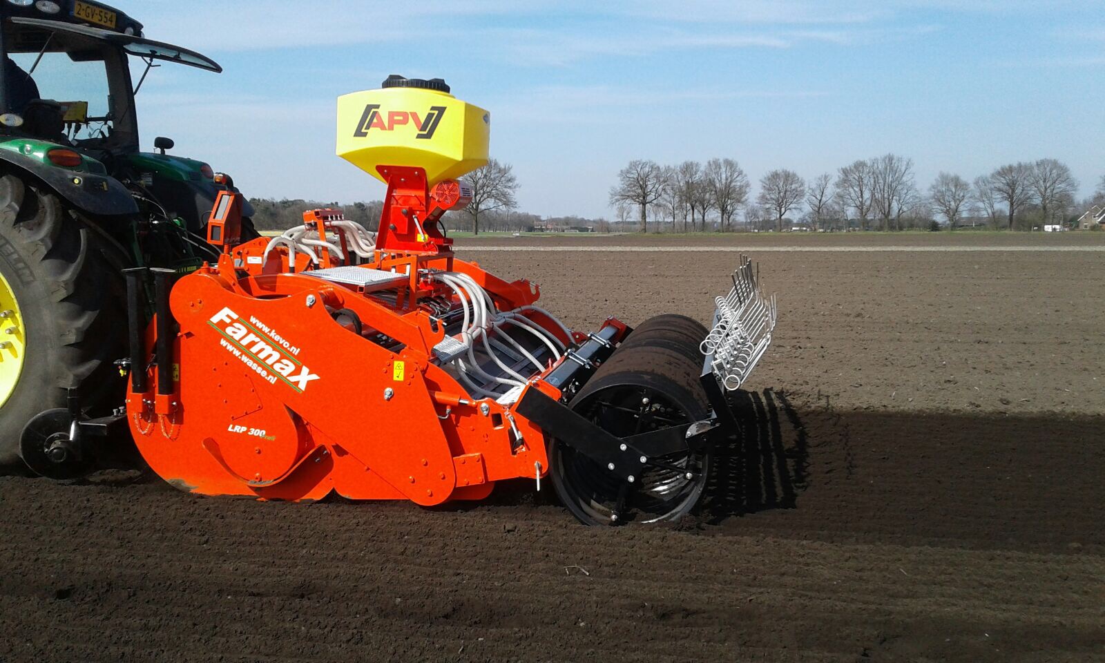 De eerste Farmax Lrp Profi spitters zijn weer in bedrijf gesteld door Wasse uit Hijken.De spitters die te zien zijn in combinatie met een APV zaaier en een met een Samex twinseeder om gras te zaaien