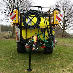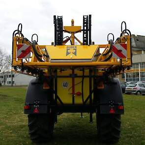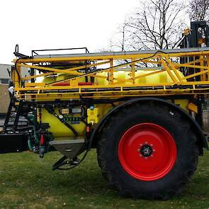 De Duitse dealer verwacht dat er meerdere veldspuiten in bedrijfskleuren uitgerust gaan worden. Met name in Duitsland valt het zwart-rood-geel goed in de smaak.