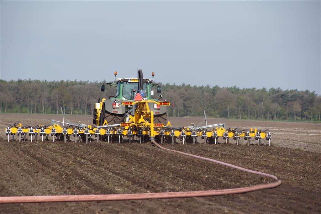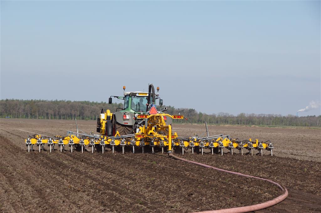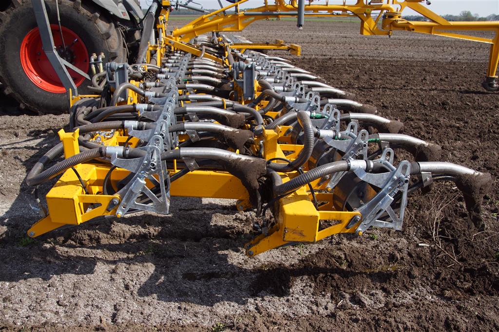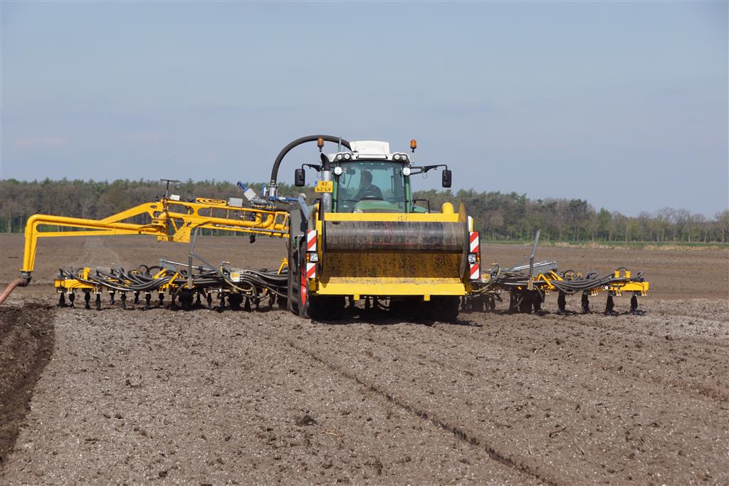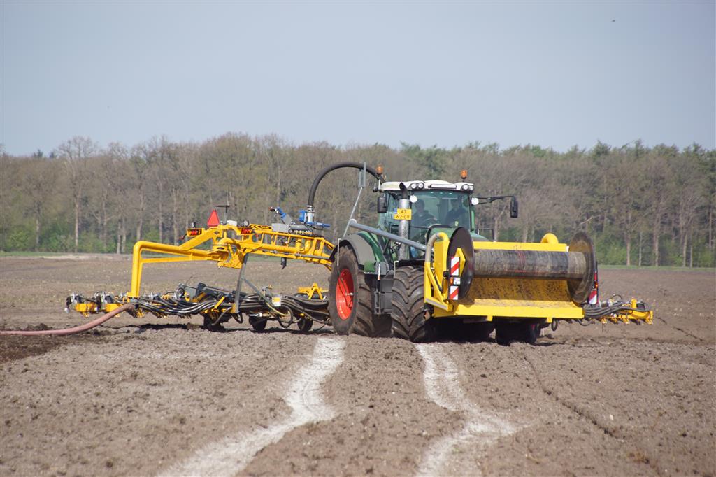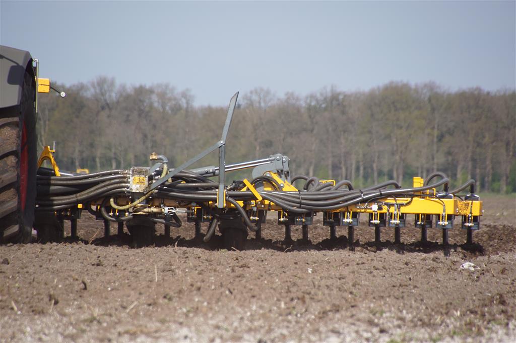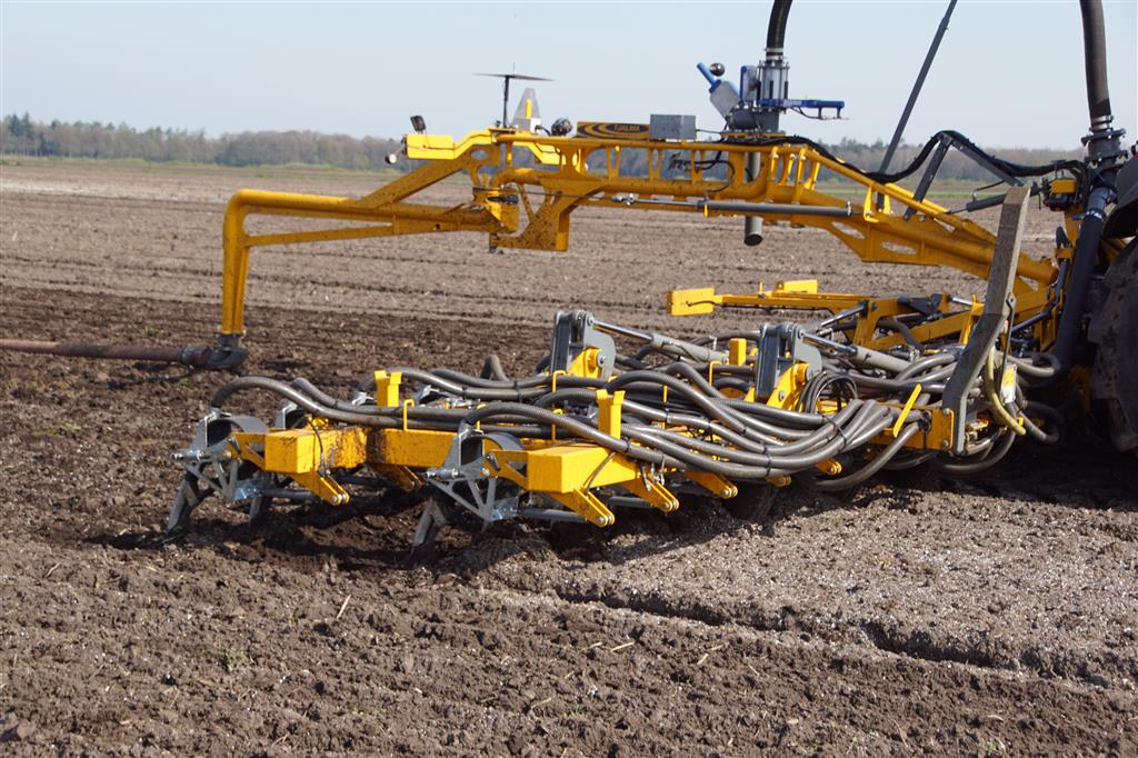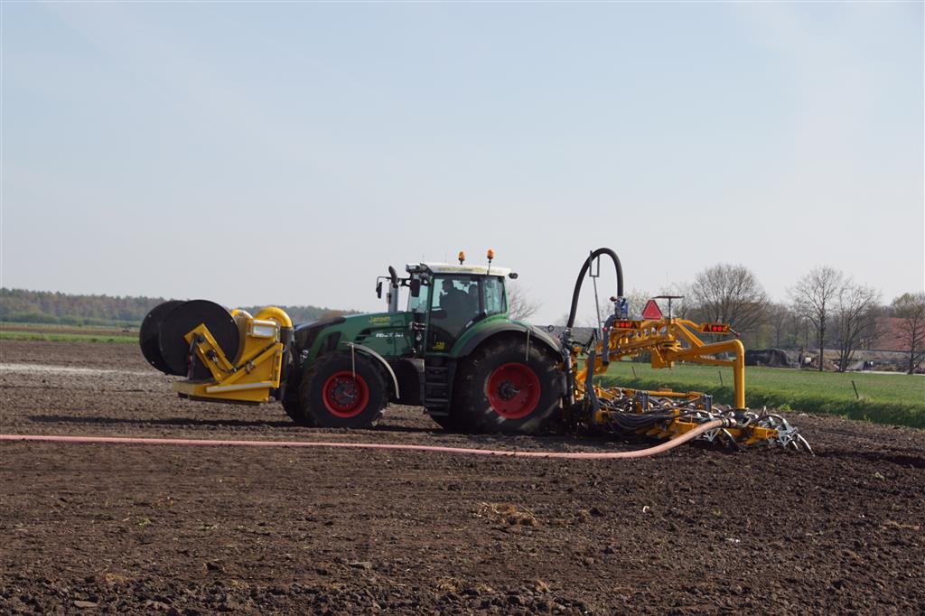 De Tjalma Hydrodisc Sleepslang Bouwlandbemester met maar liefst een breedte van 12,25m. Deze nieuwe machine is compleet ontwikkeld en geproduceerd in Groningen, door de firma S Tjalma BV. Met deze combinatie kan bouwland bemest worden doormiddel van een sleepslangsysteem. Deze bemester is voorzien van GPS met sectie afsluiting, voetafsluiters en diepteregeling. Deze machine draait bij loonbedrijf Jansen in Tiendeveen.