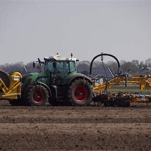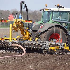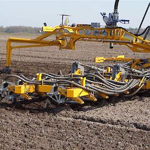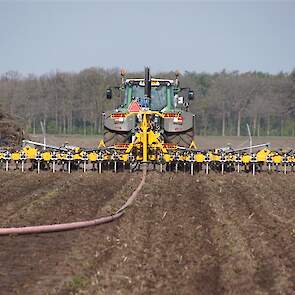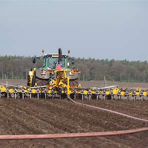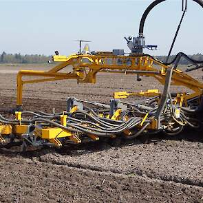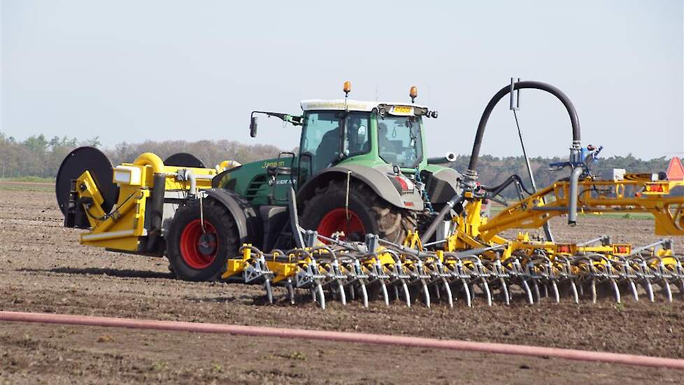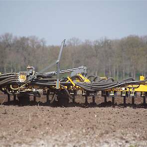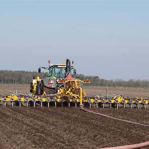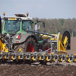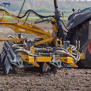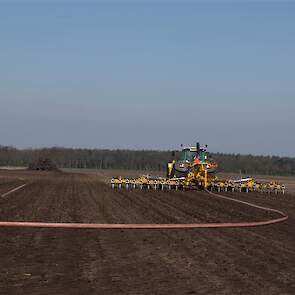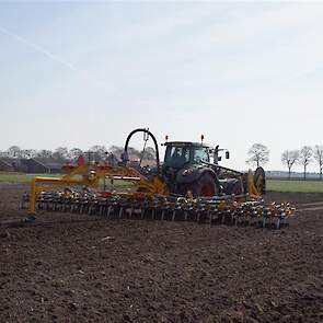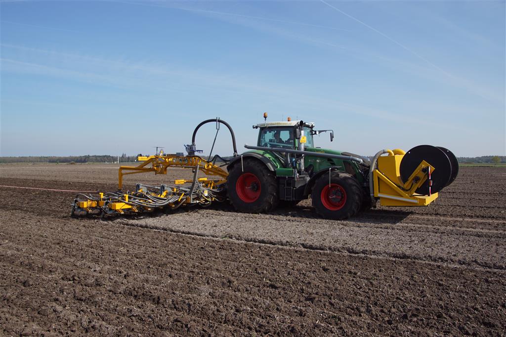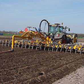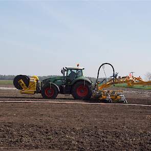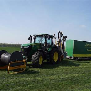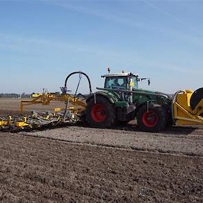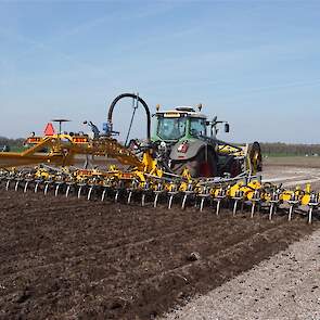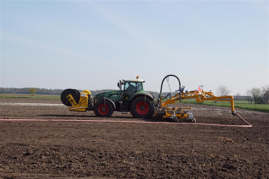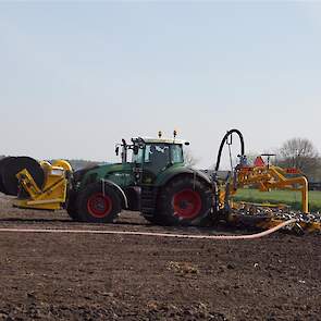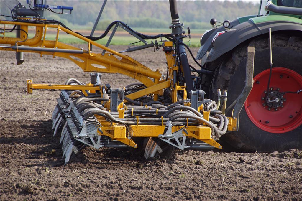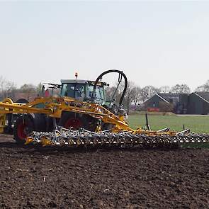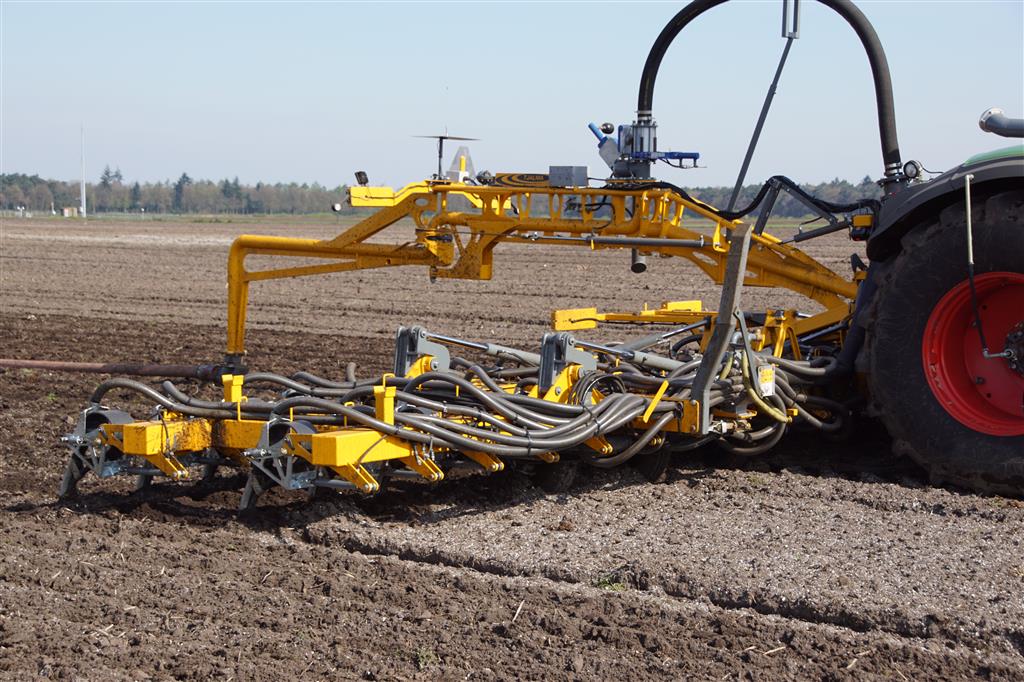De Tjalma Hydrodisc Sleepslang Bouwlandbemester met maar liefst een breedte van 12,25m. Deze nieuwe machine is compleet ontwikkeld en geproduceerd in Groningen, door de firma S Tjalma BV. Met deze combinatie kan bouwland bemest worden doormiddel van een sleepslangsysteem. Deze bemester is voorzien van GPS met sectie afsluiting, voetafsluiters en diepteregeling. Deze machine draait bij loonbedrijf Jansen in Tiendeveen.