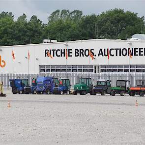 Druk worden er trekkers en machines aangevoerd op het veiling terrein in Meppen DLD waar volgende week dinsdag weer een veiling is.