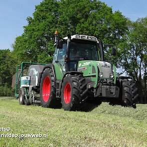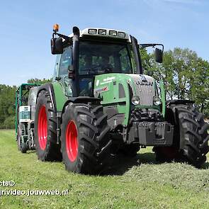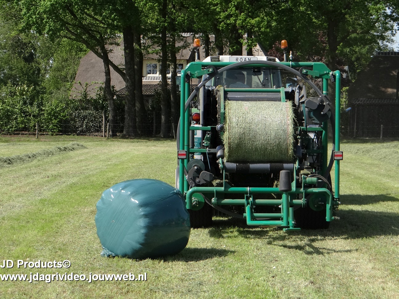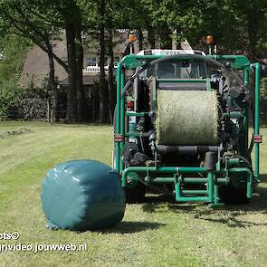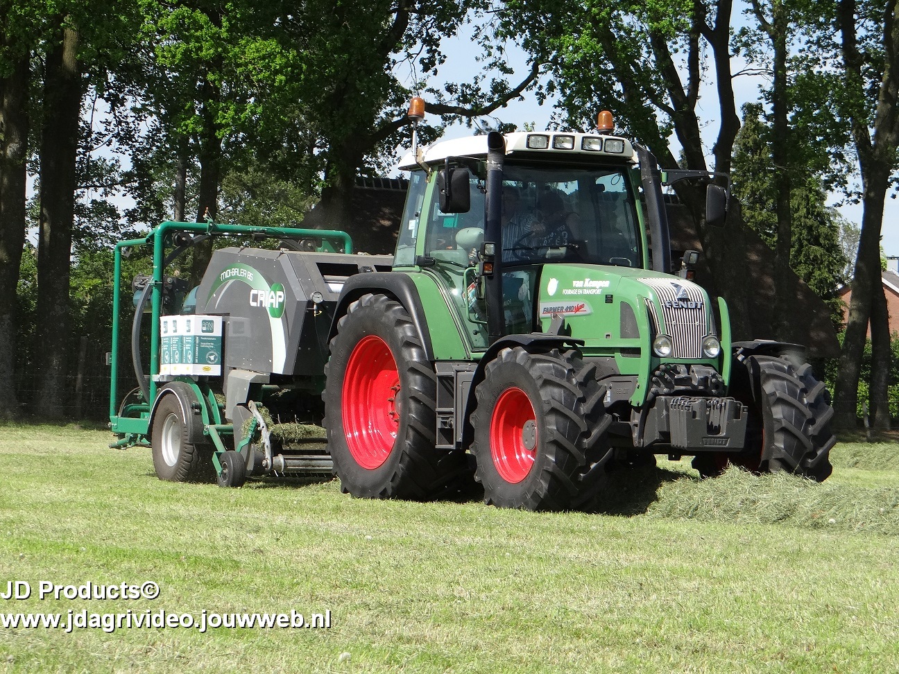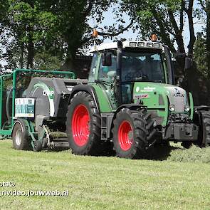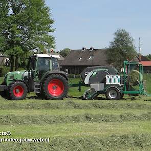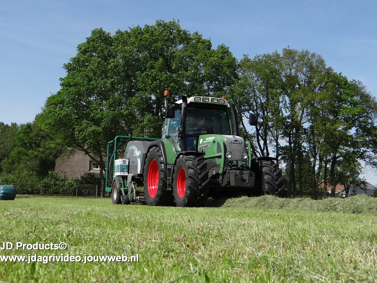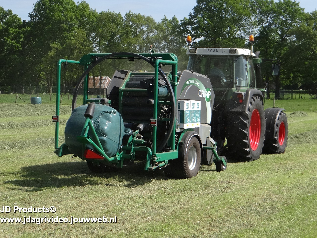 Van Kempen fourage en transport uit Putten aan het midi rondbalen persen en wikkelen in Uddel met een Fendt 410 met een Criap Midi Baler 85