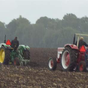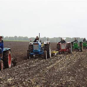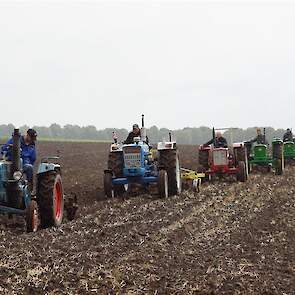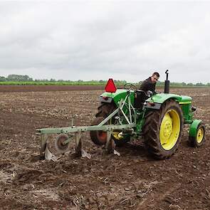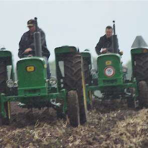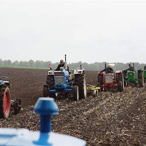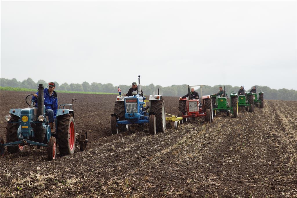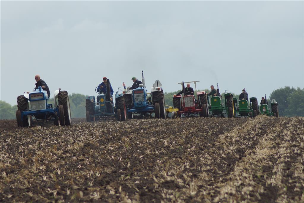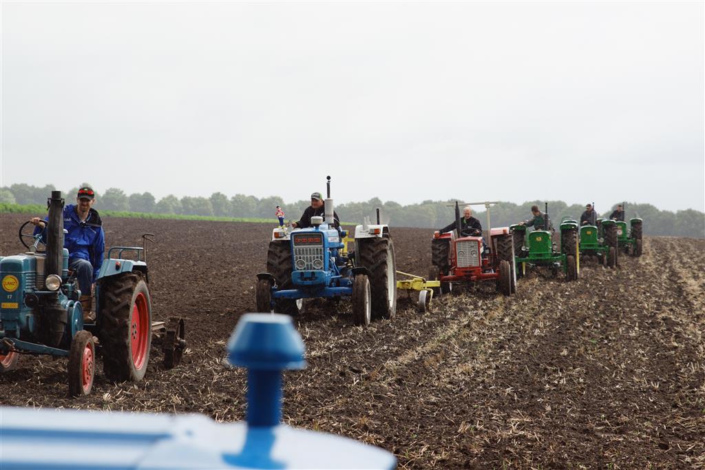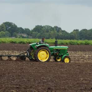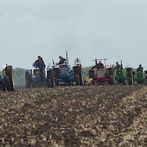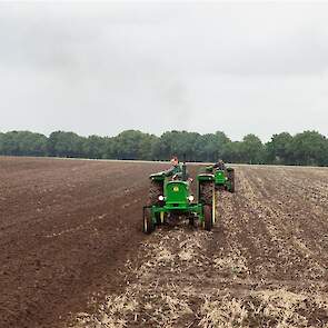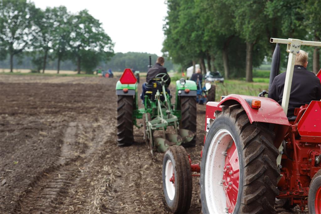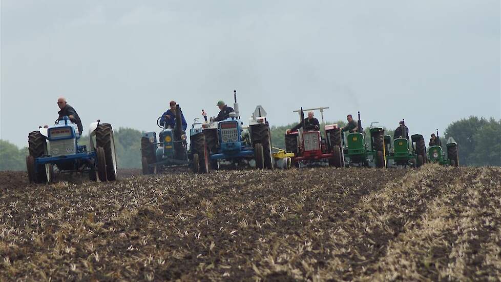 Stoppelland ploegen met 21 scharen en 7 trekkers
