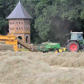 Kleine hooibalen persen op landgoed Staverden