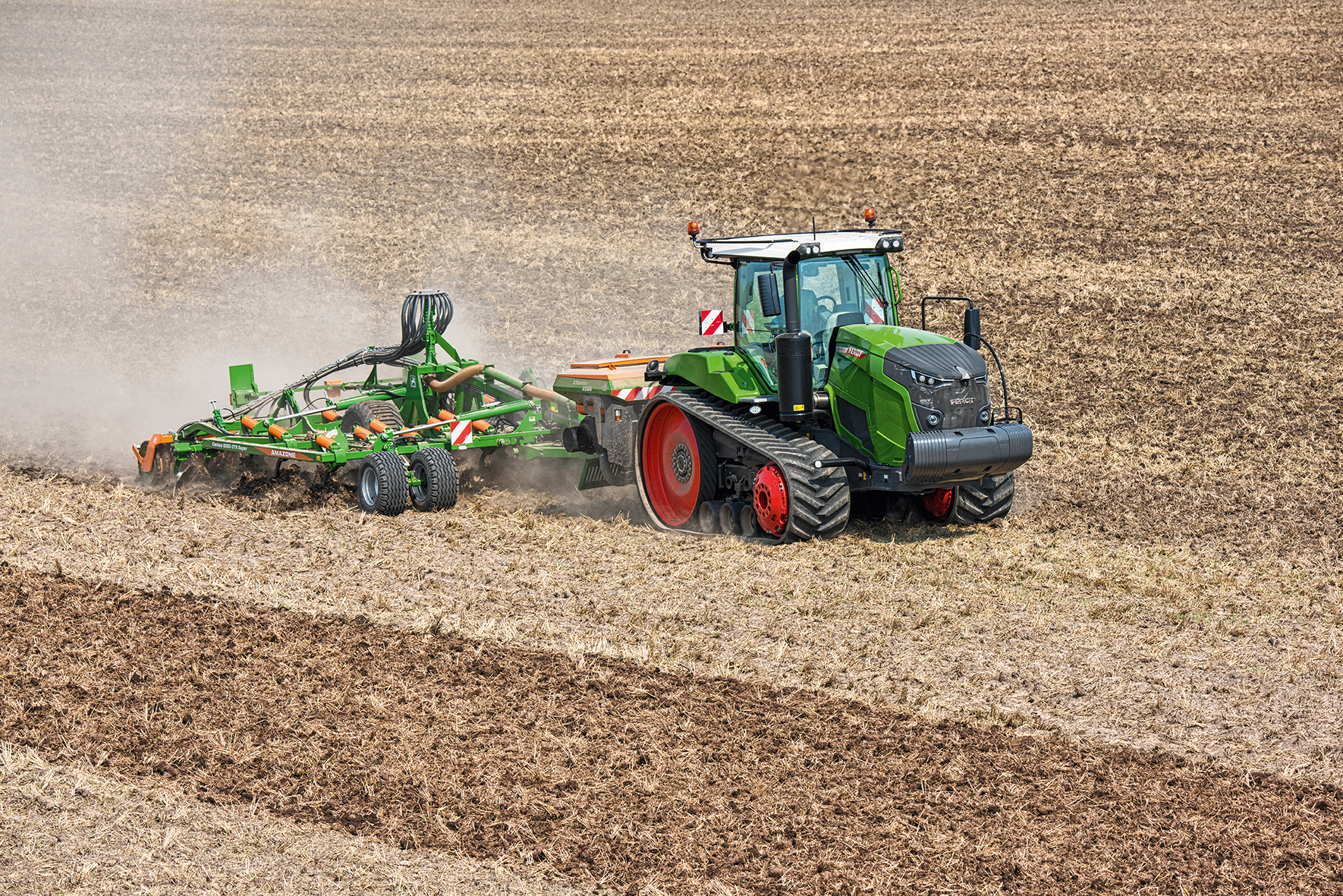 Dankzij Challenger zijn de spuitmachines uit Horst nu in het groen te zien. En ook de rupstrekkers. De MT 800 wordt nu de Fendt 1100 MT en de MT 700 gaat 900 MT heten. Deze laatste is grotendeels vernieuwd. Hij kreeg de traploze transmissie mee met tal van componenten uit de bak van de Fendt 1000-serie. Ook de cabine komt uit deze serie. Het onderstel is vernieuwd en de vering zorgt voor een toegenomen rijcomfort. De 900 MT heeft een 9,8 liter Agco Power motor.