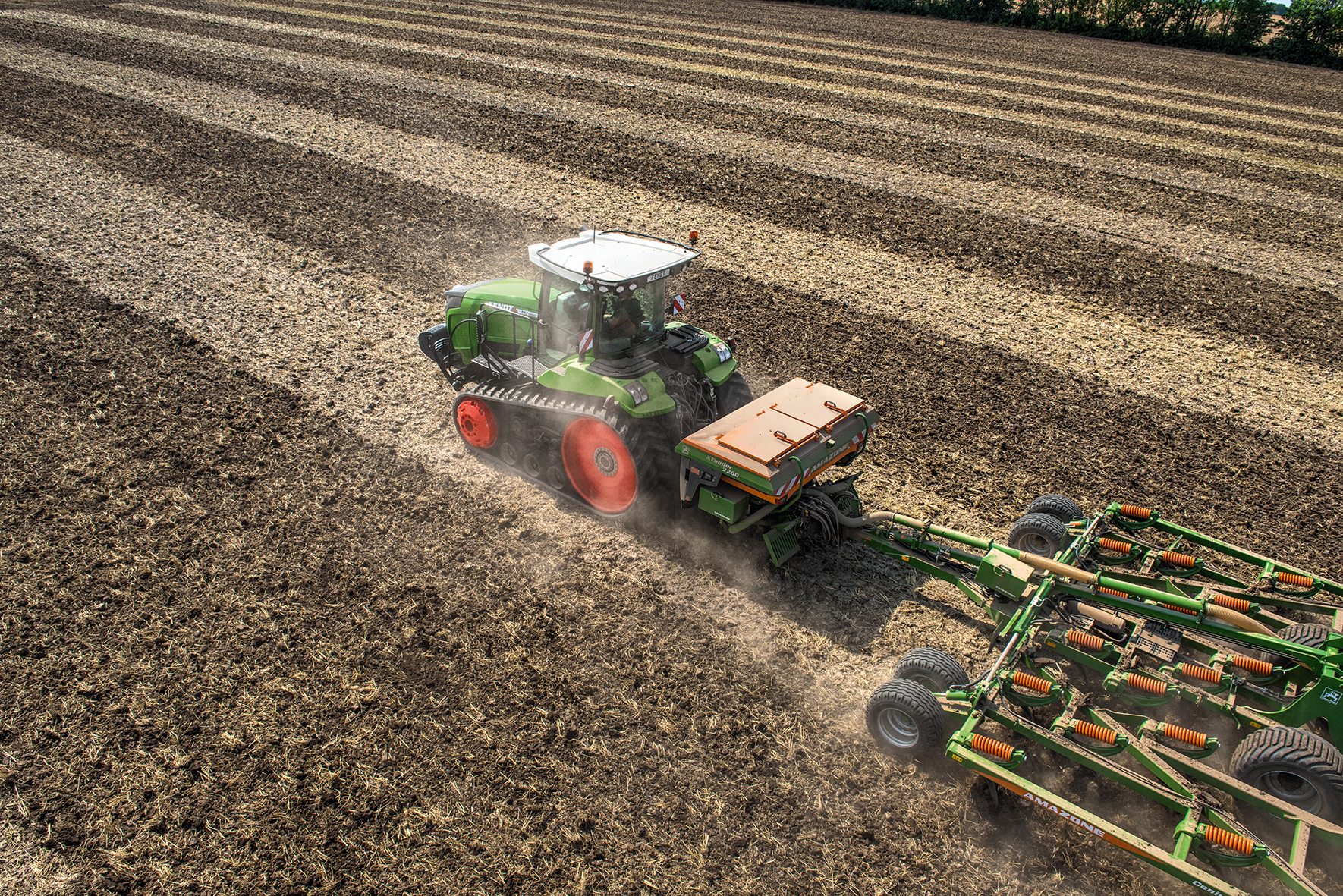 Verder opvallend nieuws is de e100 elektrische trekker. Een Lithium accupakket moet het mogelijk maken dat de 50 kW sterke trekker vier uur achter elkaar gebruikt kan worden. De trekker heeft behalve 48 en 700 volt aansluitingen voor elektrisch aangedreven werktuigen ook als voorheen een aftakas en hydraulische aansluitingen. Als basis dient de 200 Vario, een serie die Fendt ook heeft vernieuwd. Voor deze serie is nu ook automatische besturing mogelijk. Dat kan zijn op basis van gps of op basis van ultrasone geleiding.