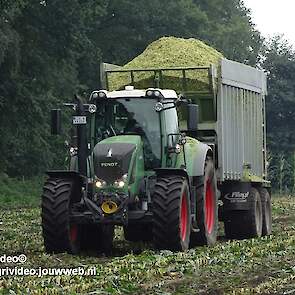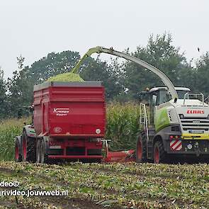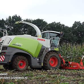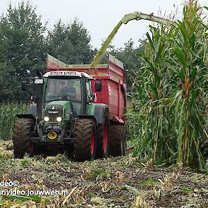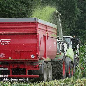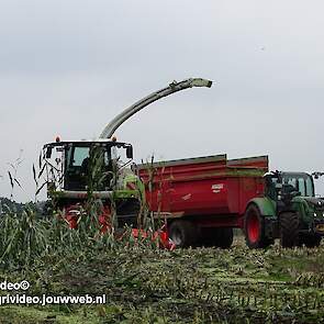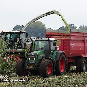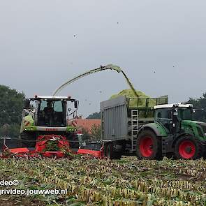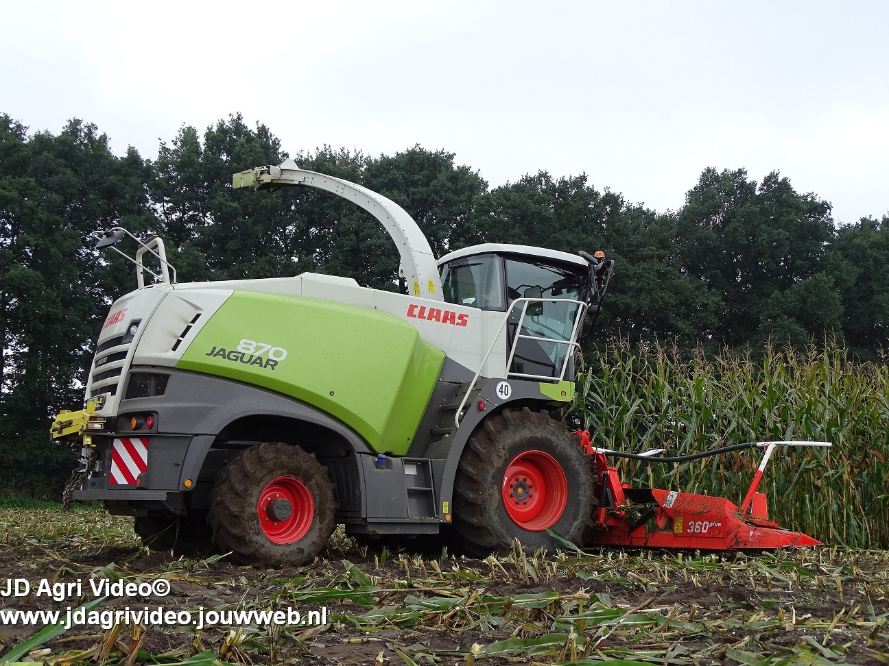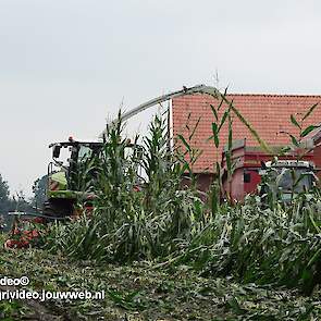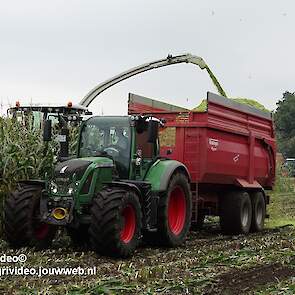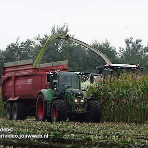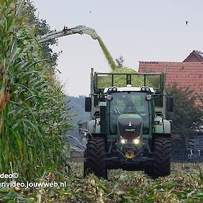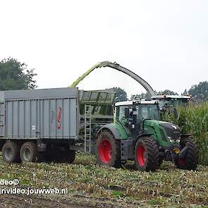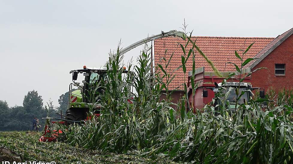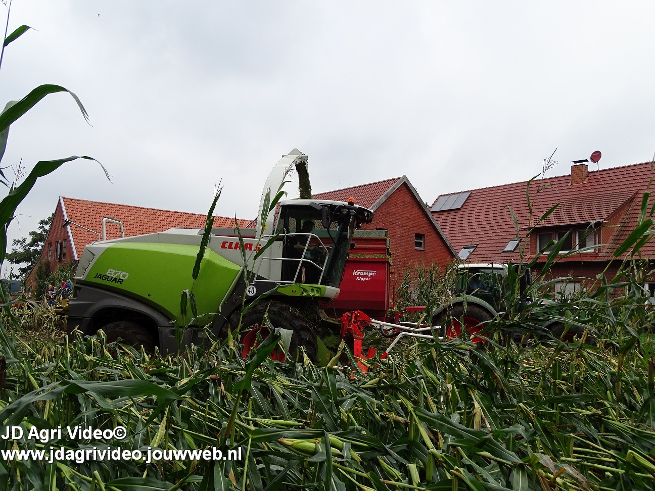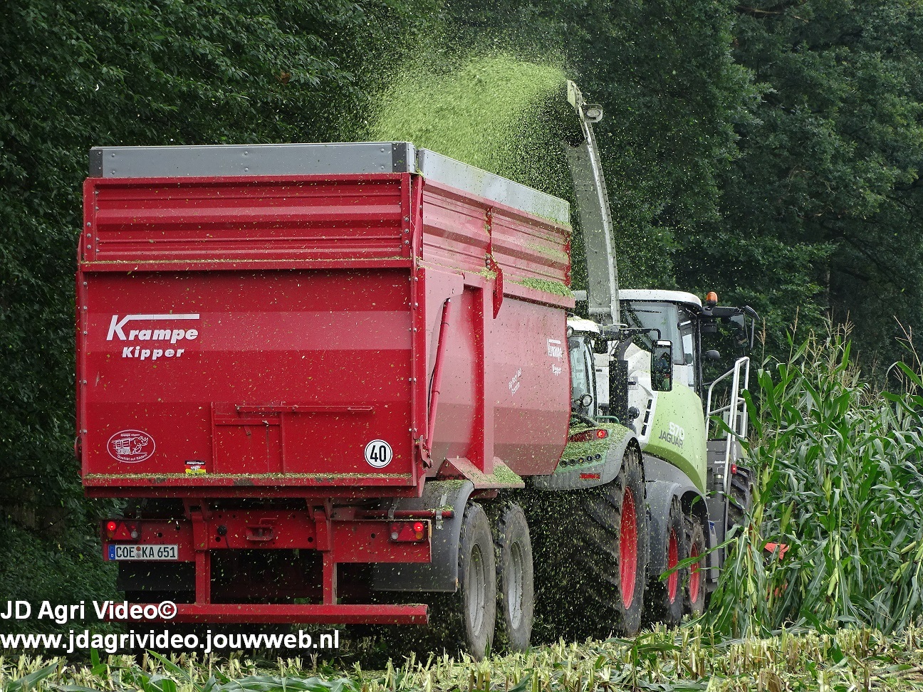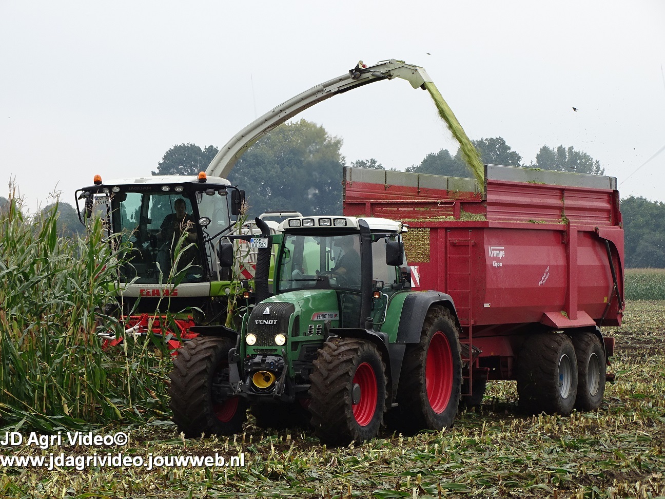 Agrarservice Kerkering uit Rosendahl-Holtwick uit Duitsland aan het maishakselen met stormschade met een Claas Jaguar 870, Fendt 822 met een Fliegl Gigant ASW 268, Fendt 724 en Fendt 818 met Krampe kieper.