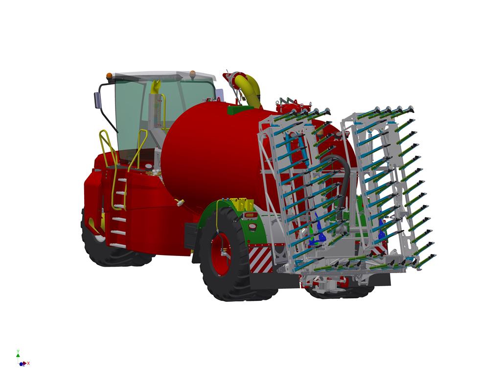 De uitdaging bij zelfrijders en sleepslangsystemen zijn bemesters met een grote werkbreedte. Het aan de zijkant van de tank opklappen van een bemester binnen de maximaal toegestane transportbreedte is vaak niet mogelijk. Dit omdat de trekker of de opbouwtank vaak te kort en te breed zijn. Voor een zeker en verantwoord transport blijft dan alleen de optie over om de bemester compact in te klappen achter de trekker of zelfrijder.