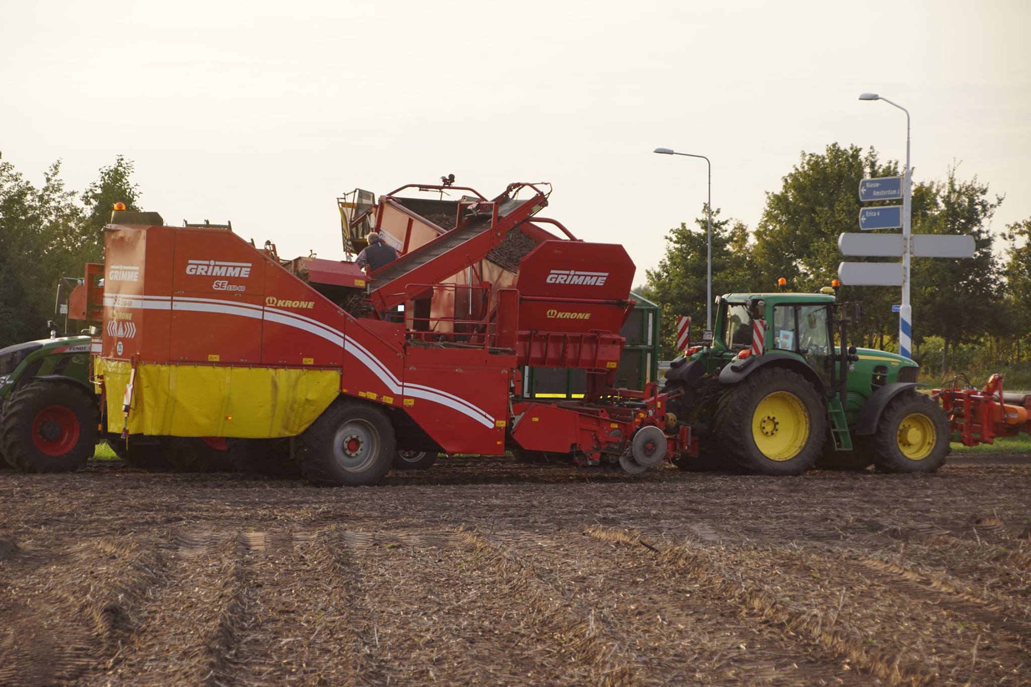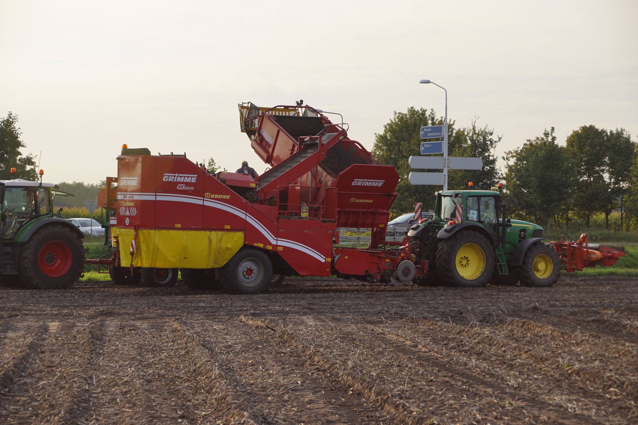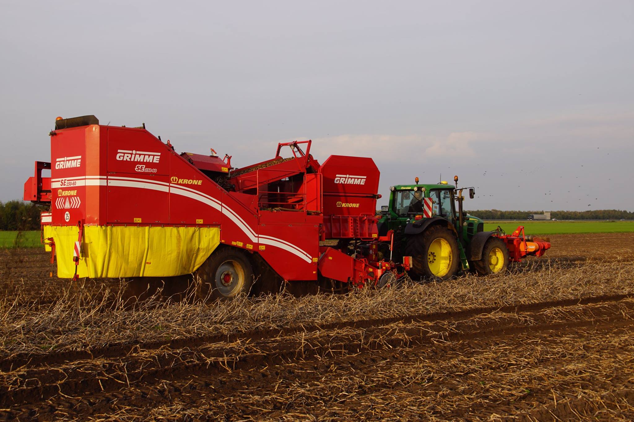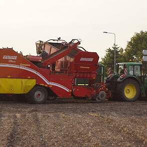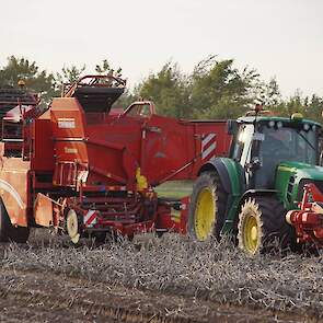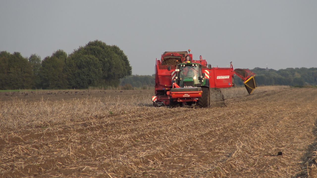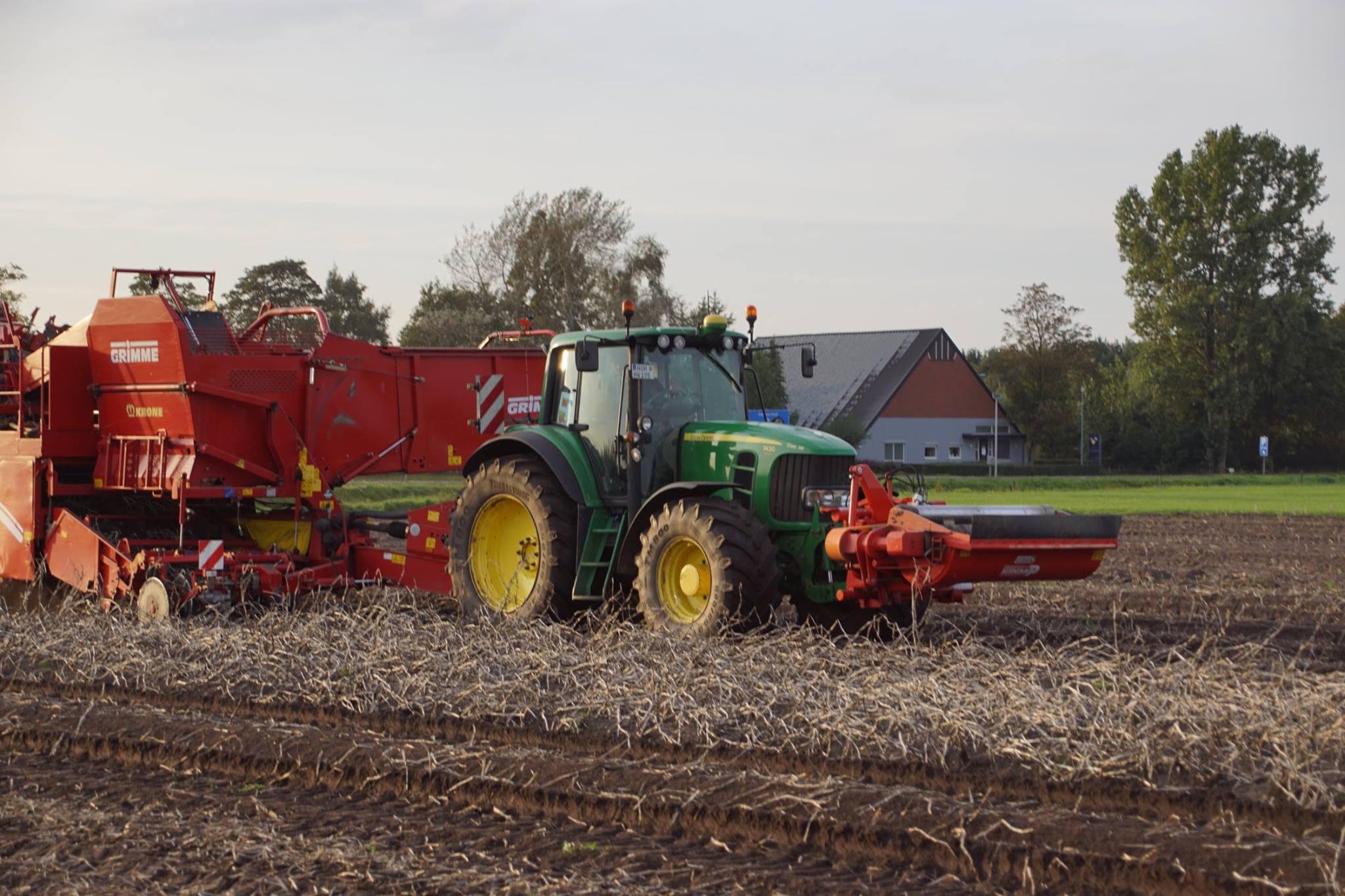 John Deere 7430 met Grimme SE 150 - 60 aan het aardappels rooien