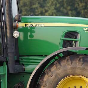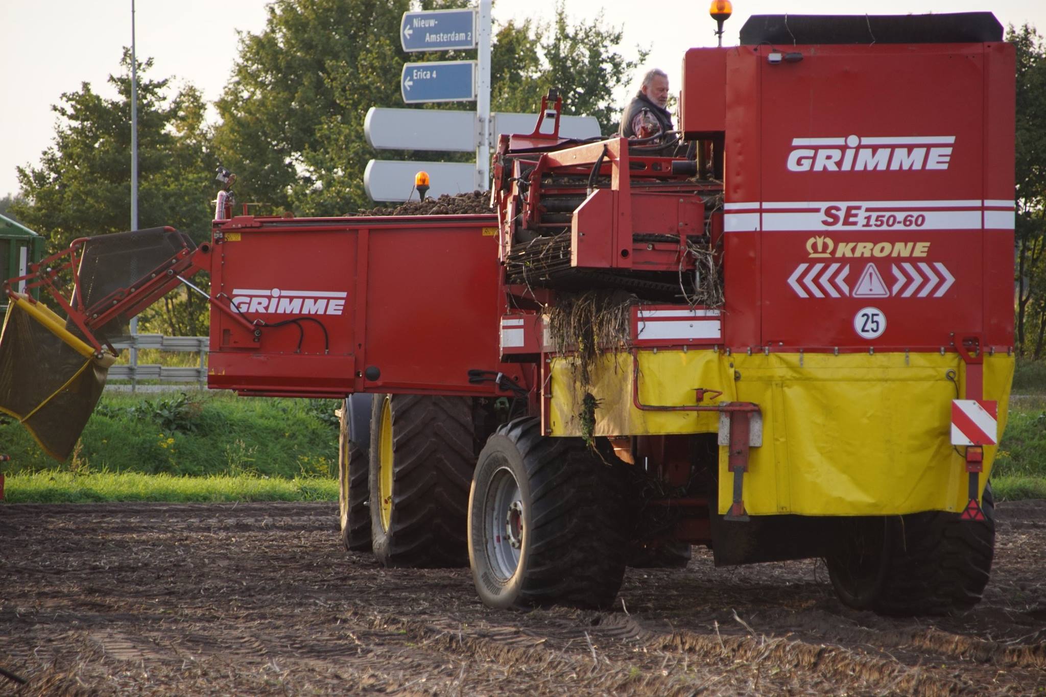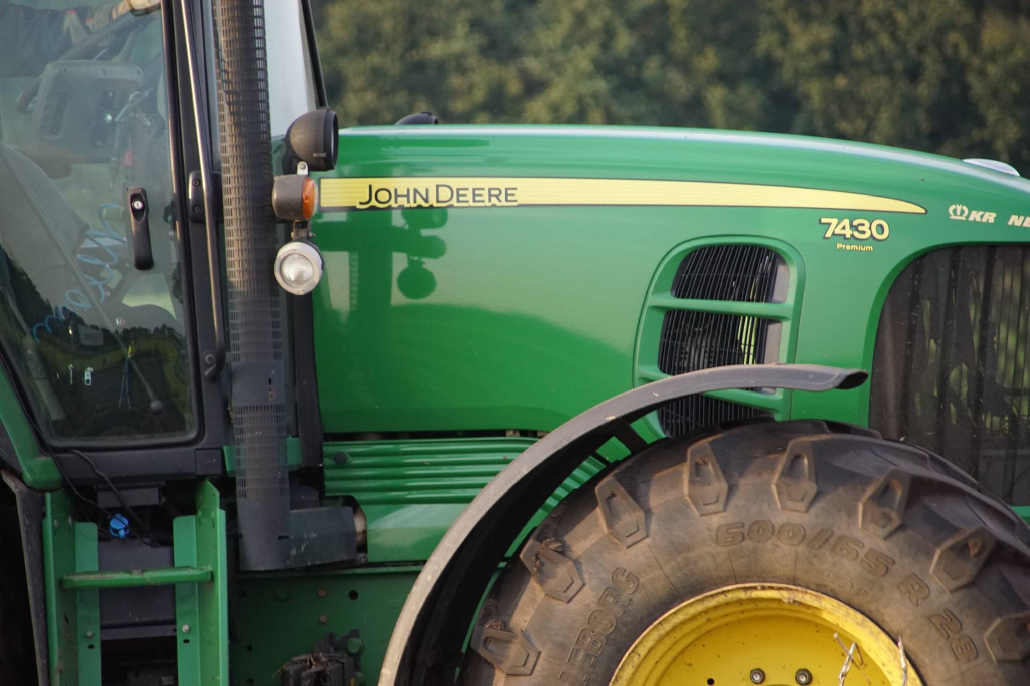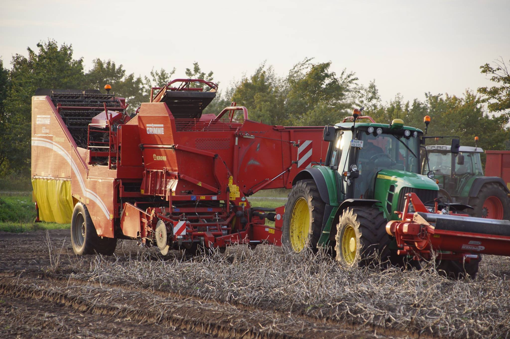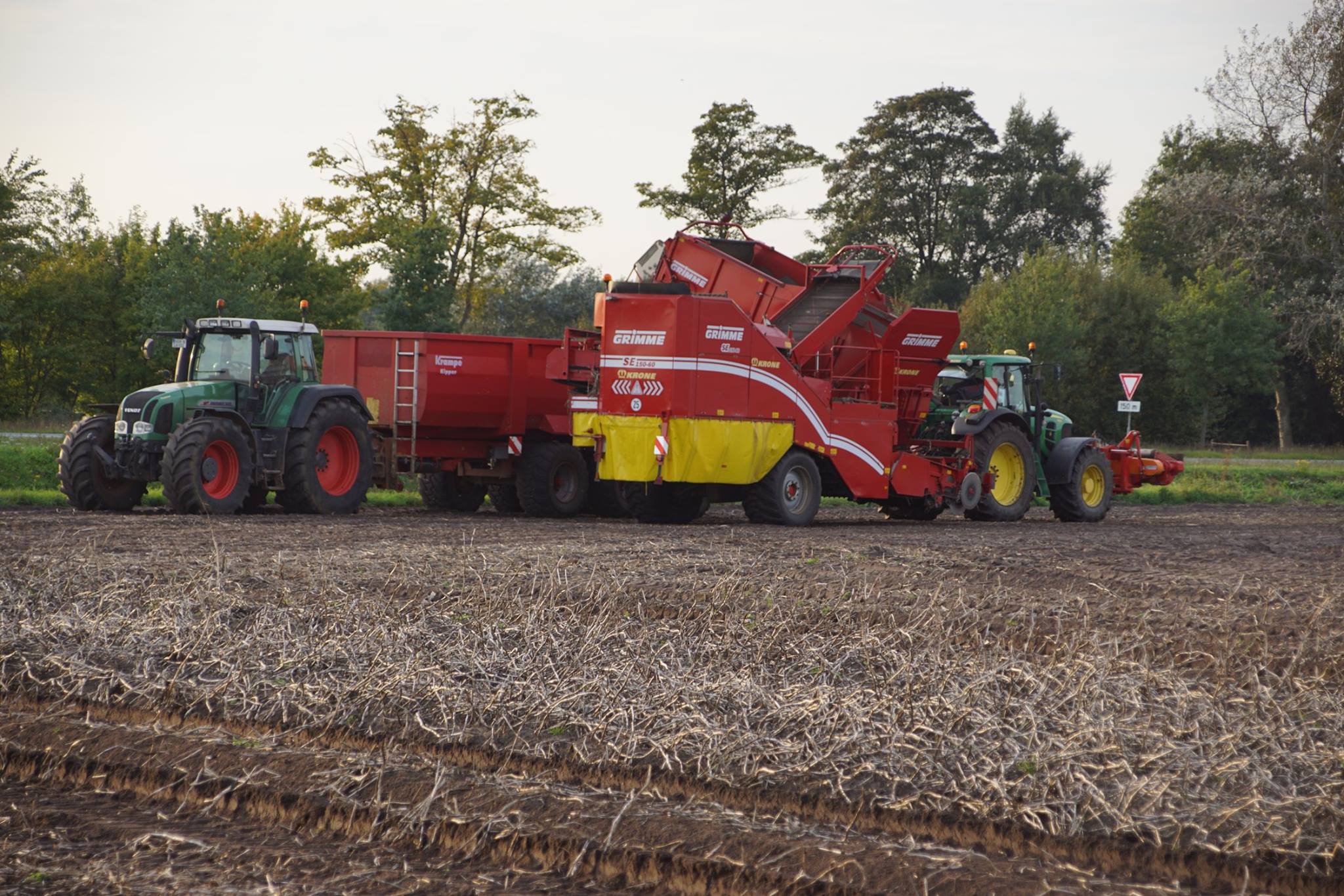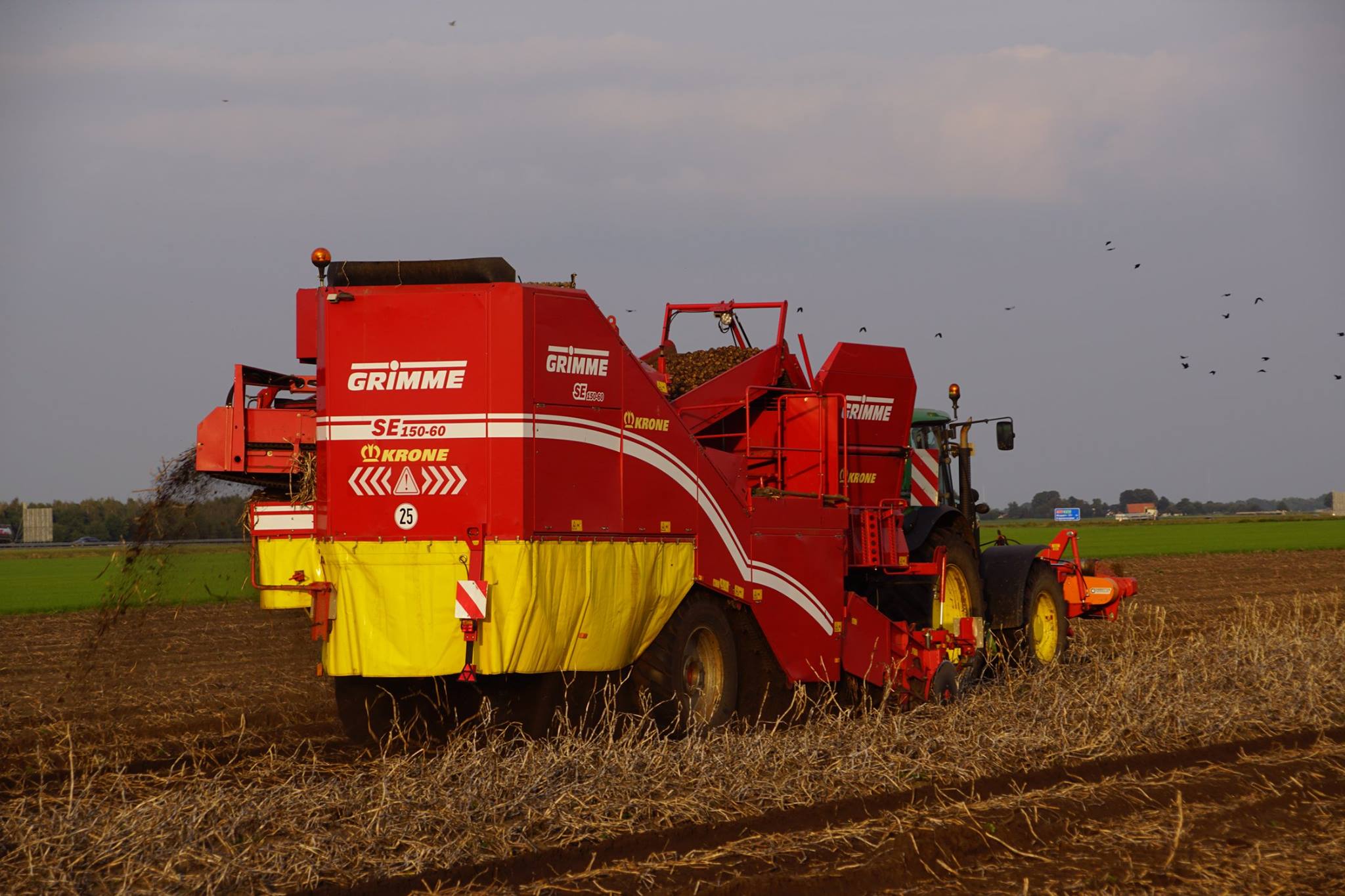 John Deere 7430 met Grimme SE 150 - 60 aan het aardappels rooien