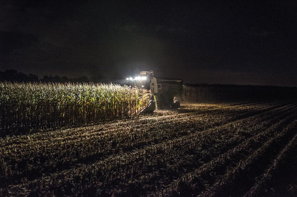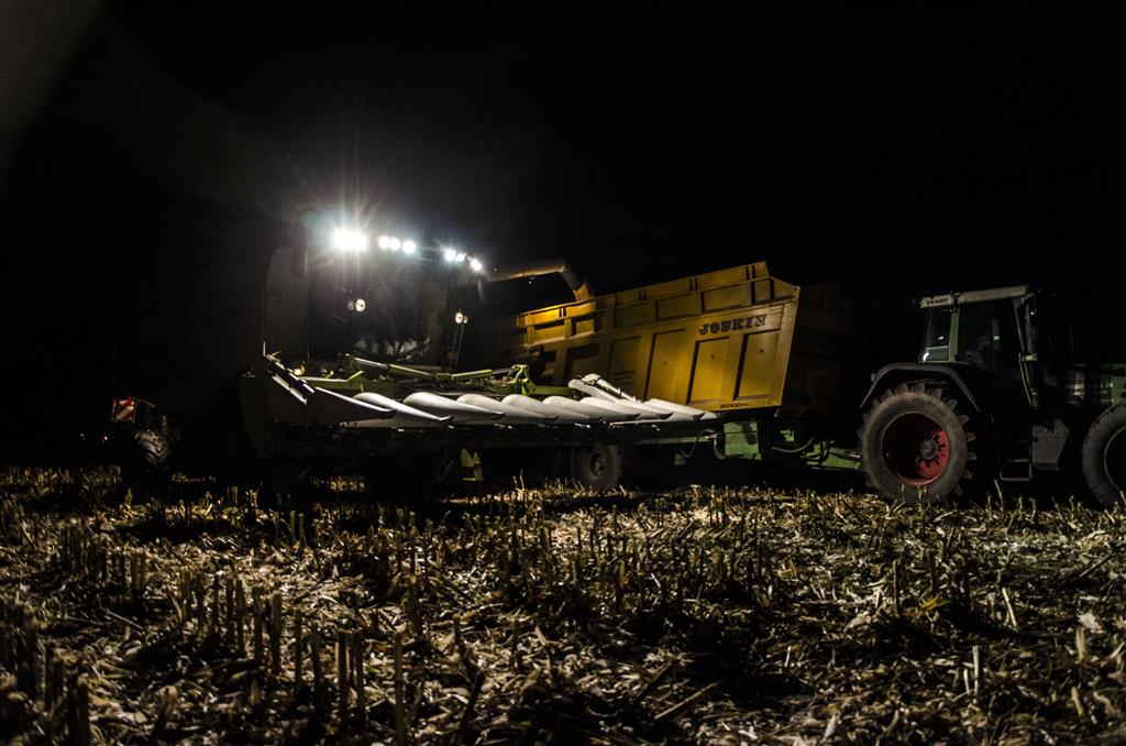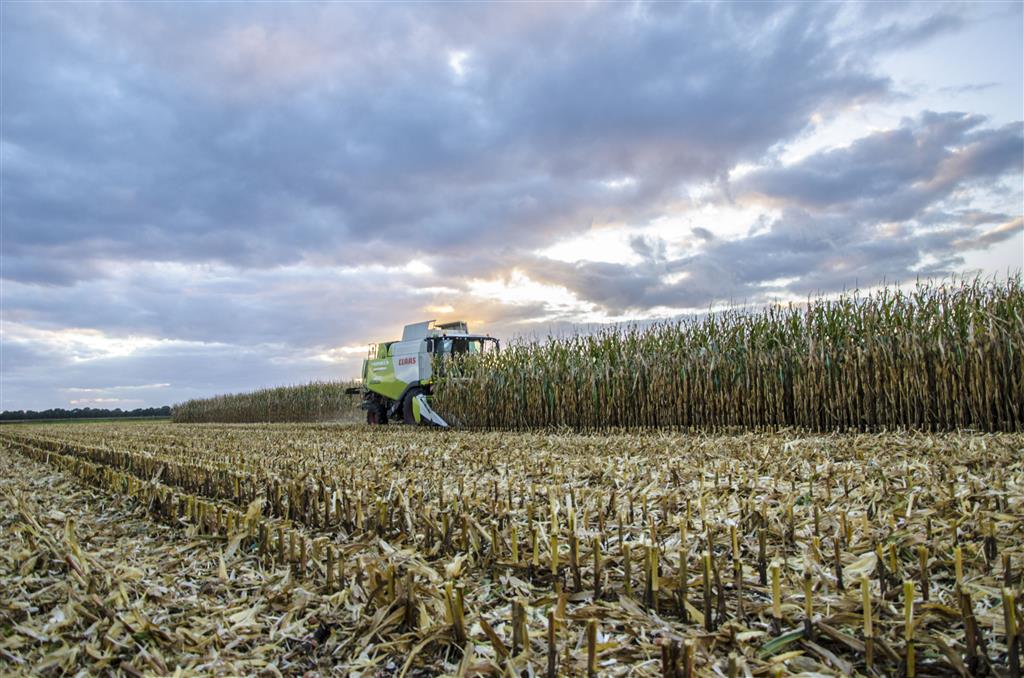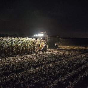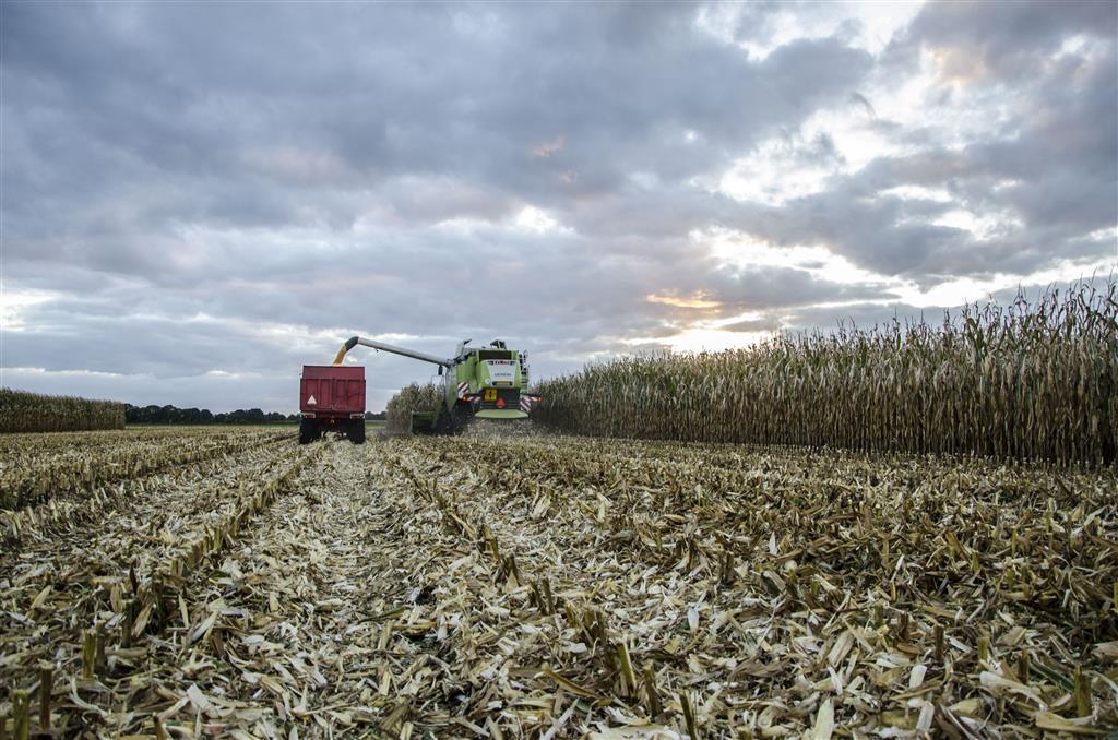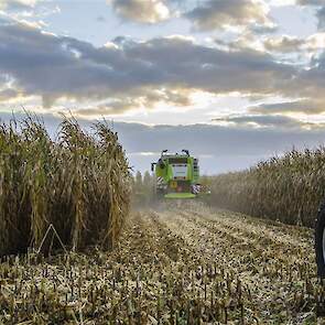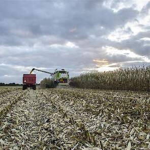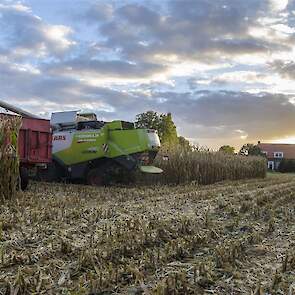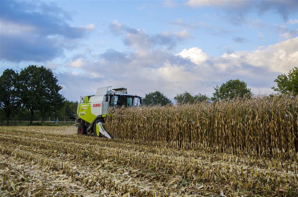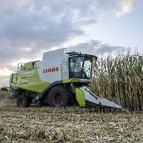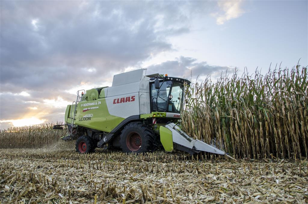 Firma Roothans Borkel en Schaft aan het korrelmaïs dorsen met een Claas Lexion 630 met 8 rijige maisbek