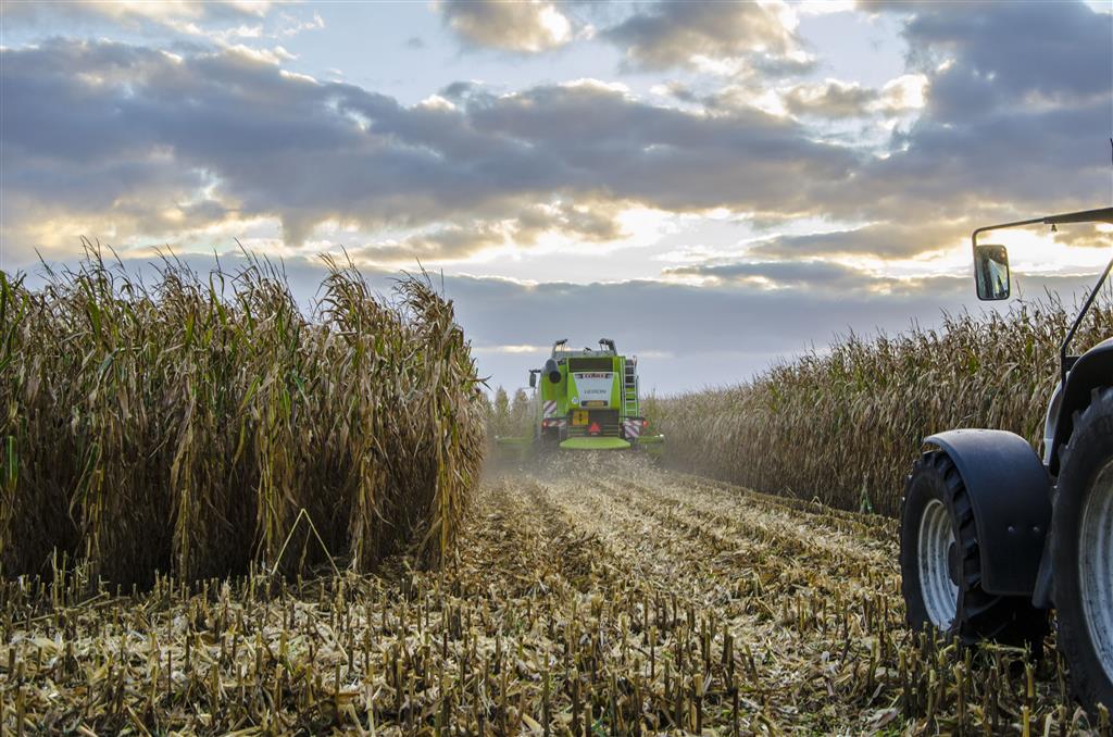 Firma Roothans Borkel en Schaft aan het korrelmaïs dorsen