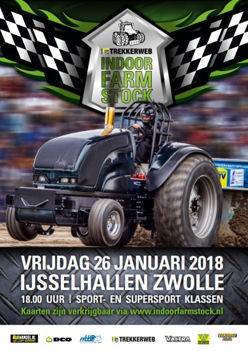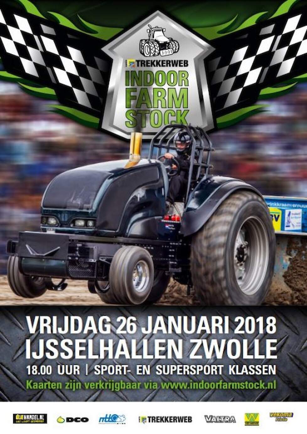 Op 26 en 27 januari 2018 is Zwolle the place to be voor iedereen die van actie, kracht en sensatie houdt. Op vrijdag 26 januari vindt Trekkerweb Indoor Farmstock plaats in de IJsselhallen Zwolle met sport- en supersport tractoren, voor iedereen die van de pure diesel-techniek houdt. Standaard 100 PK? Nu verschijnt er 1000 tot 1500 PK aan de start! Sensatie verzekerd!