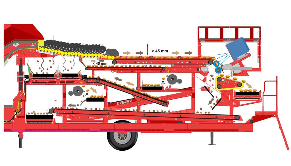 Akkerbouwers die een zo hoog mogelijk aandeel marktwaar-dige producten willen inschuren zetten vaak stortbunkers met reinigingsunits met een leesband in, om de aardappelen zoveel mogelijk van kluiten, stenen en loof te scheiden. De maximale capaciteit van deze gecombineerde systemen ligt bij ca. 80 ton per uur. Door de optimalisatie van de oogst en logistiek en ge-brek aan leespersoneel, is de vraag naar intensief reinigende machines met grote capaciteit sterk gestegen.