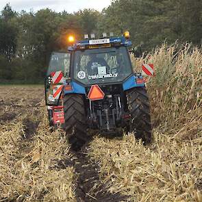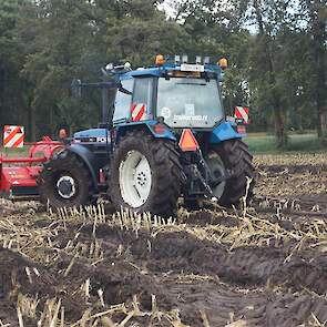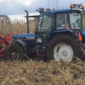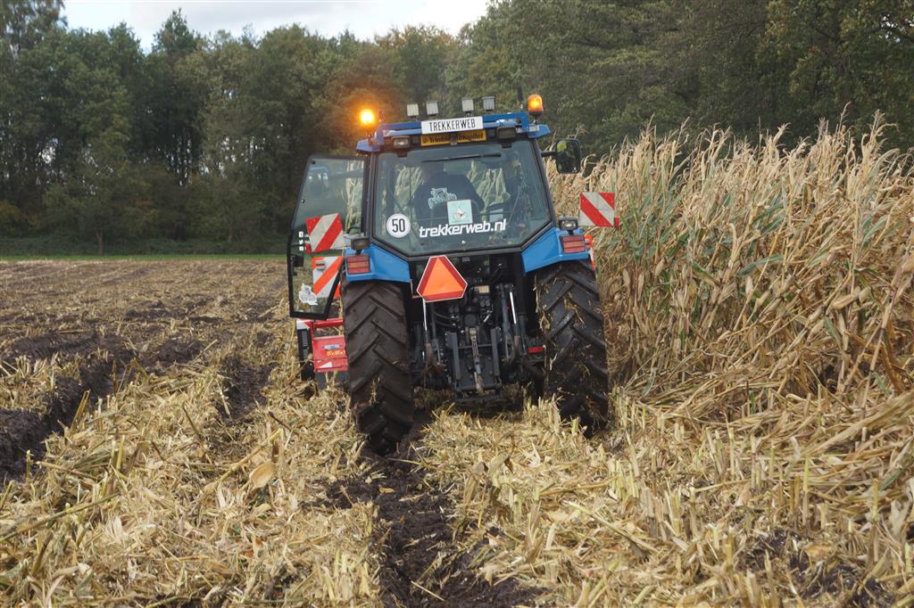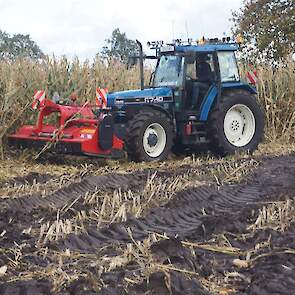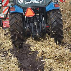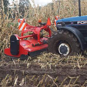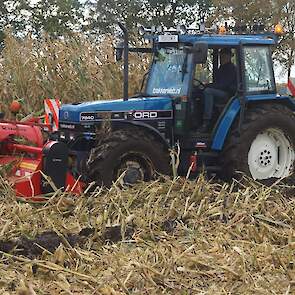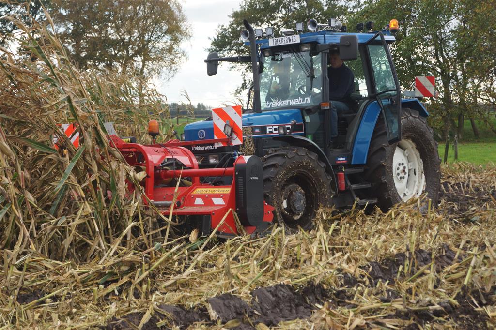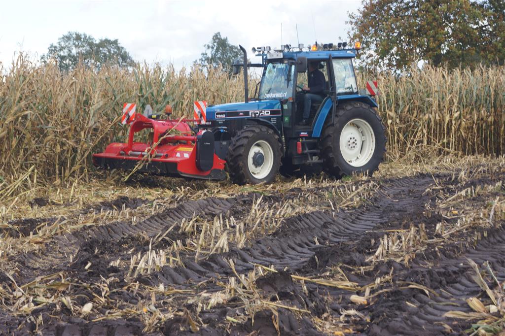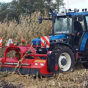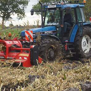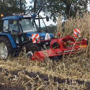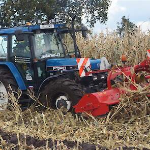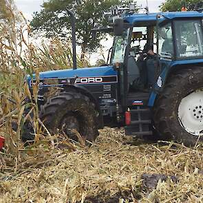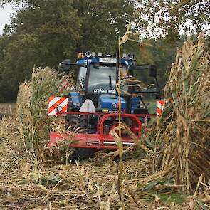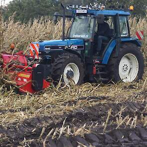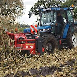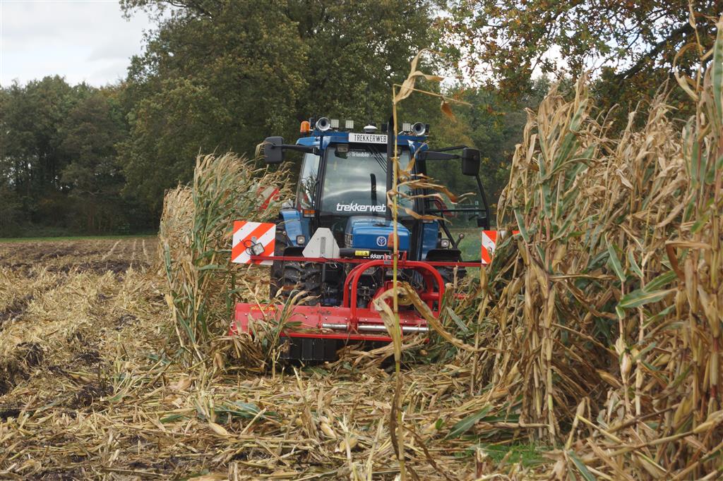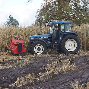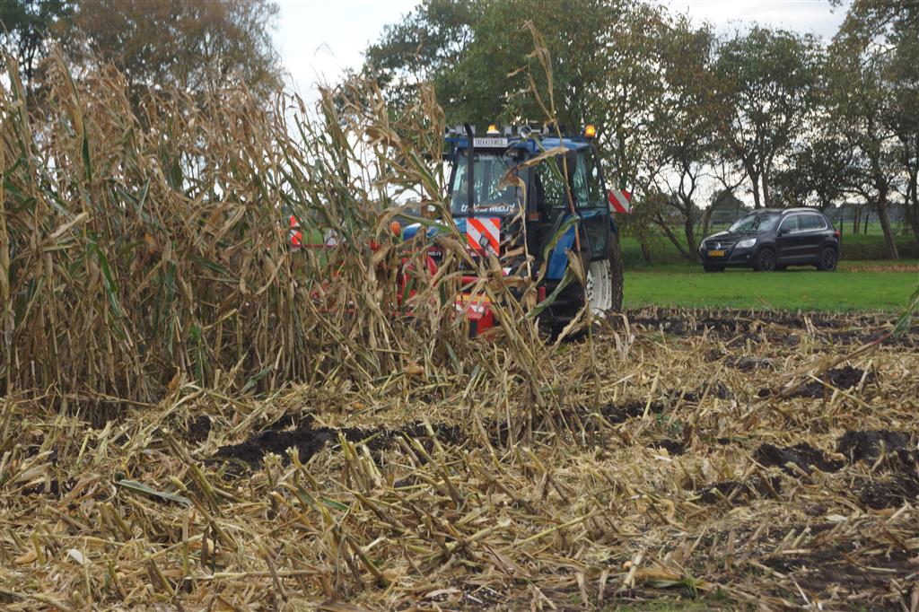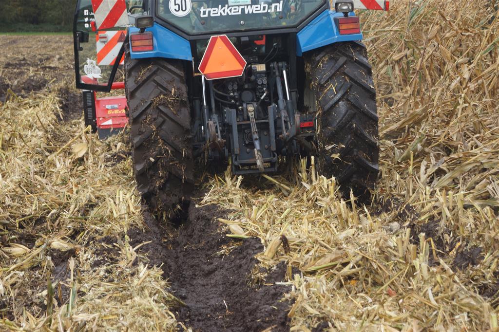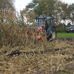 Soms kunnen er hoekjes niet worden gehakseld, omdat het te nat is. Zo ook dit stukje maïs.