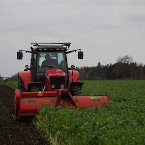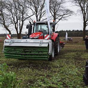 Loofklapper met hakenfrees: sinds jaren gebruikt akkerbouwer en gastheer Jan Reinier de Jong zelf deze machine voor het vernietigen van de groenbemesters.