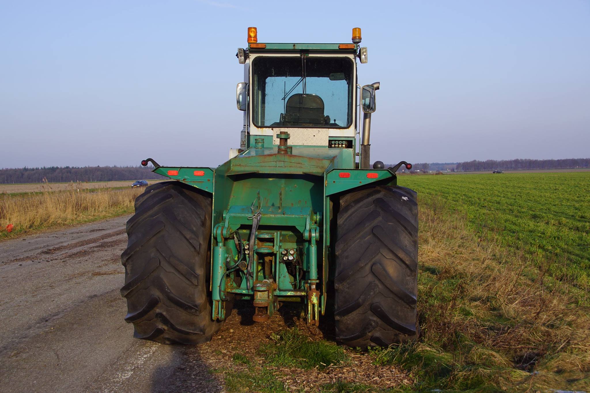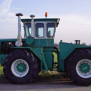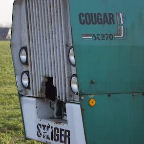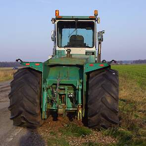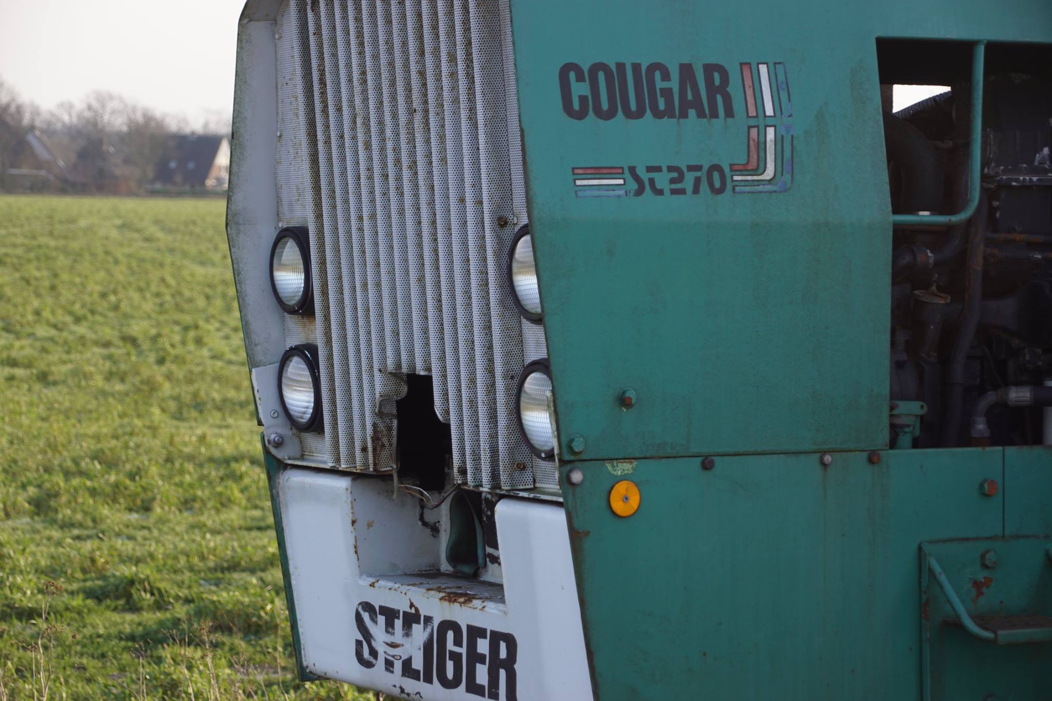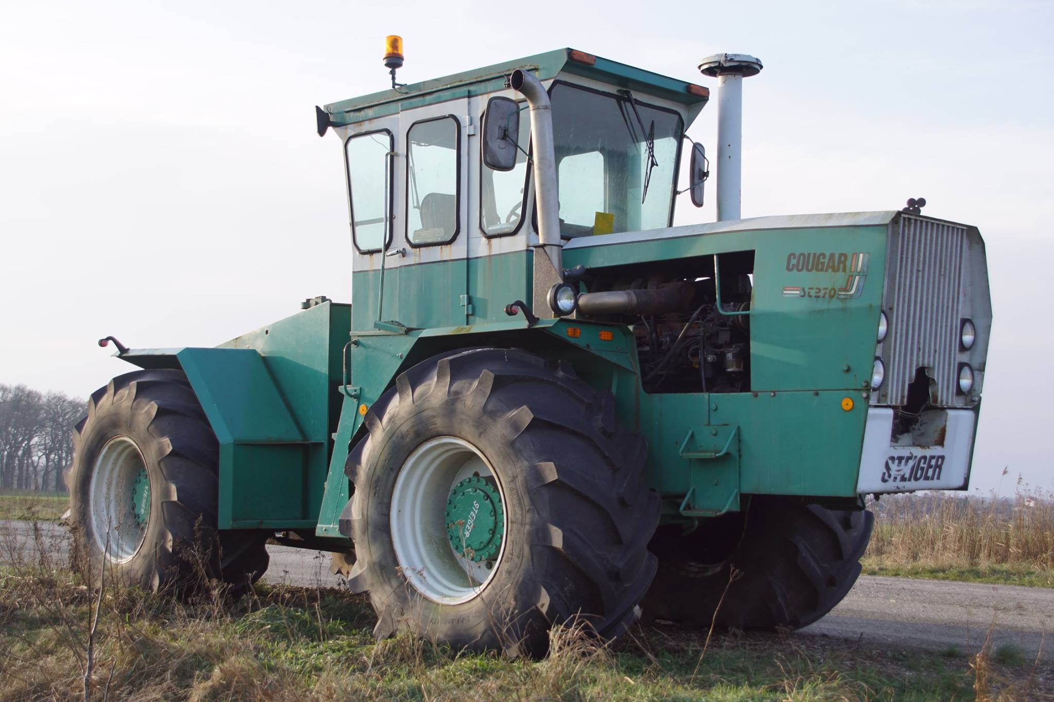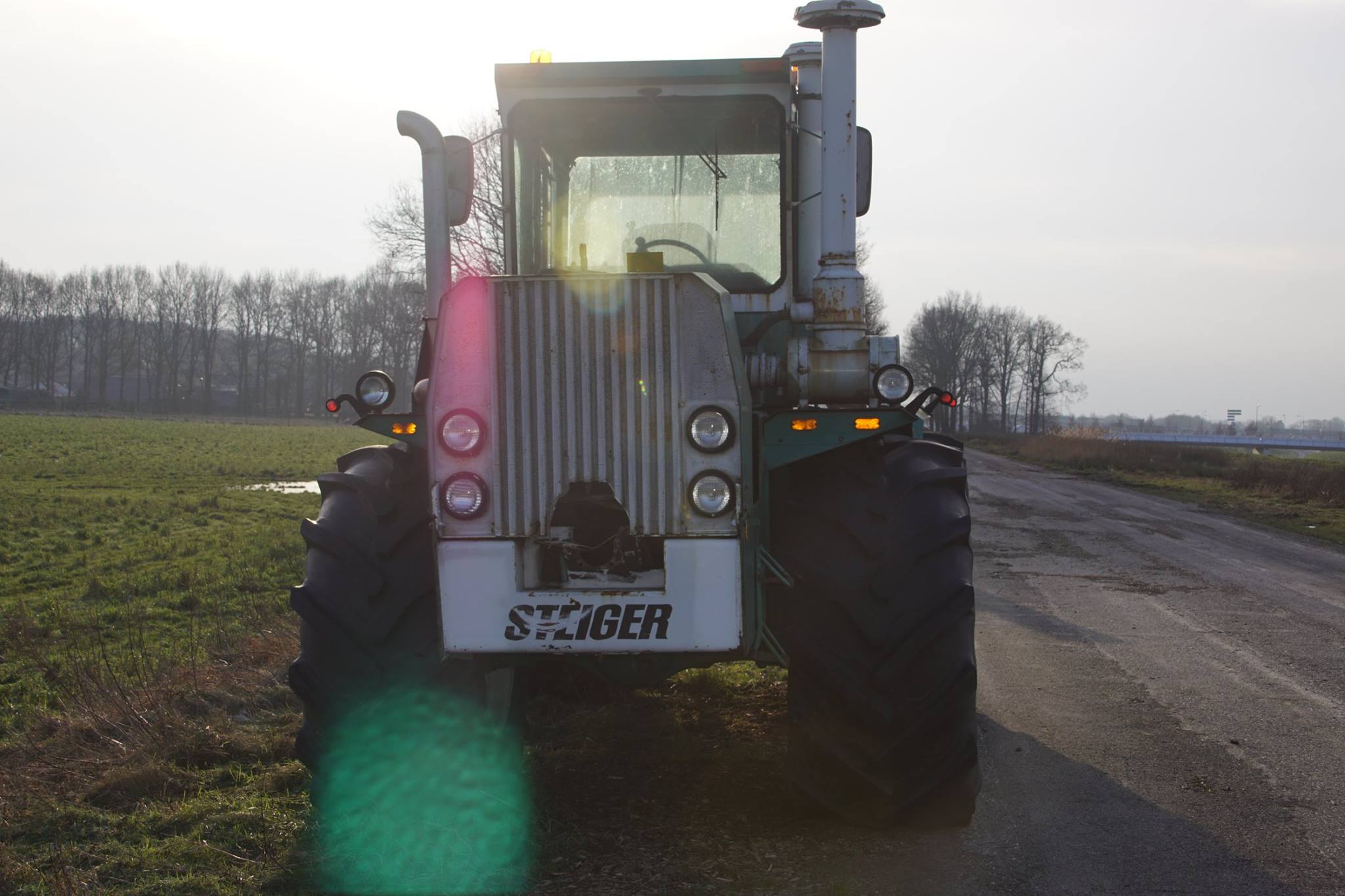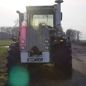 jans Eising kwam deze bijzondere Steiger Cougar ST 270 kniktrekker van 270 pk tegenonderweg tegen en maakte een paar foto`s van deze bijzondere trekker waarom de trekker daar staat en van wie de trekker is is niet bekend?