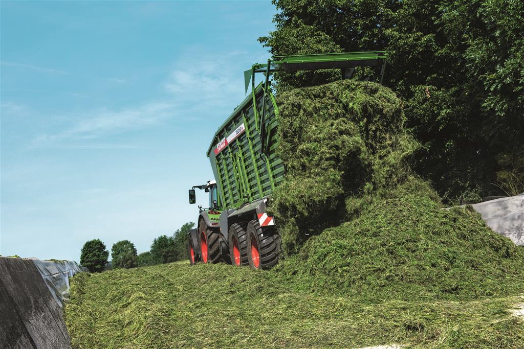 Nieuw in het ruwvoerwinningsprogramma van Fendt: de Tigo XR? en Tigo PR-combiwagens. Beide wagens zijn stabiel en licht, hebben een grote inhoud hoewel ze compact van bouw zijn, en zijn gemakkelijk te bedienen. Dat maakt ze bij uitstek geschikt voor loonwerkers en grote landbouwbedrijven. Hun grote capaciteit danken beide modellen aan de verschuifbare voorwand, die het mogelijk maakt om ook het laadvlak boven de rotor te benutten. Door toepassing van deze unieke technologie kan 6 kuub meer worden geladen dan bij vergelijkbare combiwagens. De multifunctionele voorwand werkt bij het laden tegelijkertijd als perswand. Daarbij zorgt de traploos aangestuurde VarioFill-laad- en losautomaat voor een optimale persdichtheid. Tijdens het lossen beweegt de voorwand naar achteren. Zodra de bodemketting het geladen materiaal naar achteren schuift, doet de voorwand dat dus ook, waardoor bodemketting en kettingaandrijving ontlast worden. Dit VarioFill-totaalsysteem is uniek in de markt. In vergelijking met andere, vergelijkbare opraapwagens zijn de Fendt Tigo XR en Tigo PR ca. 1 meter korter, en dus lichter en wendbaarder. Daardoor is hun gewichtsverdeling beter en hun weggedrag optimaal.
