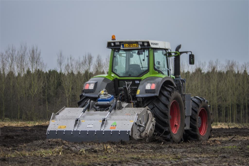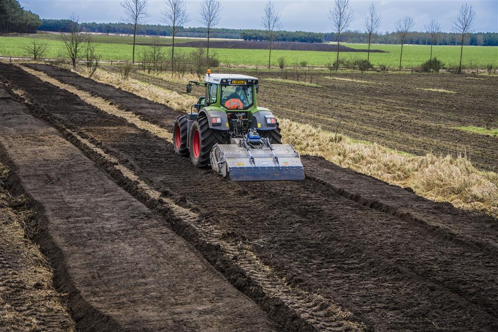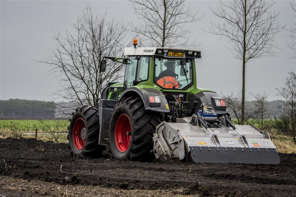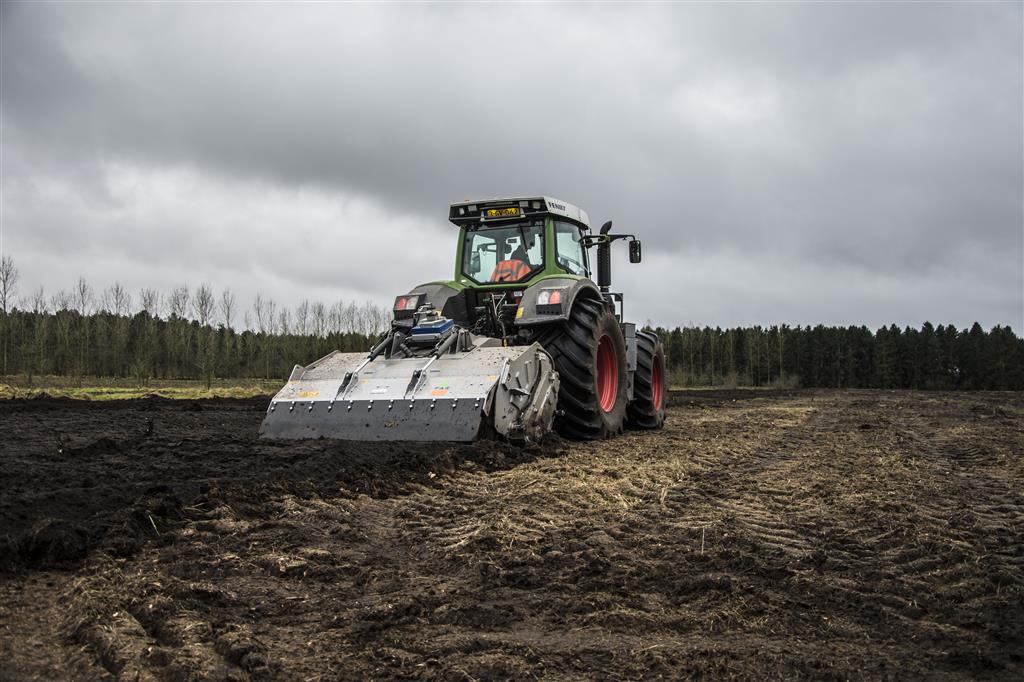 Loonbedrijf Roothans en Zn. heeft een nieuwe FAE SSH-250 diepfrees in gebruik genomen. Met een diepfrees kunnen bosgronden vol wortelen tot 50 cm werkdiepte gefreesd worden zodat er een homogene en bewerkbare teelt laag ontstaat. De 700 mm grote rotor beschikt over het type A smalle beitels met een agressieve werking. In combinatie met de tegenmessen aan de binnenzijde van de frees worden alle houtresten fijn gemaald. De machine is voorzien van een hydraulische achterklep met dozerblad voor een mooi egaal eindresultaat.